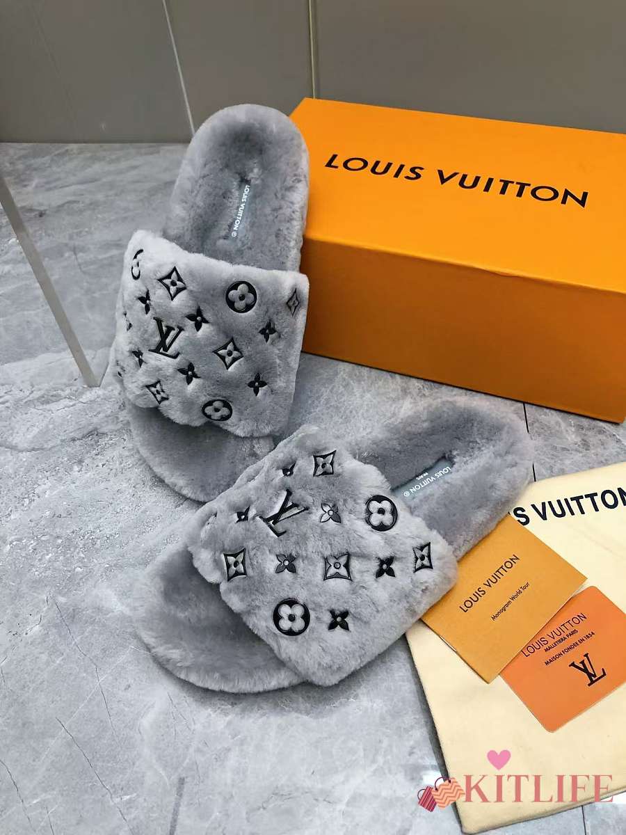 Kitlife Louis Vuitton Wool Slippers Grey