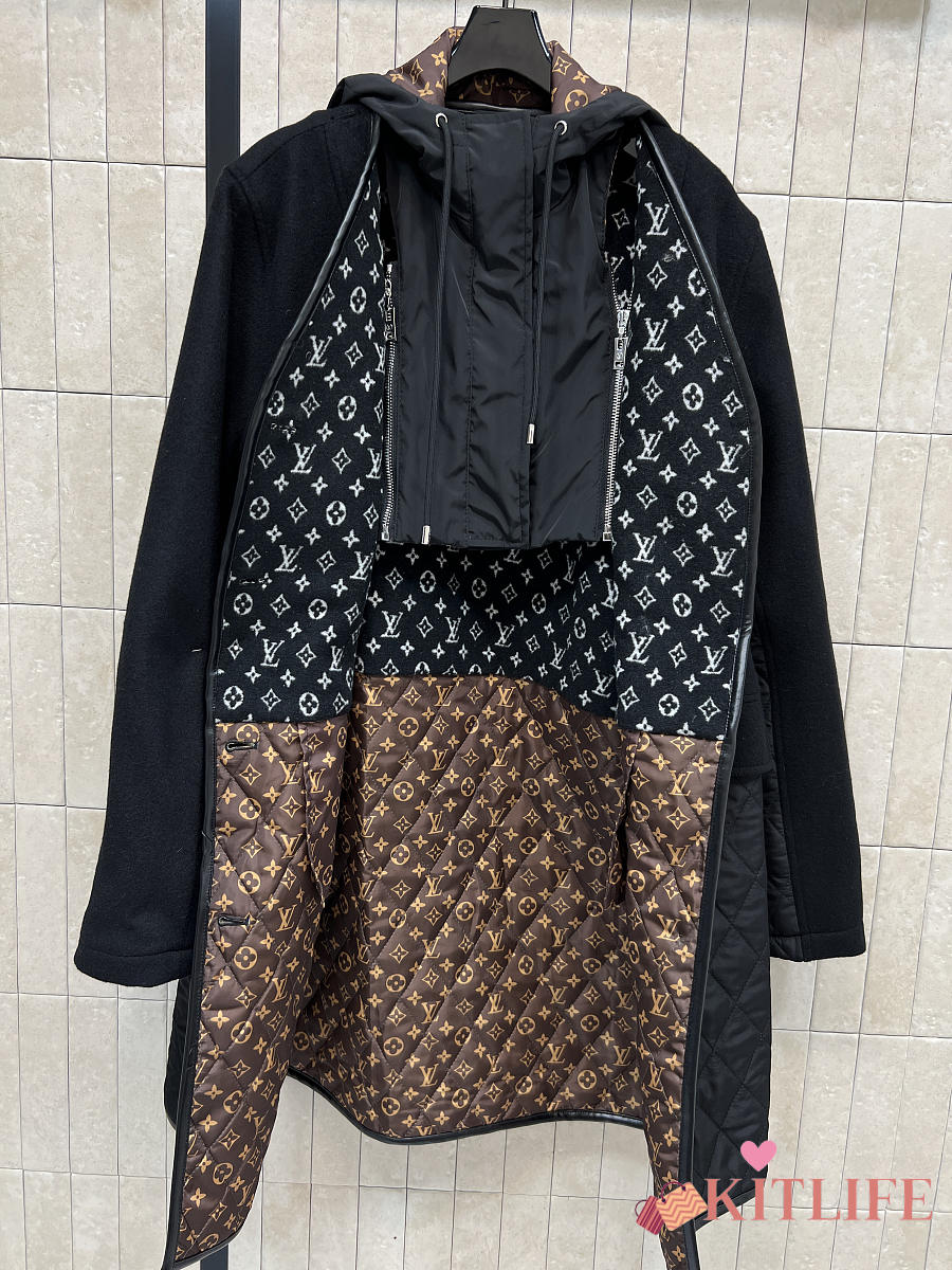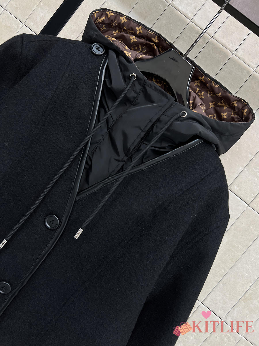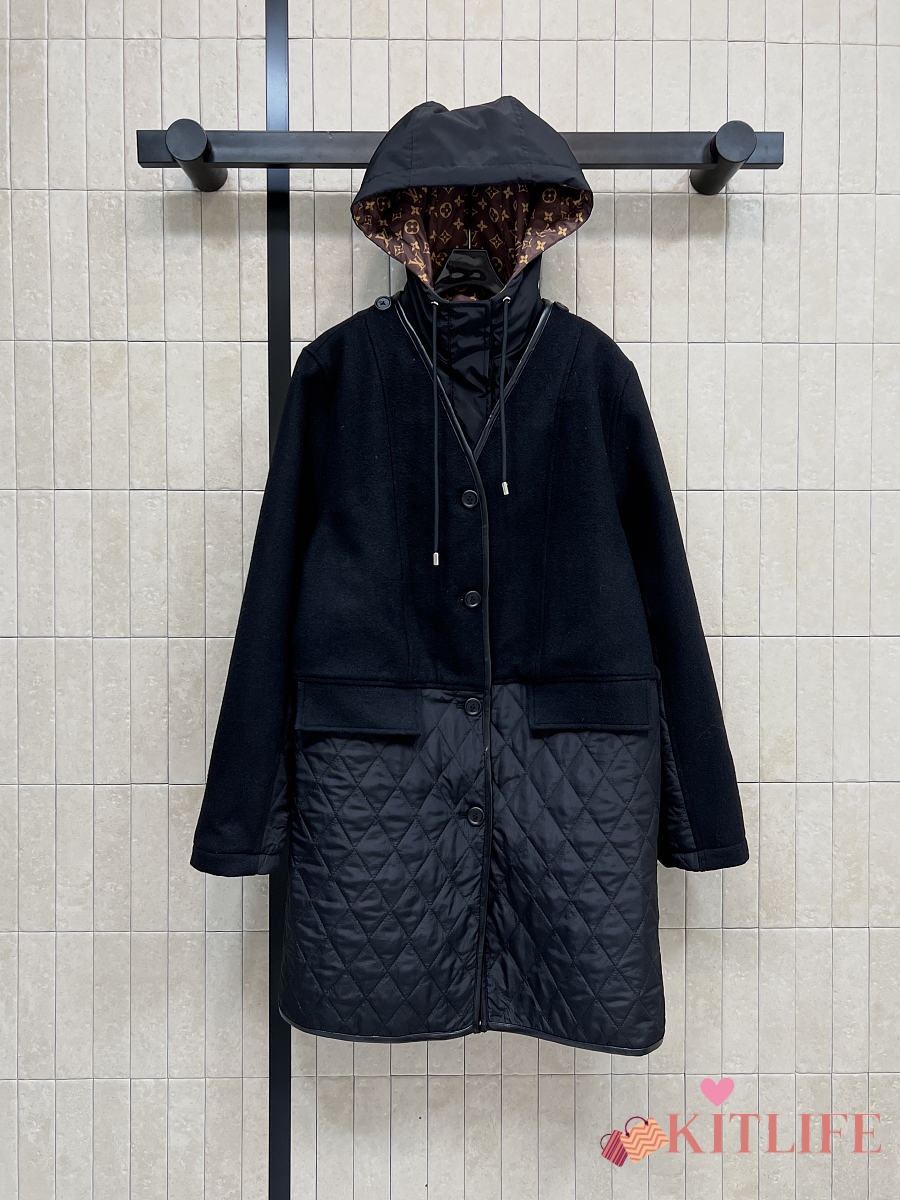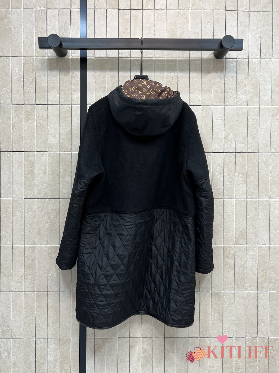 Kitlife Louis Vuitton Wool-trimmed Quilted Hooded Coat Black