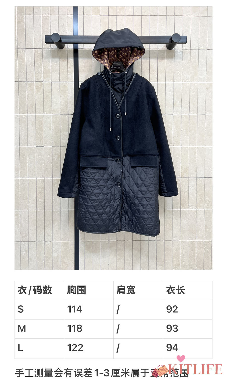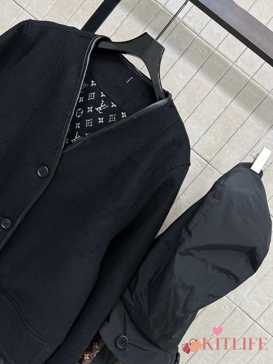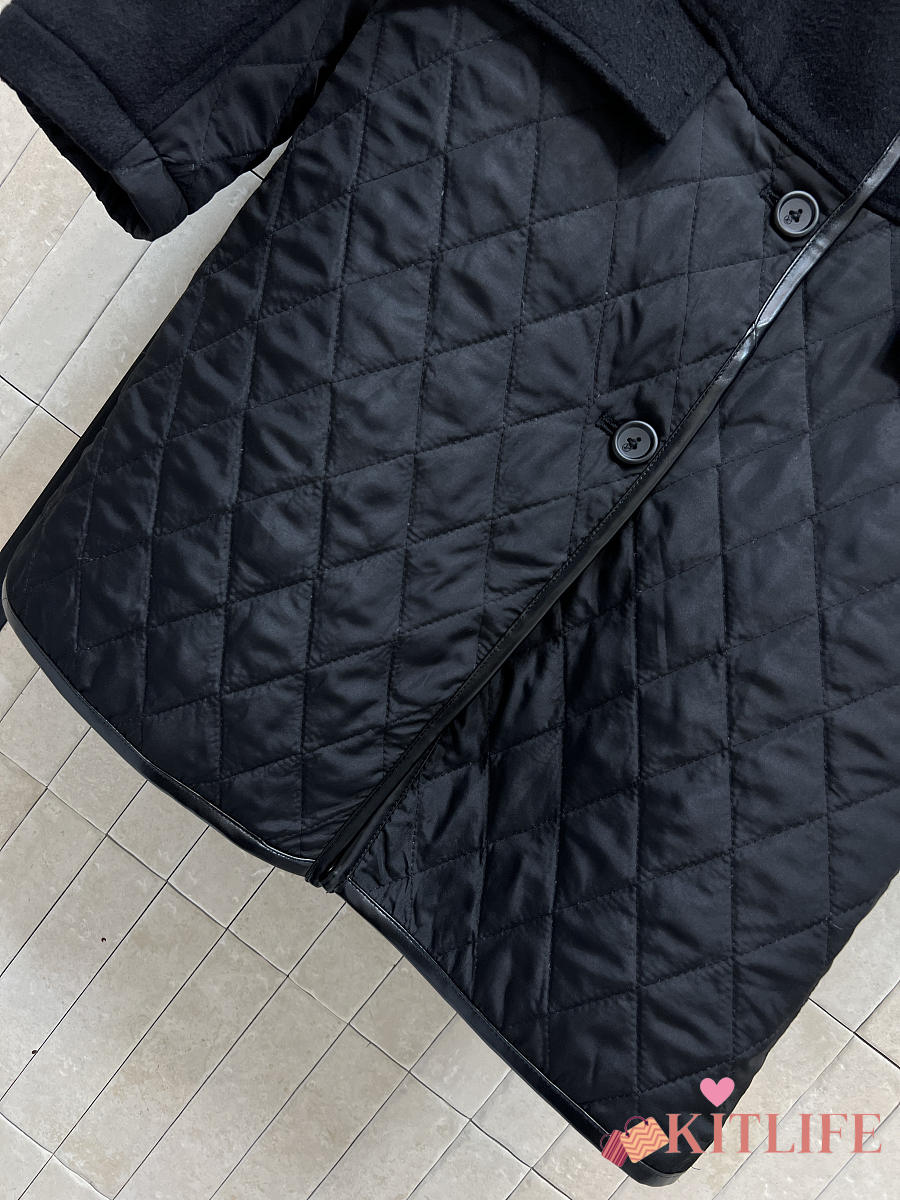 Kitlife Louis Vuitton Wool-trimmed Quilted Hooded Coat Black