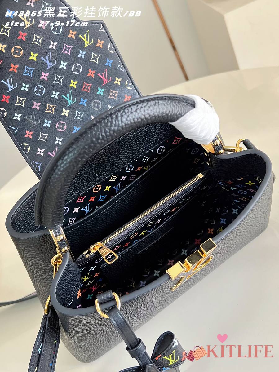 Kitlife Louis Vuitton x TM Capucines BB Bag Black with Tricolor Charm M48865 27x9x17cm