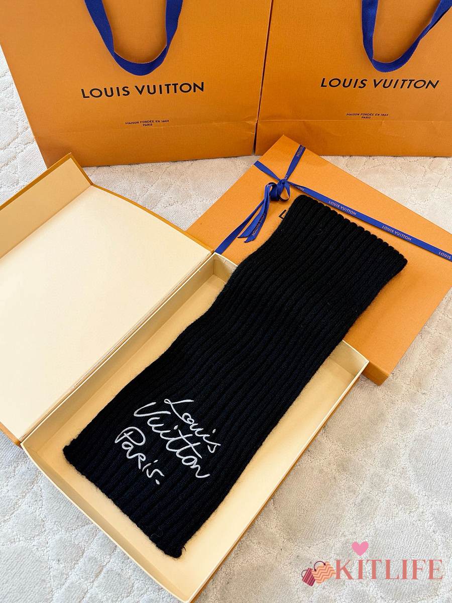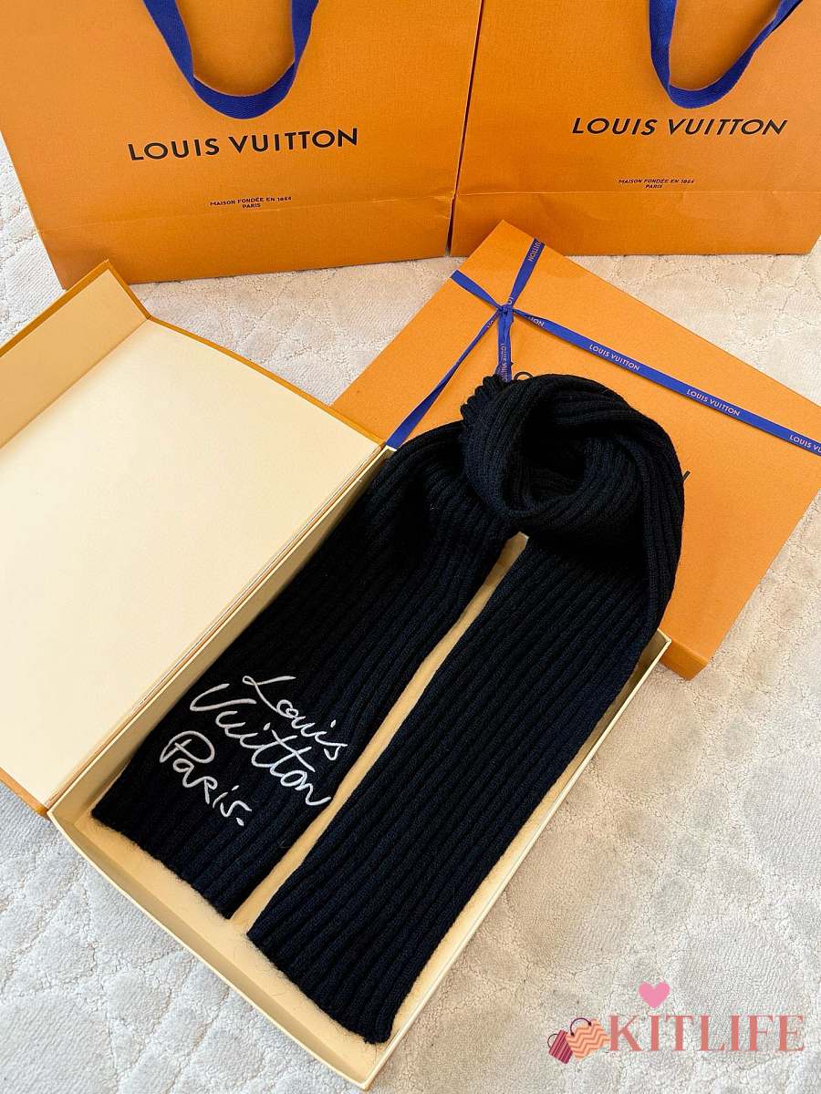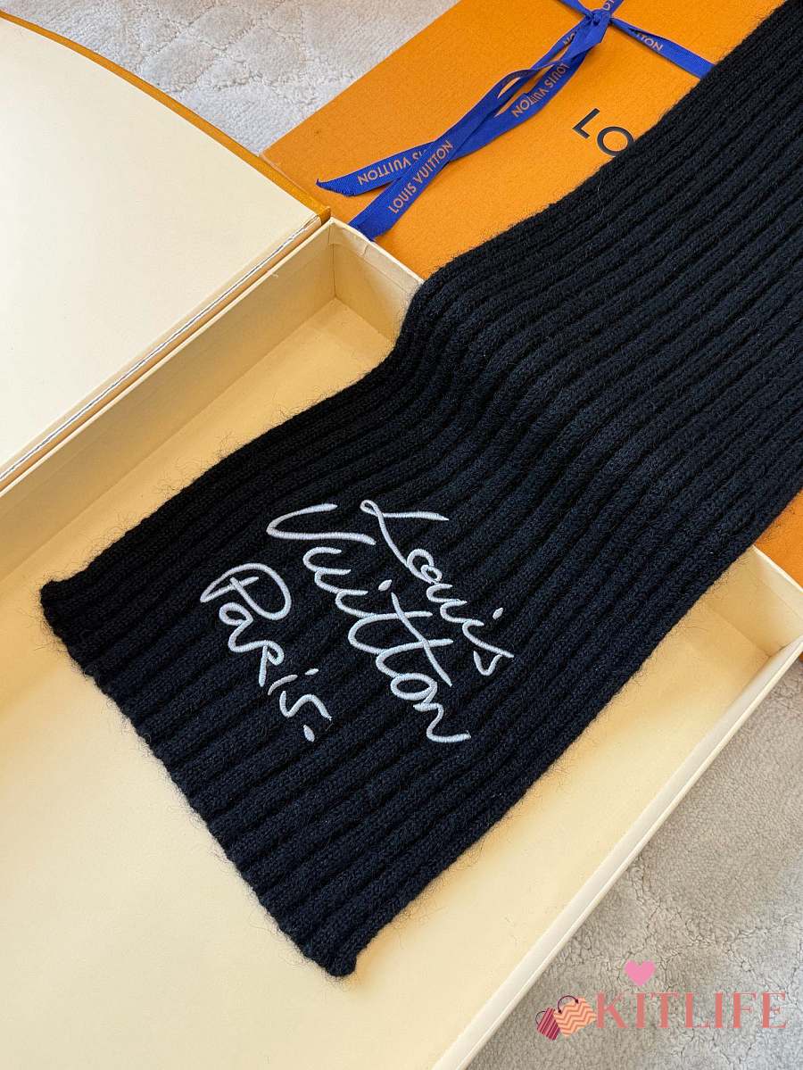 Kitlife Louis Vuitton Script Scarf Black 200x24cm