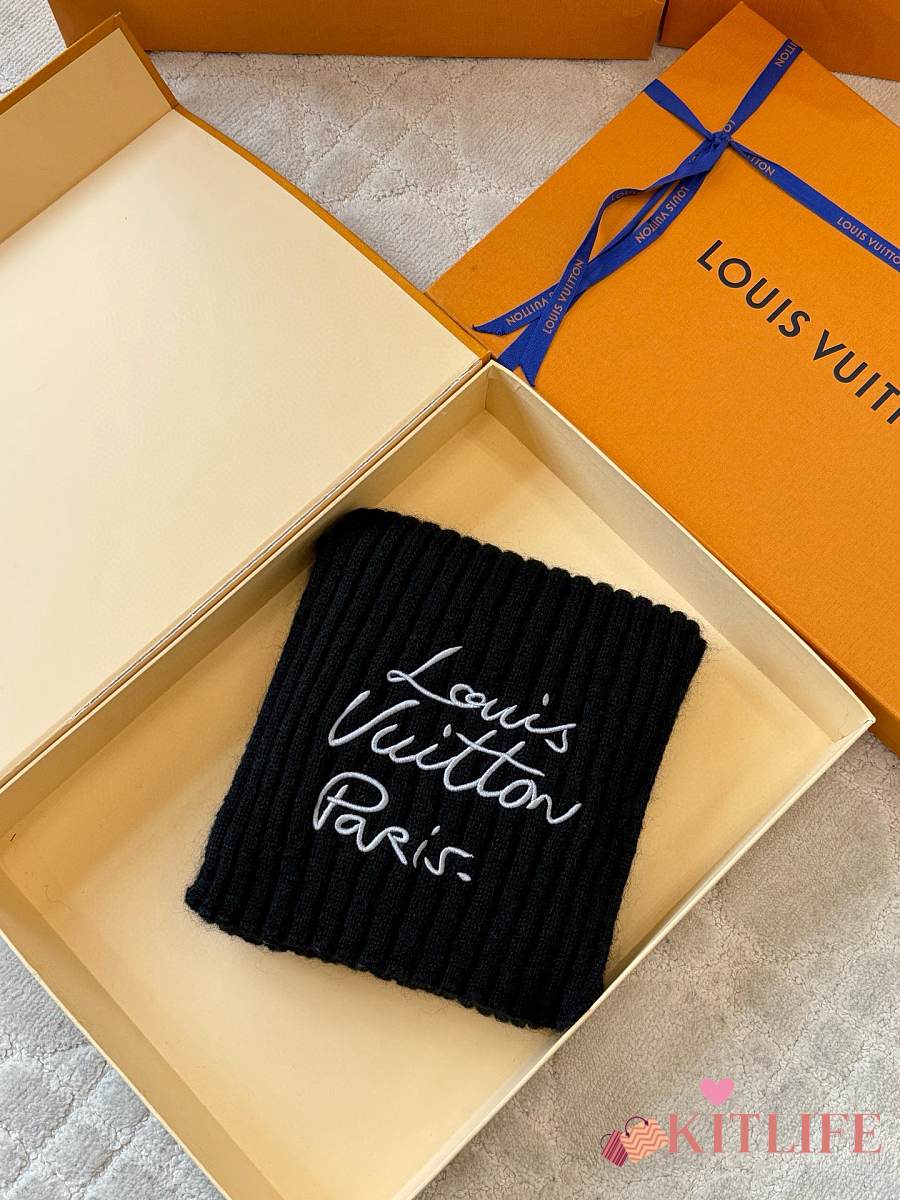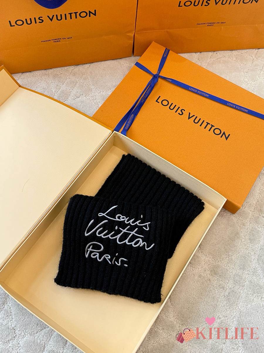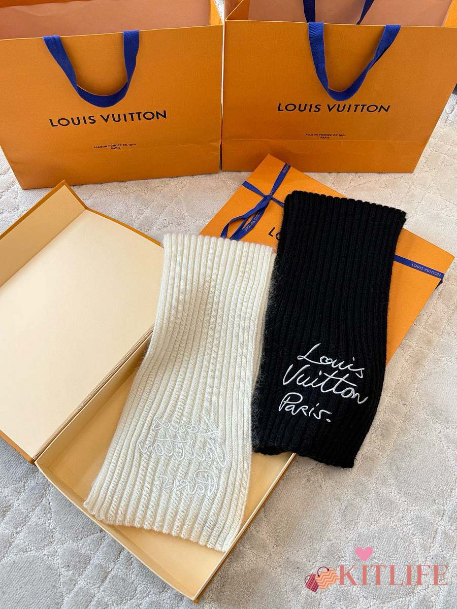 Kitlife Louis Vuitton Script Scarf Black 200x24cm