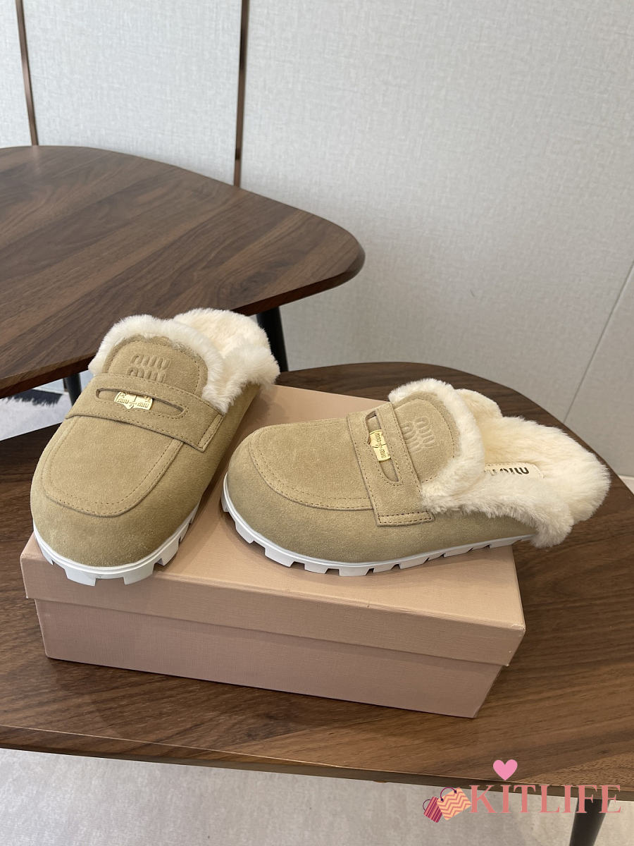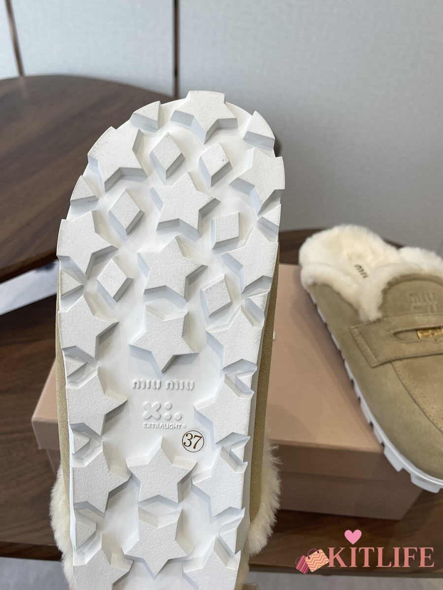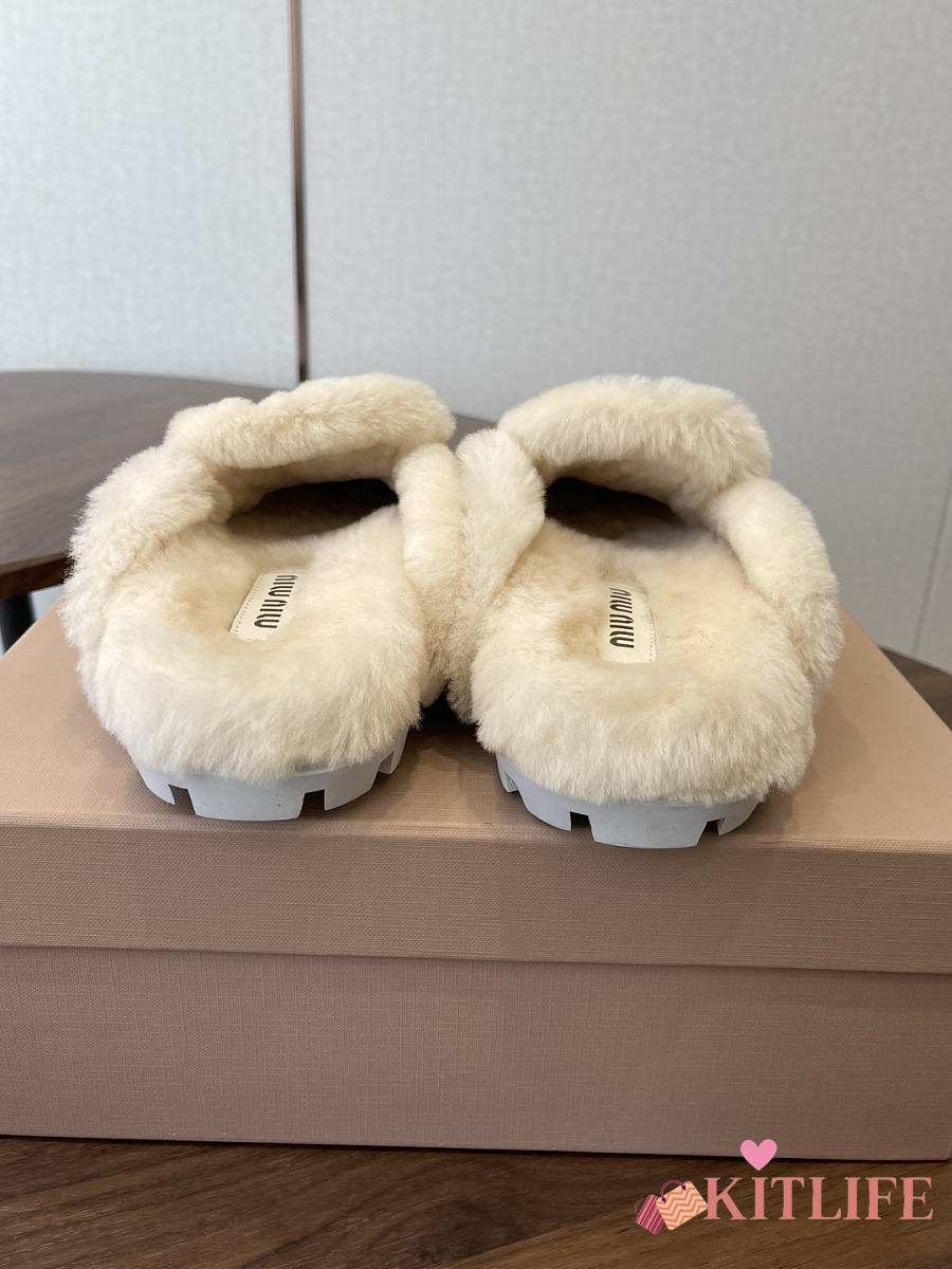 Kitlife Miu Miu 25SS Closed-toe Fur Slippers Beige