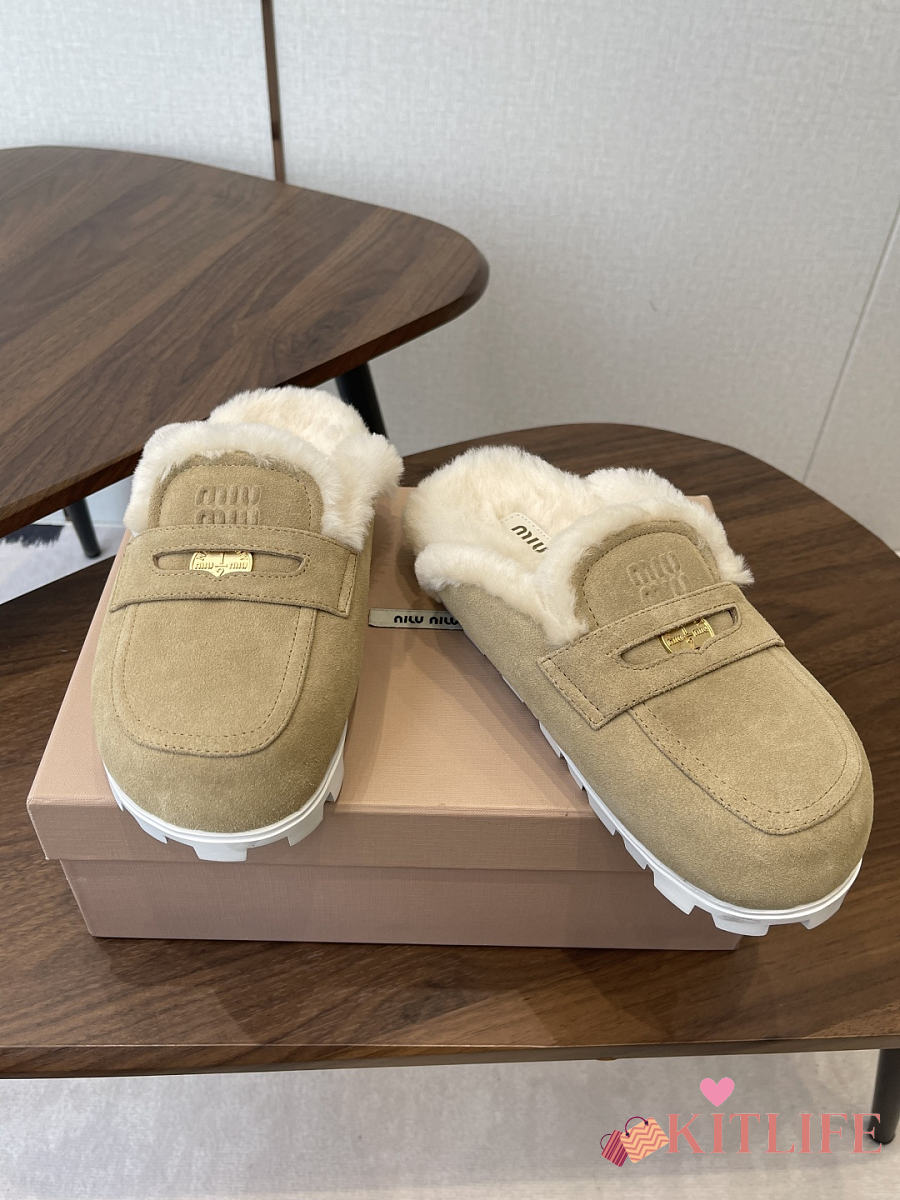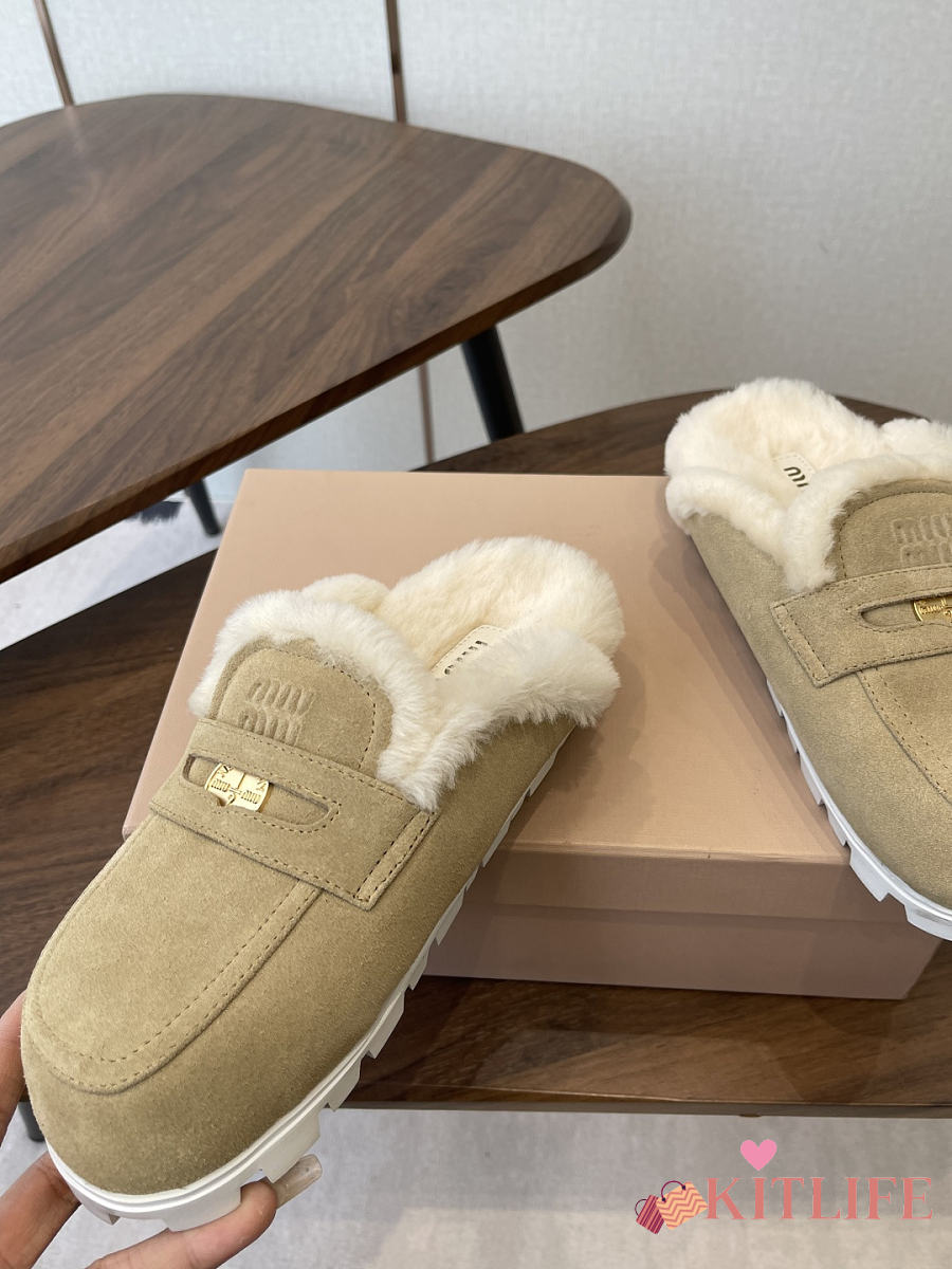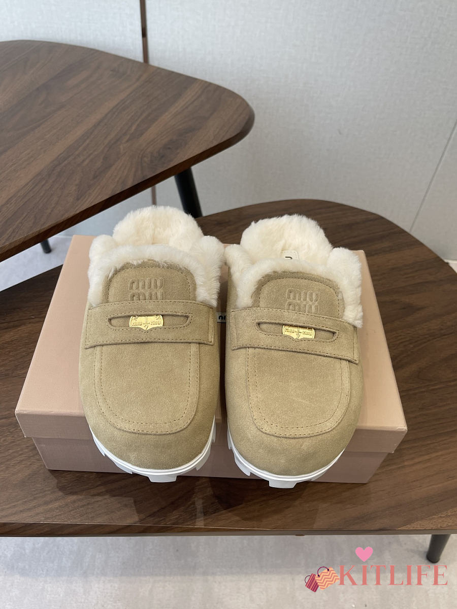 Kitlife Miu Miu 25SS Closed-toe Fur Slippers Beige