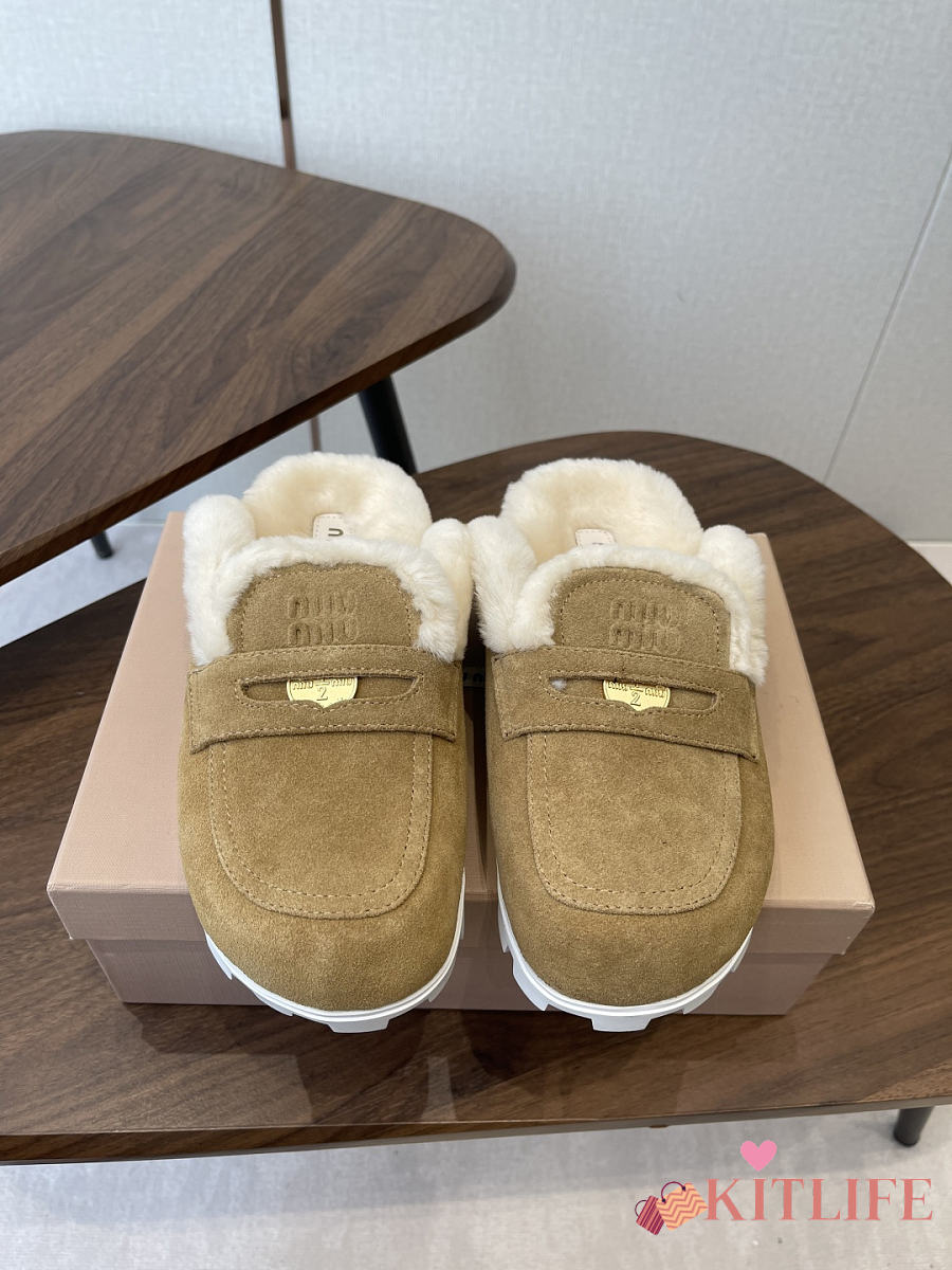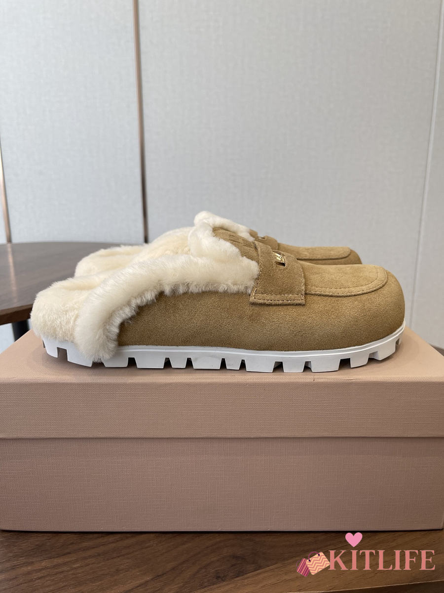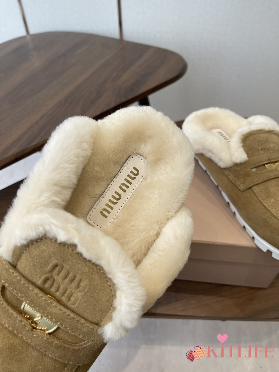 Kitlife Miu Miu 25SS Closed-toe Fur Slippers Brown