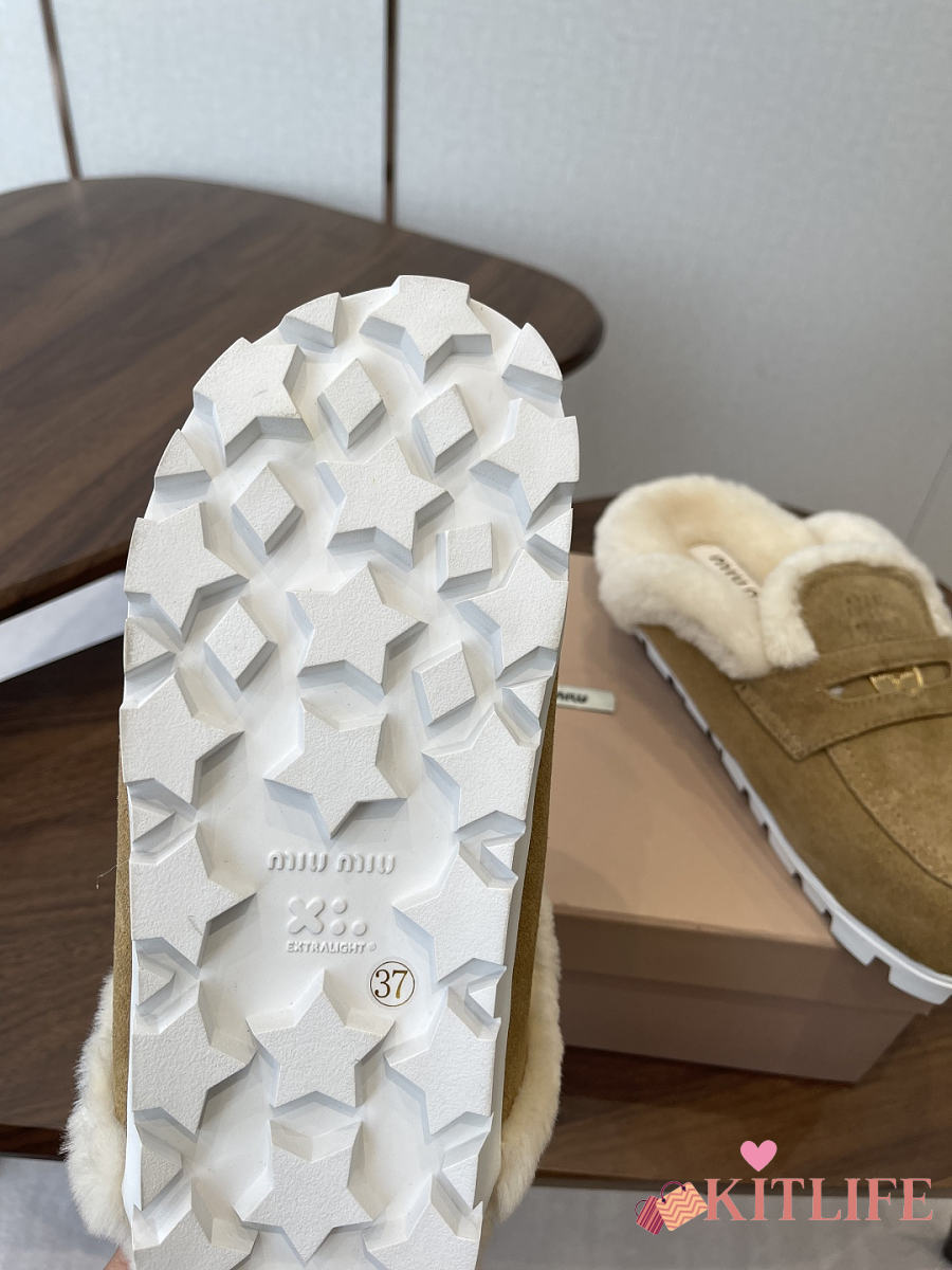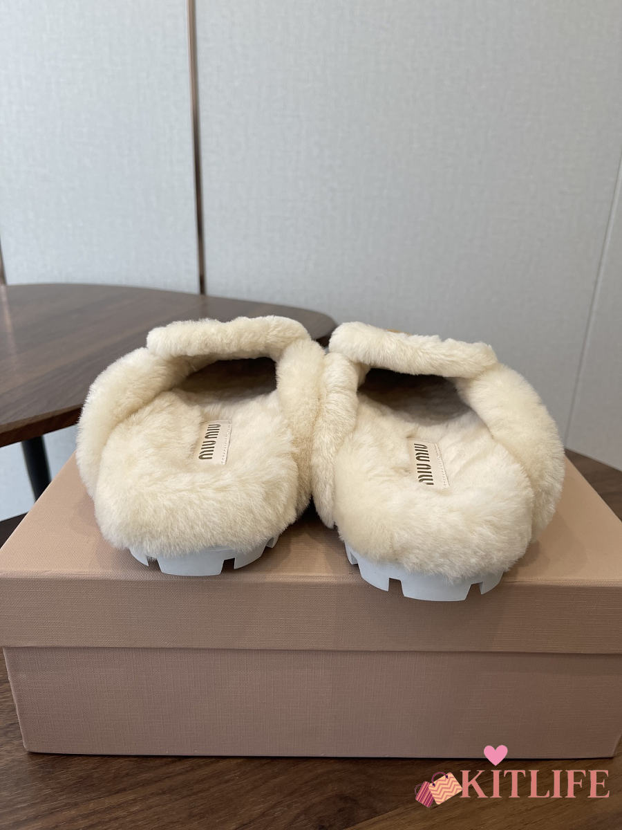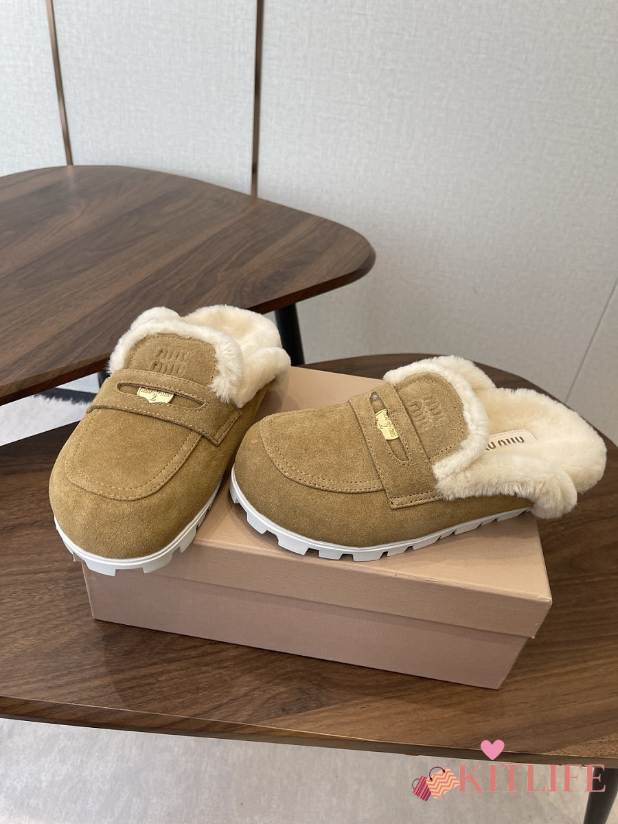 Kitlife Miu Miu 25SS Closed-toe Fur Slippers Brown
