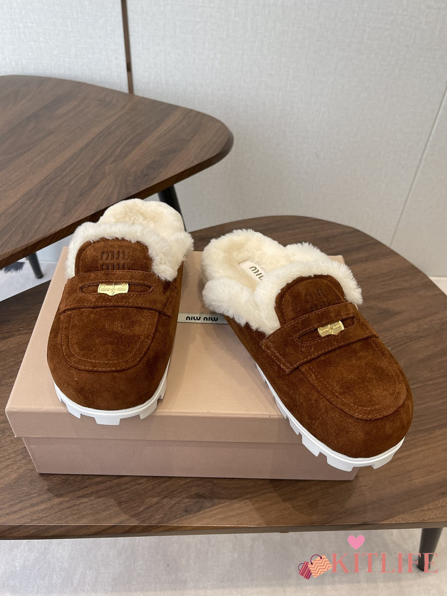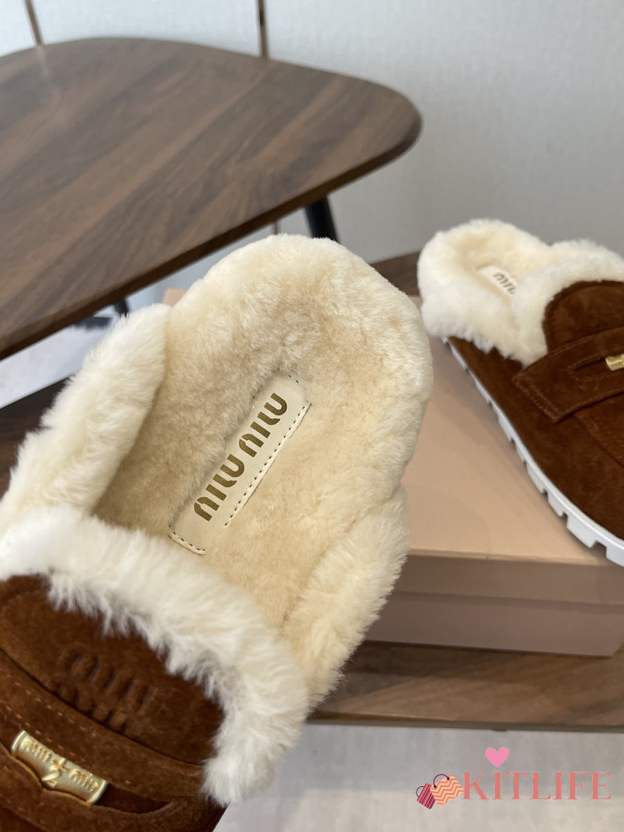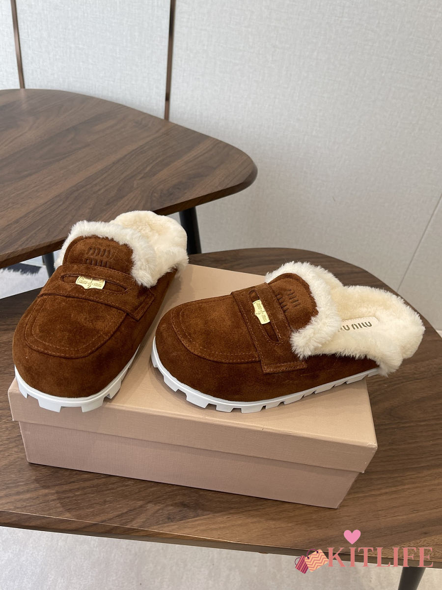 Kitlife Miu Miu 25SS Closed-toe Fur Slippers Dark Brown