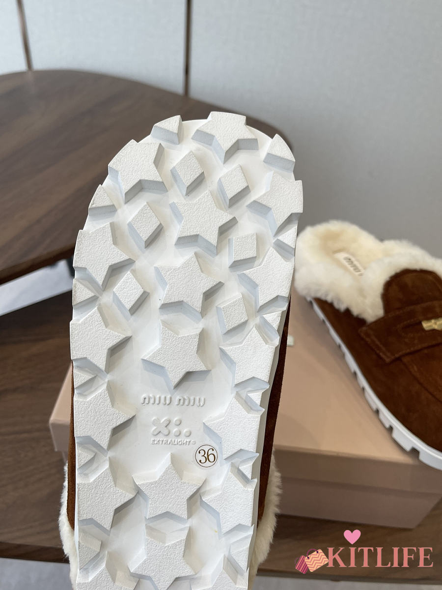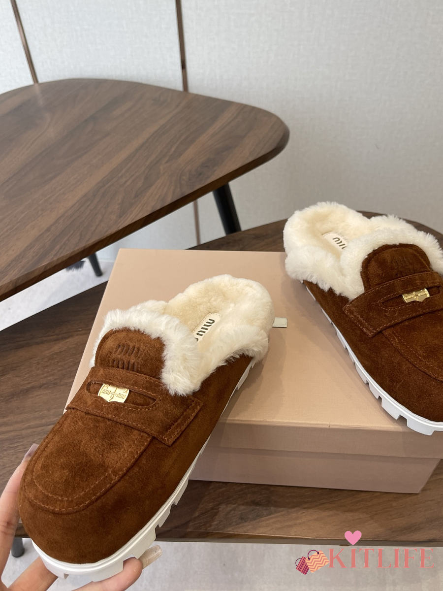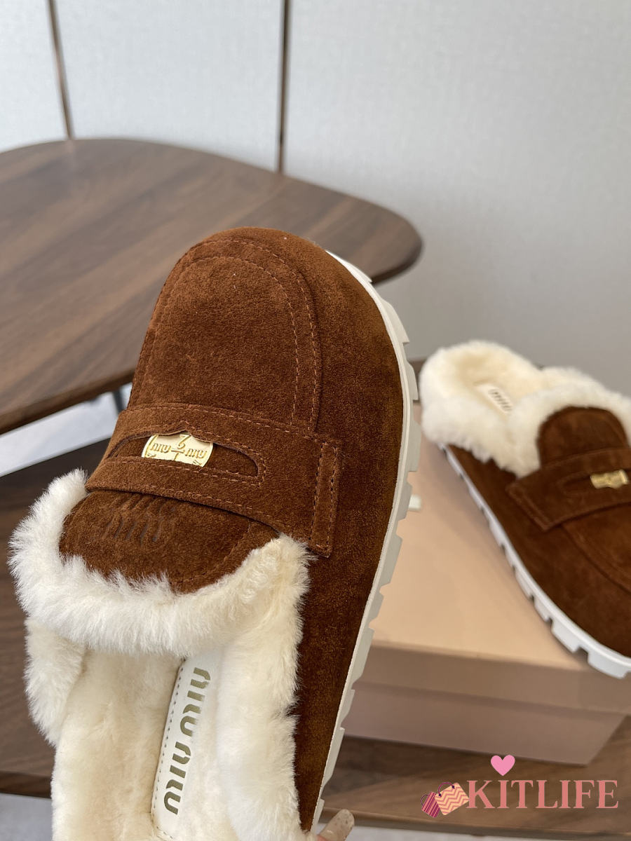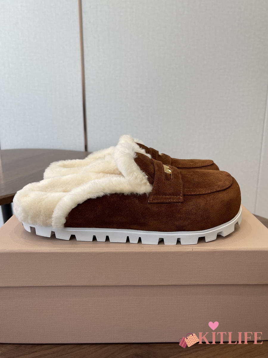 Kitlife Miu Miu 25SS Closed-toe Fur Slippers Dark Brown