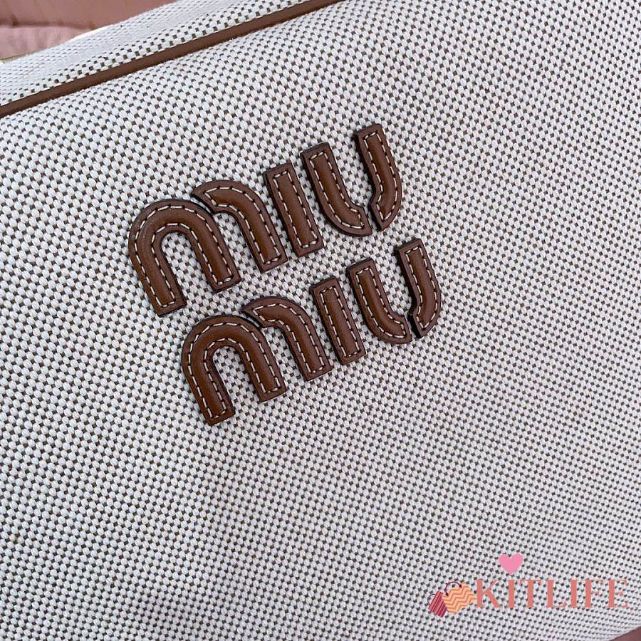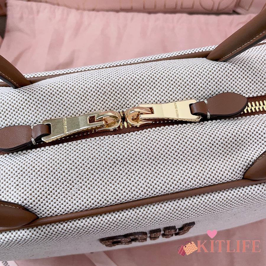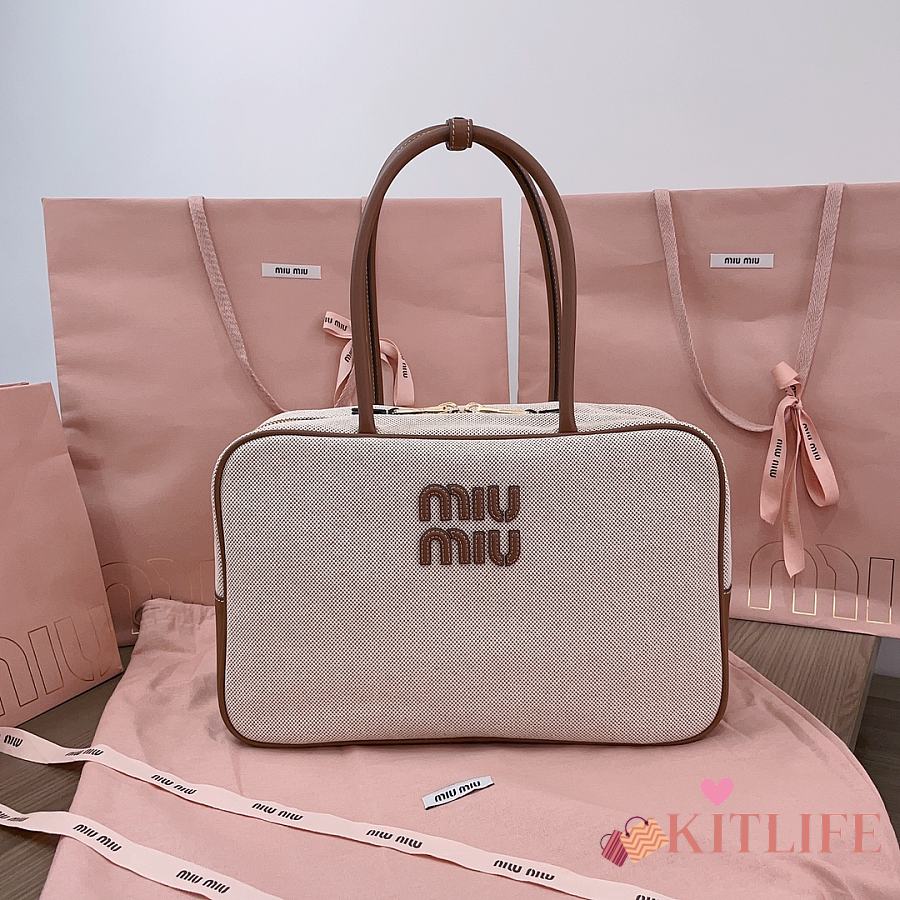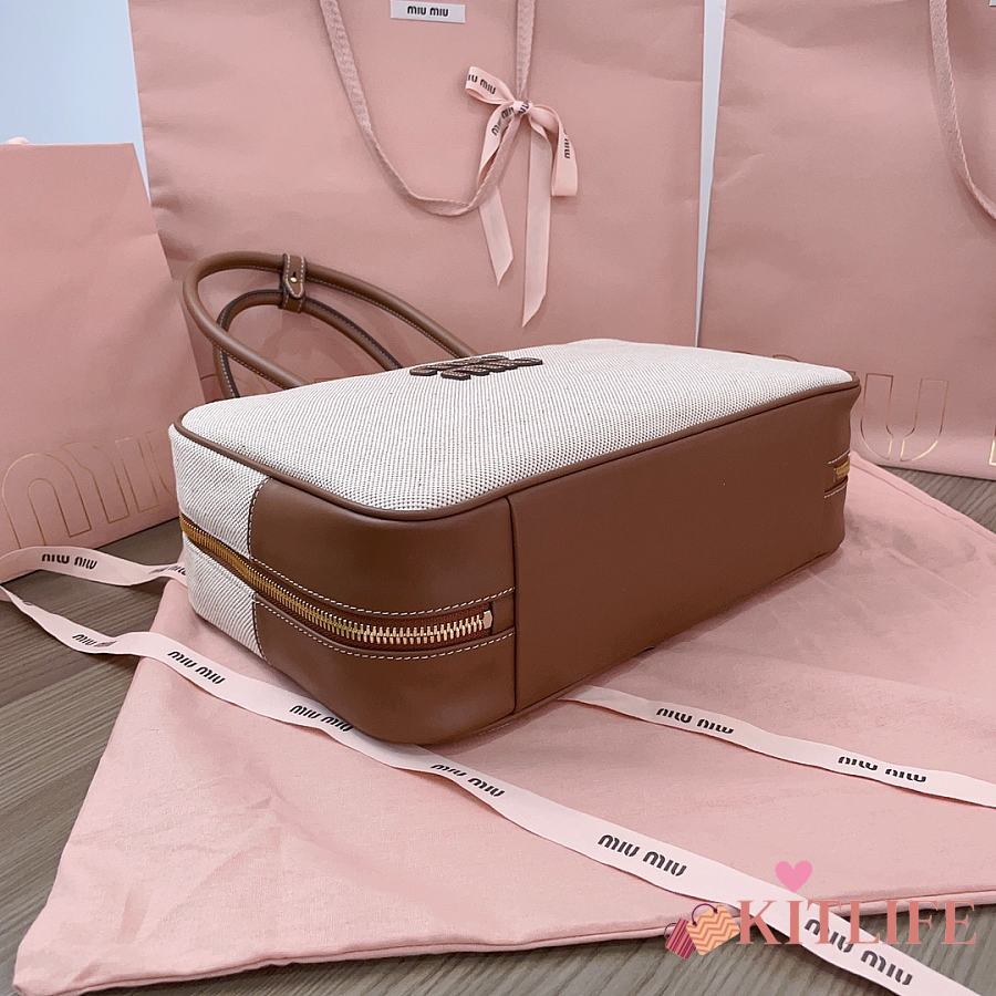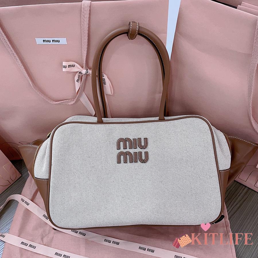 Kitlife Miu Miu Beau Brown Leather-trimmed Canvas Handle Bag 5BB117 34x23x12cm