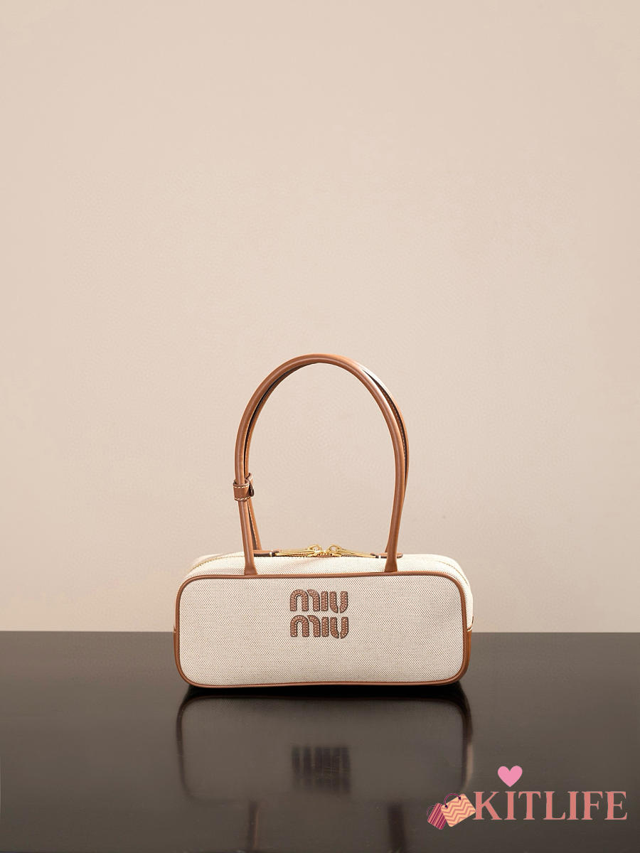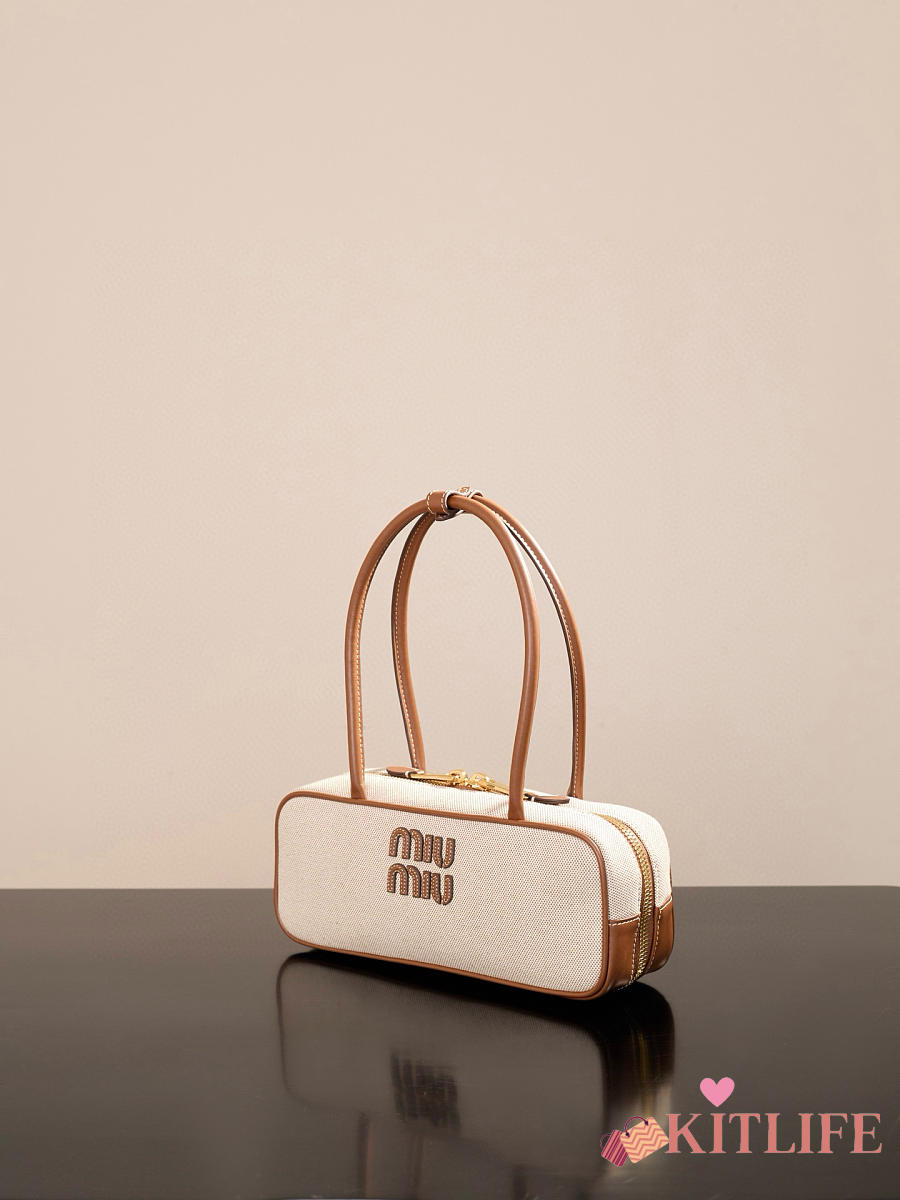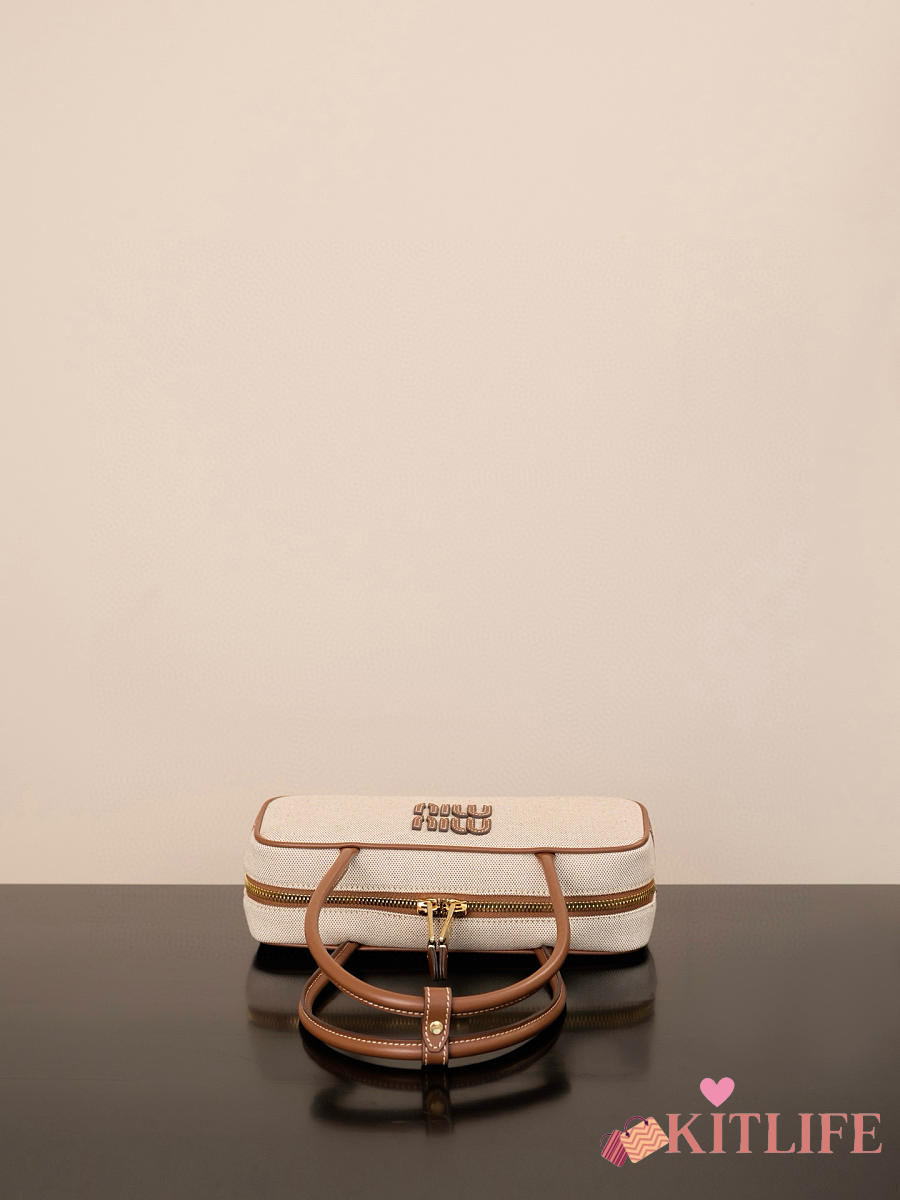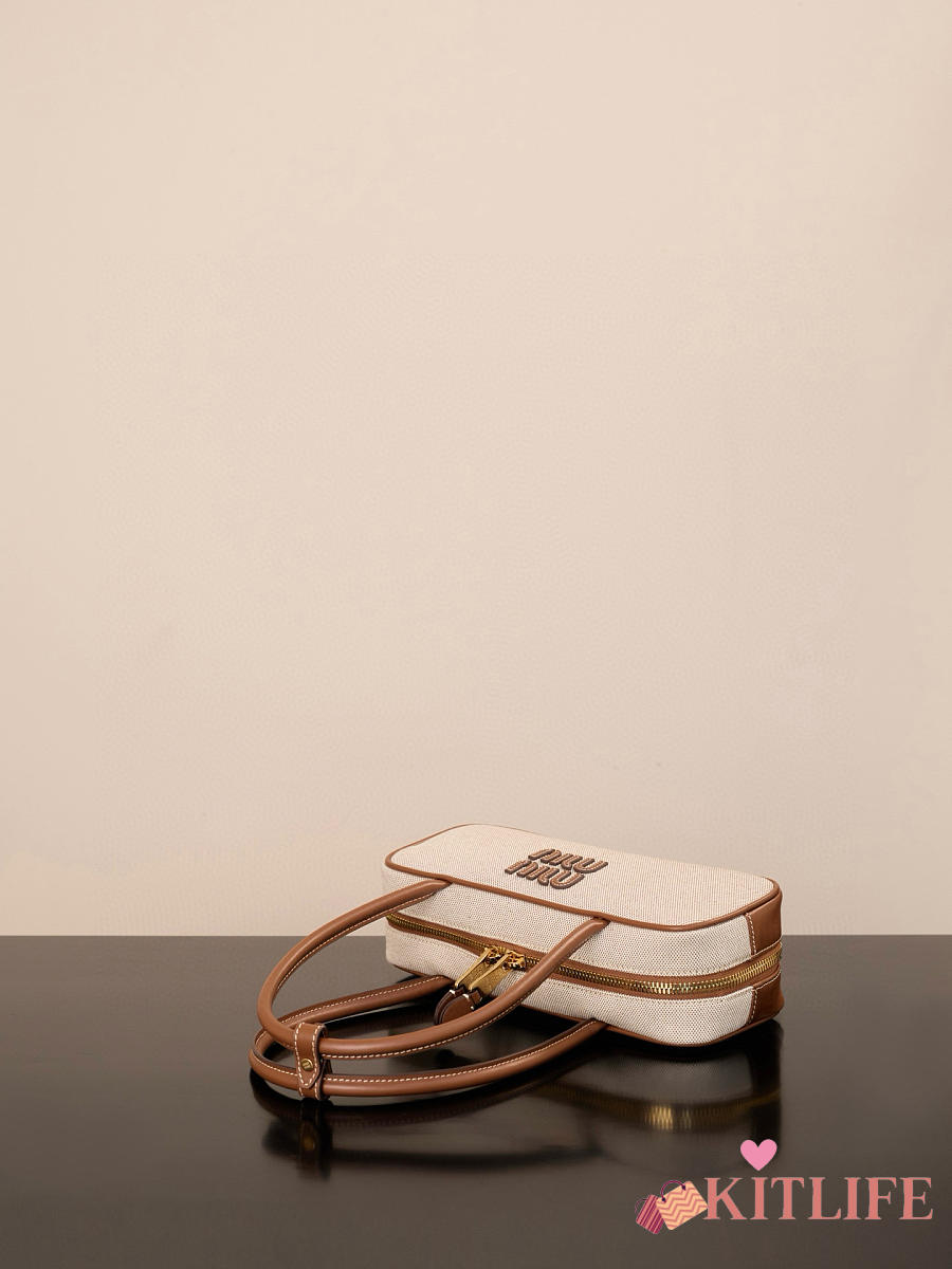 Kitlife Miu Miu Beau Brown Leather-trimmed Canvas Handle Bag 5BB173M 28x11.5x8cm