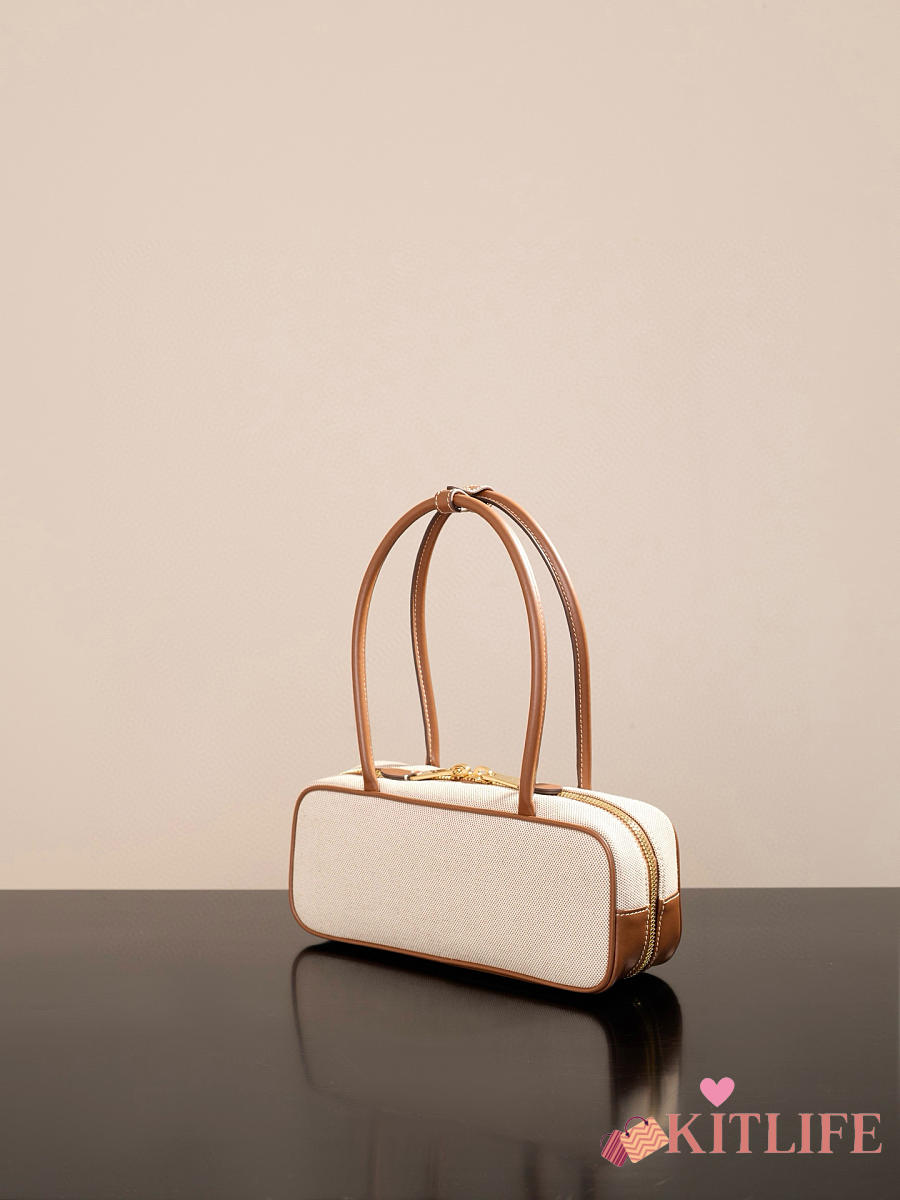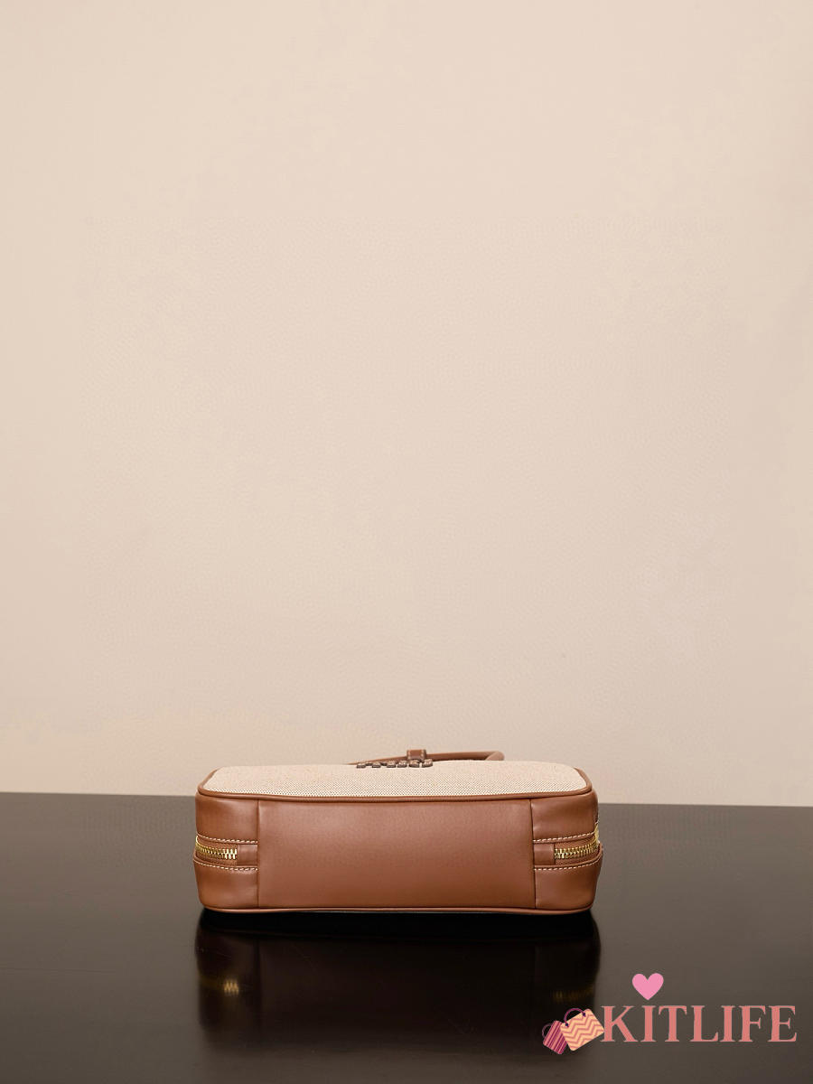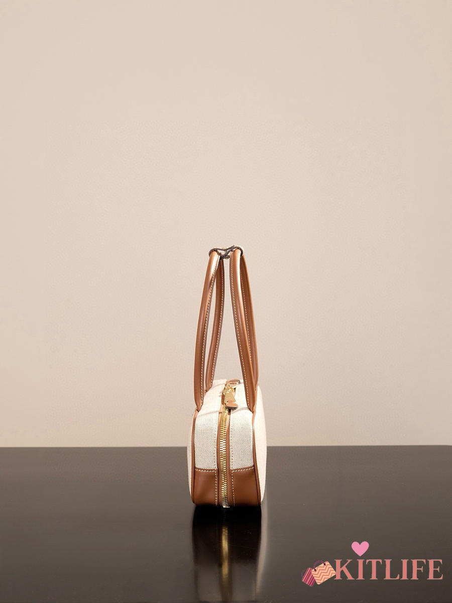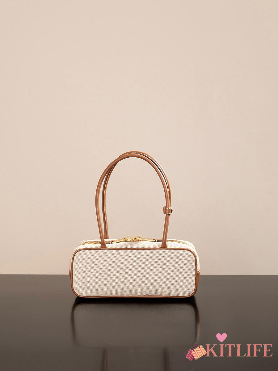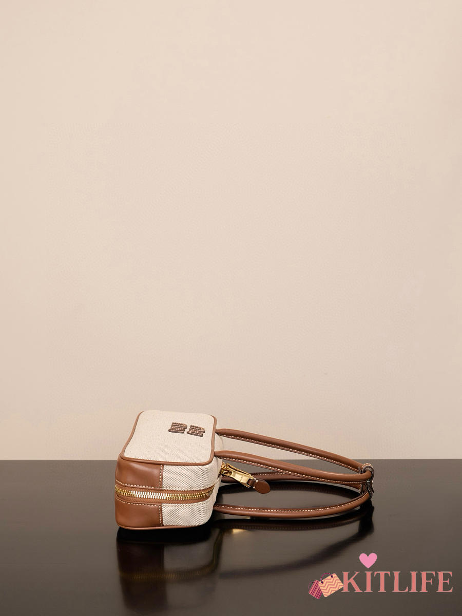 Kitlife Miu Miu Beau Brown Leather-trimmed Canvas Handle Bag 5BB173M 28x11.5x8cm