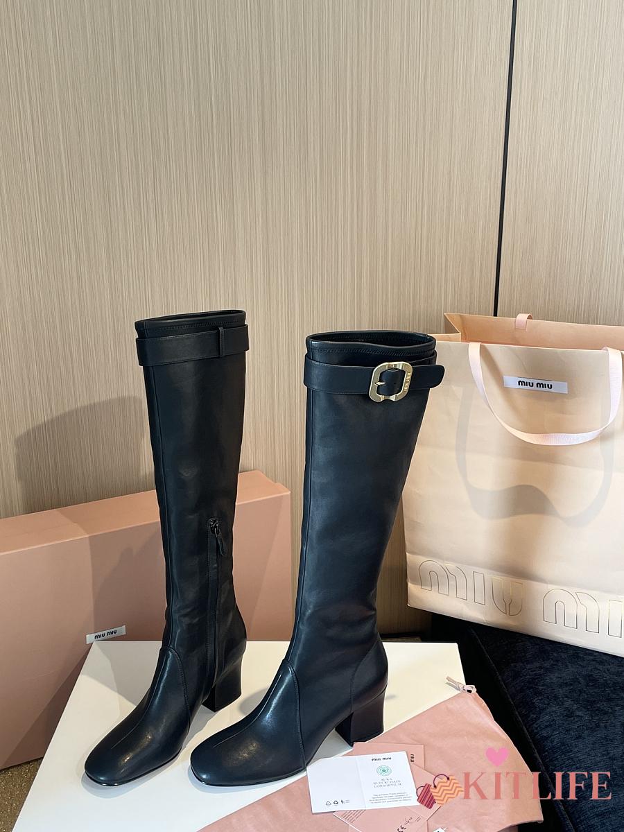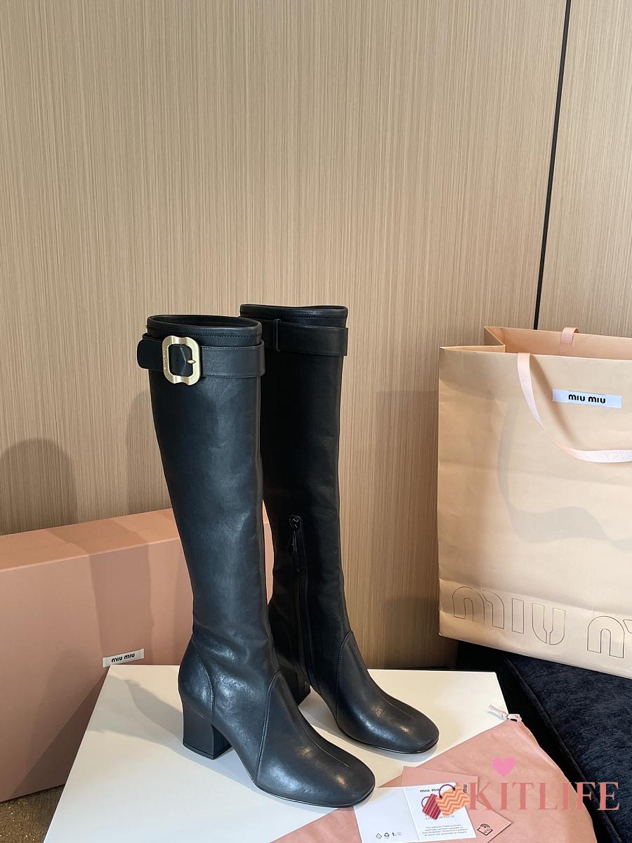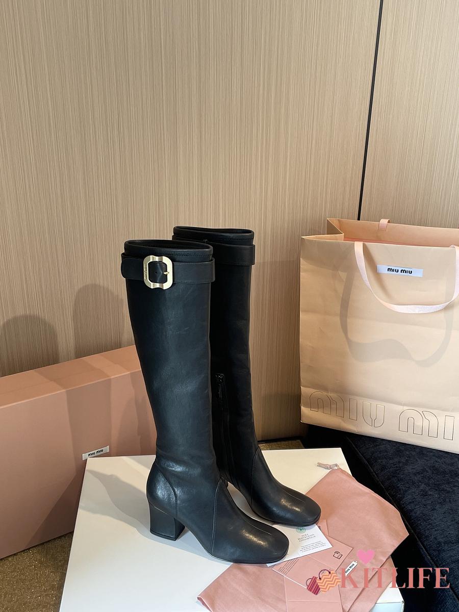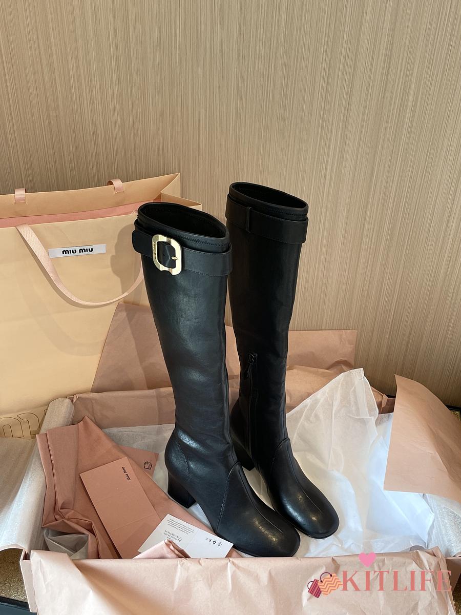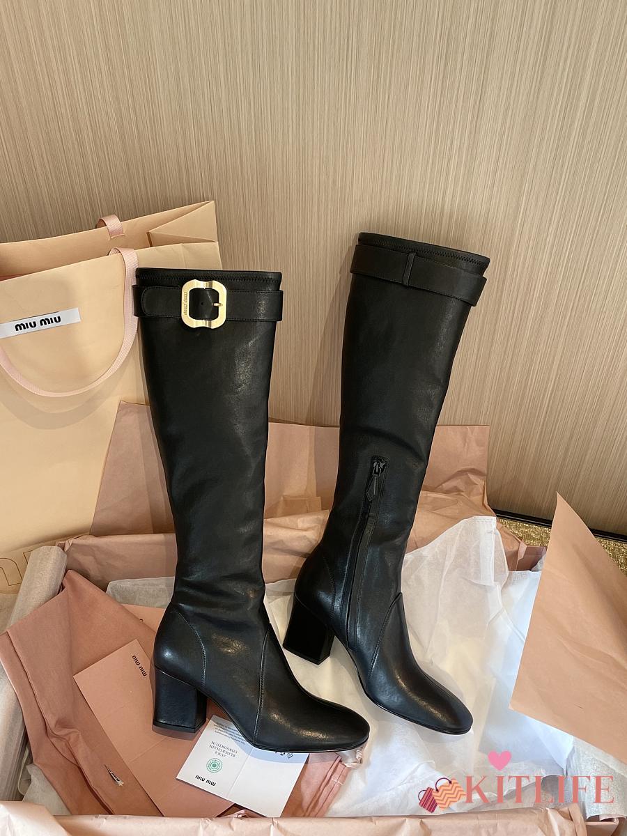Kitlife Miu Miu Black Nappa Leather Boots With Buckle