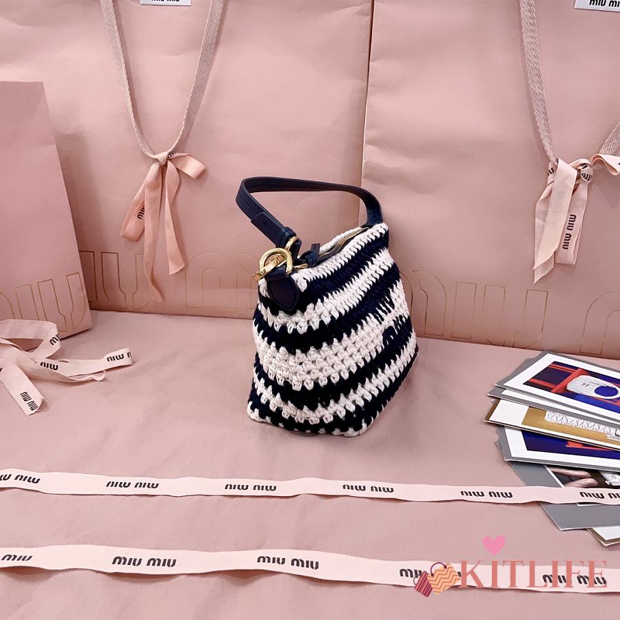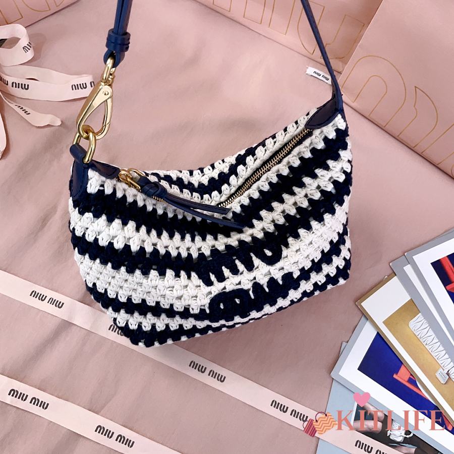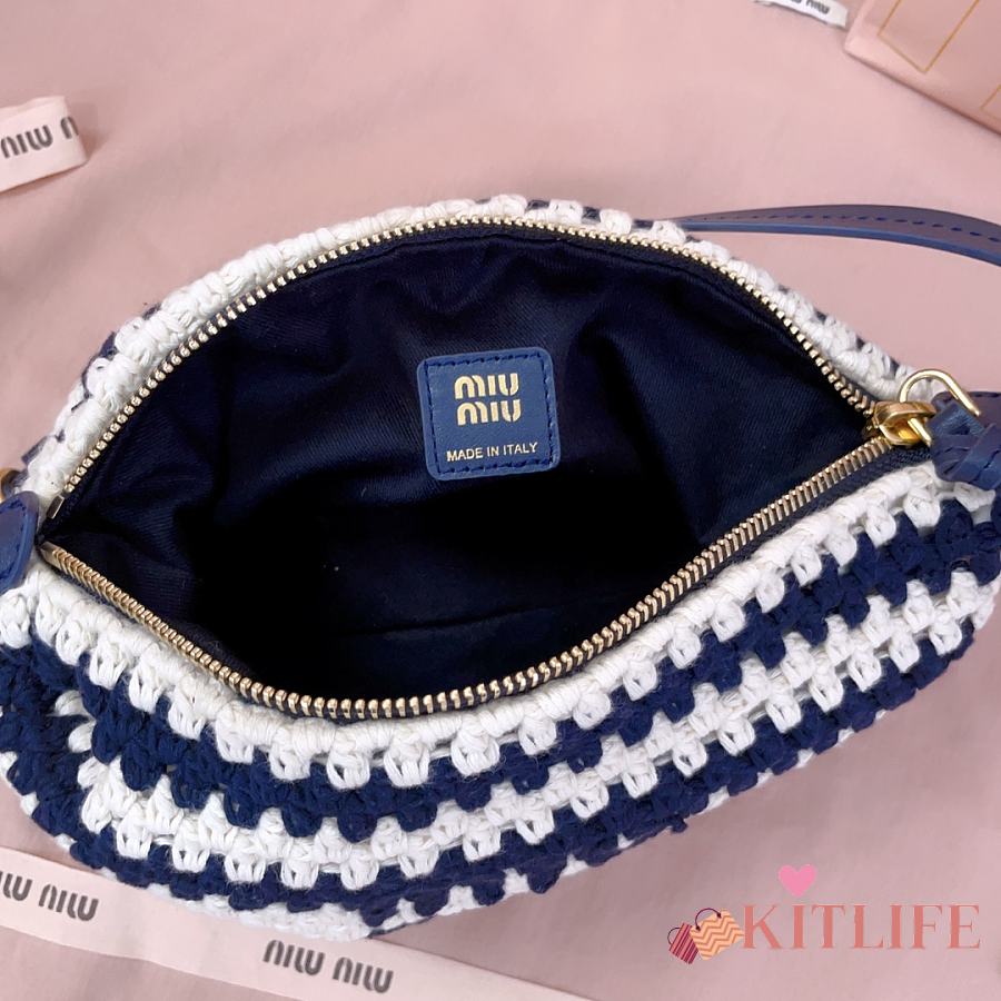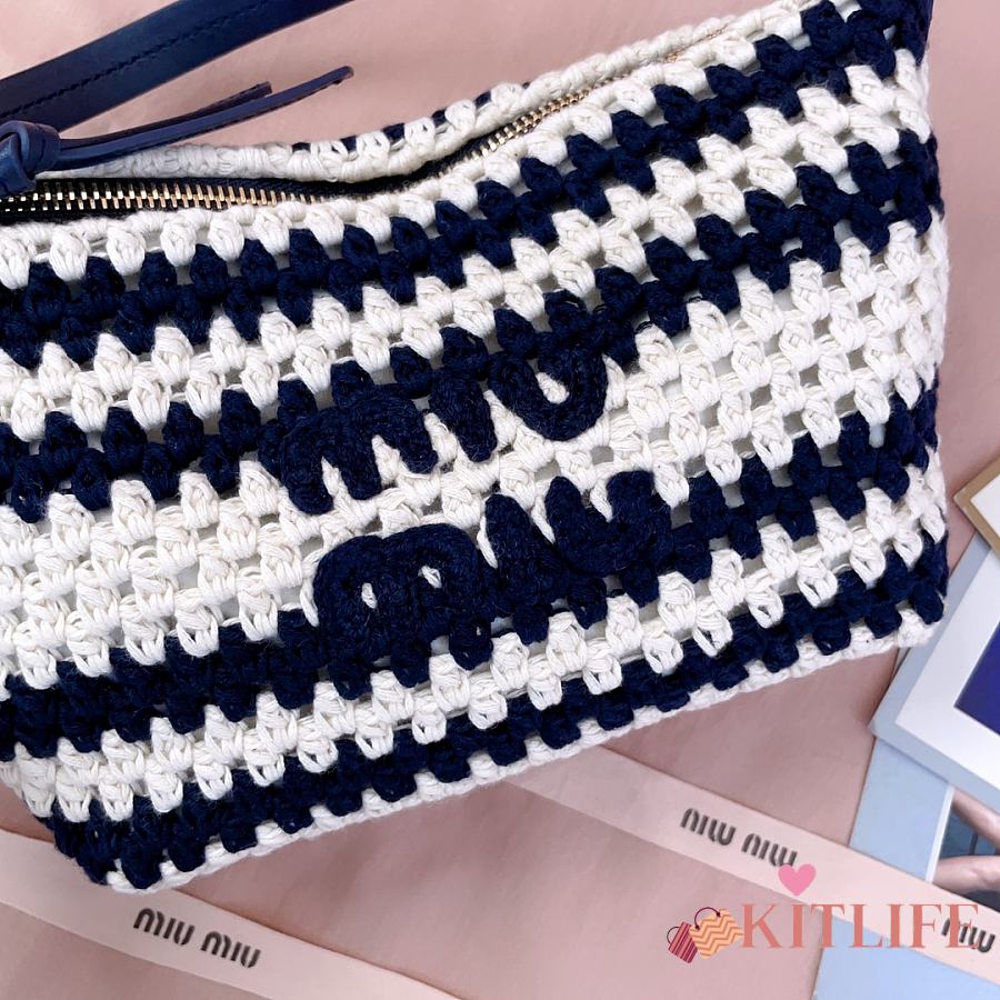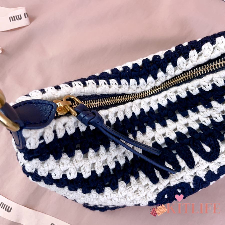 Kitlife Miu Miu Crochet Pouch White & Dark Blue 5NE841 25.5x14x10cm