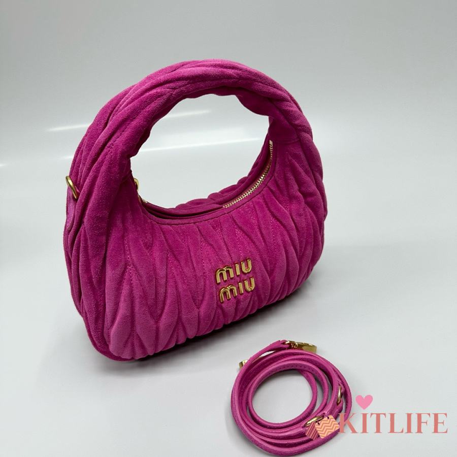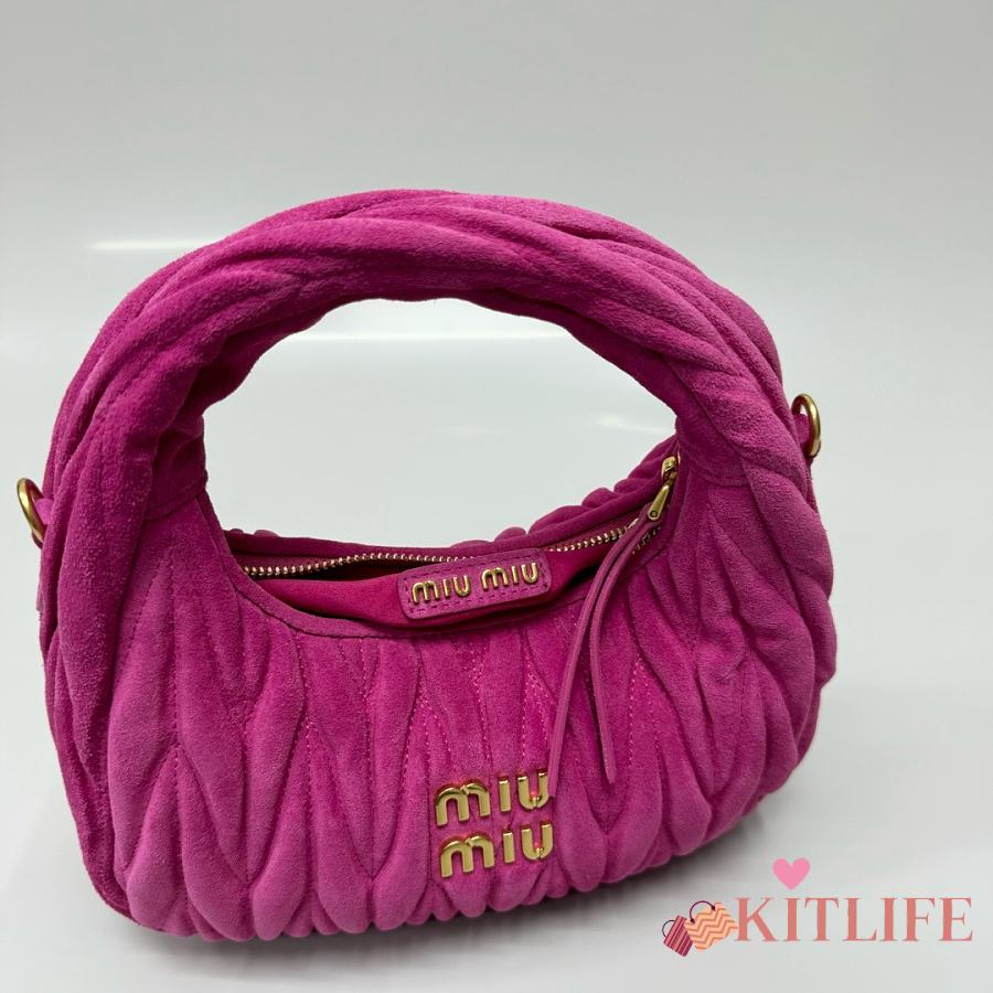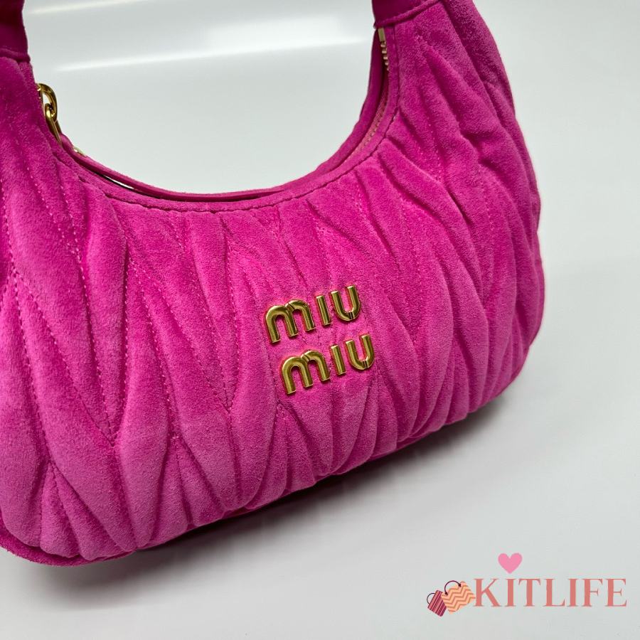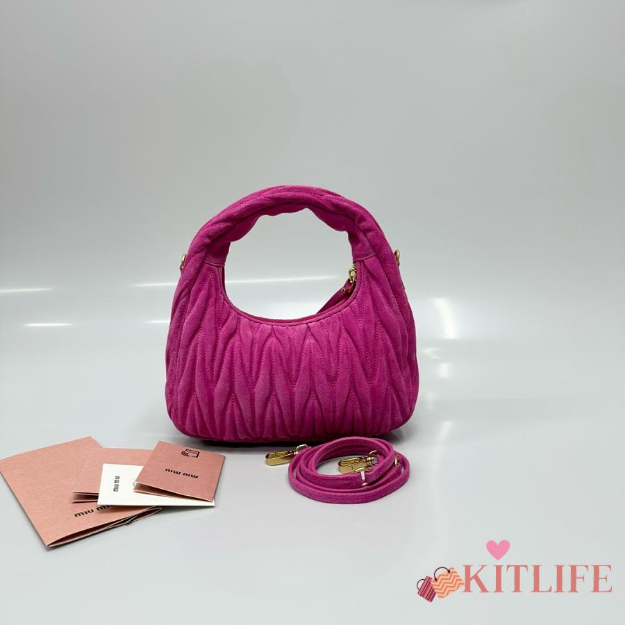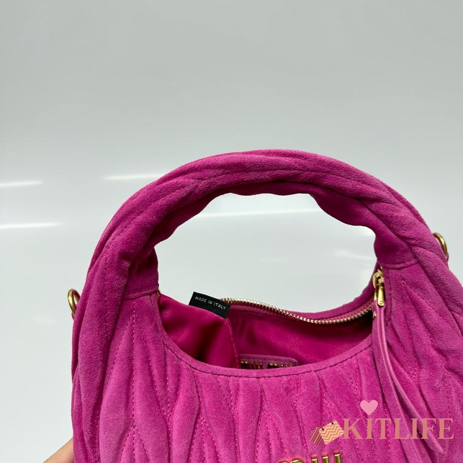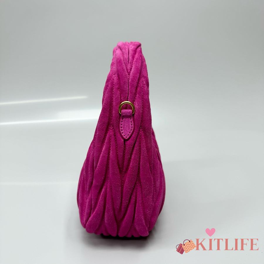 Kitlife Miu Miu Dark Pink Pink Wander Matelassé Suede Bag 20x17x6cm