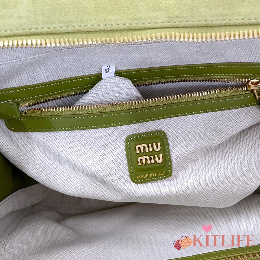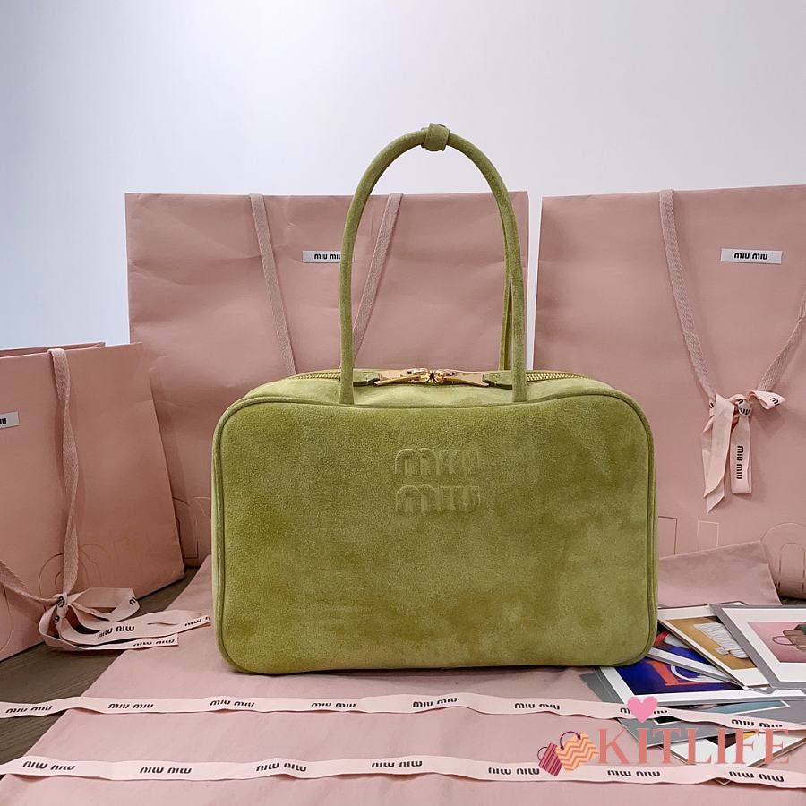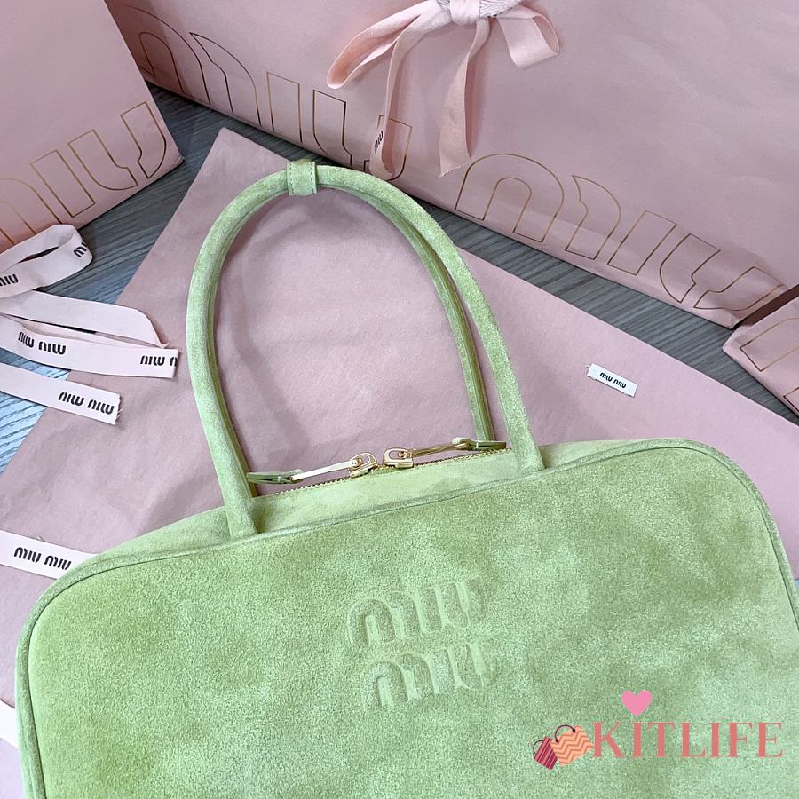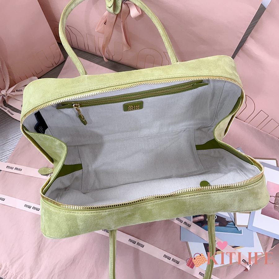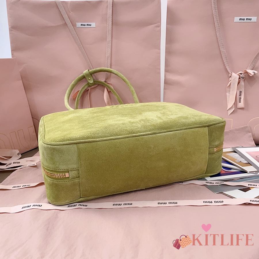 Kitlife Miu Miu Green Suede Leather Beau Handle Bag 5BB117 34x23x12cm