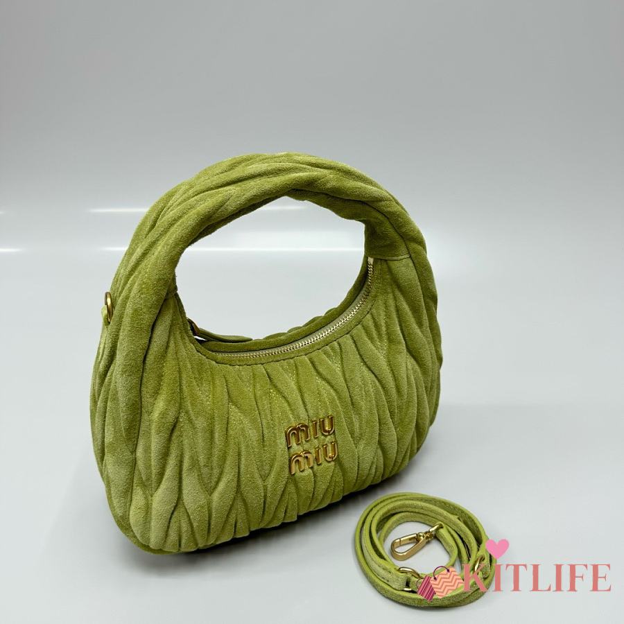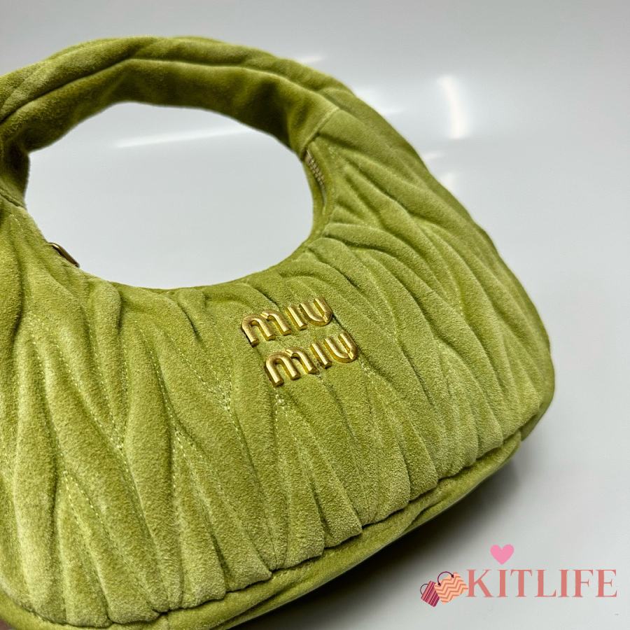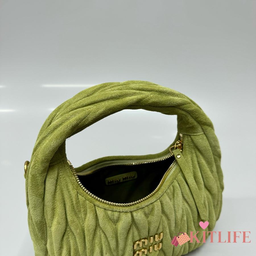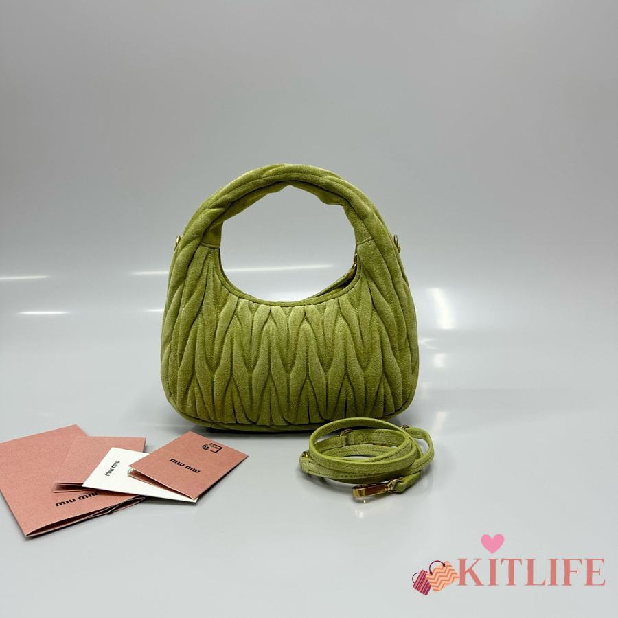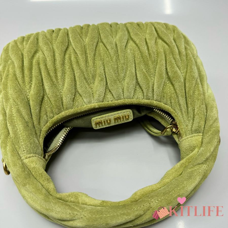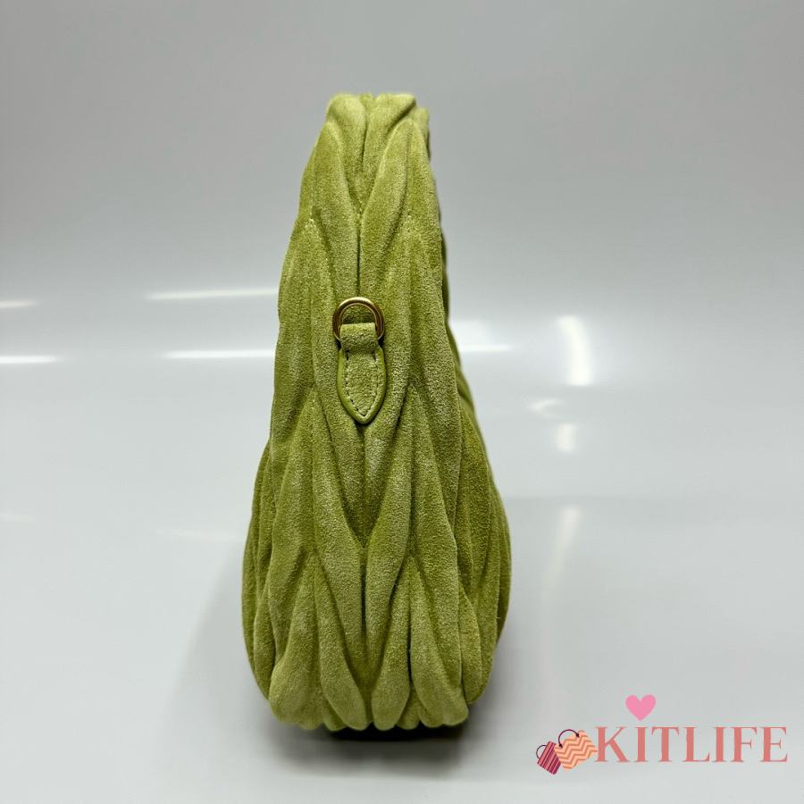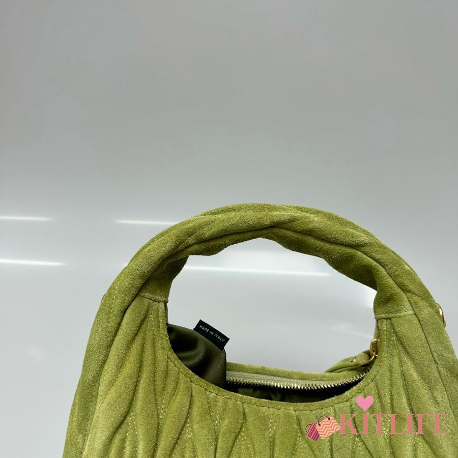 Kitlife Miu Miu Ivy Green Wander Matelassé Suede Bag 20x17x6cm