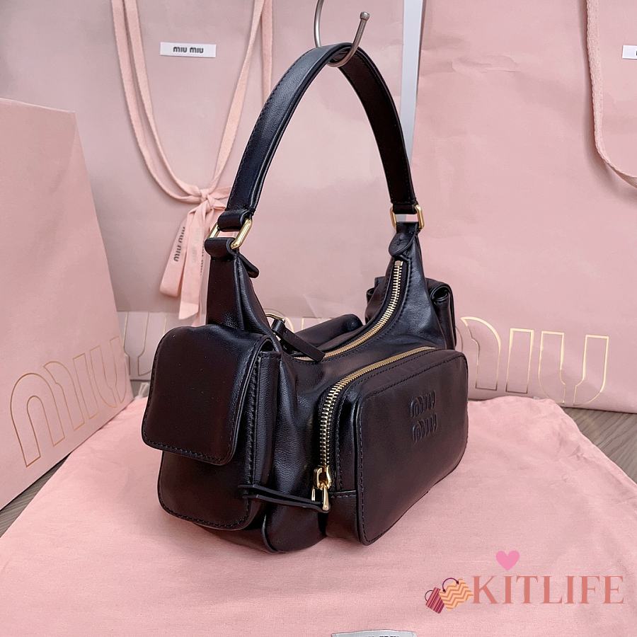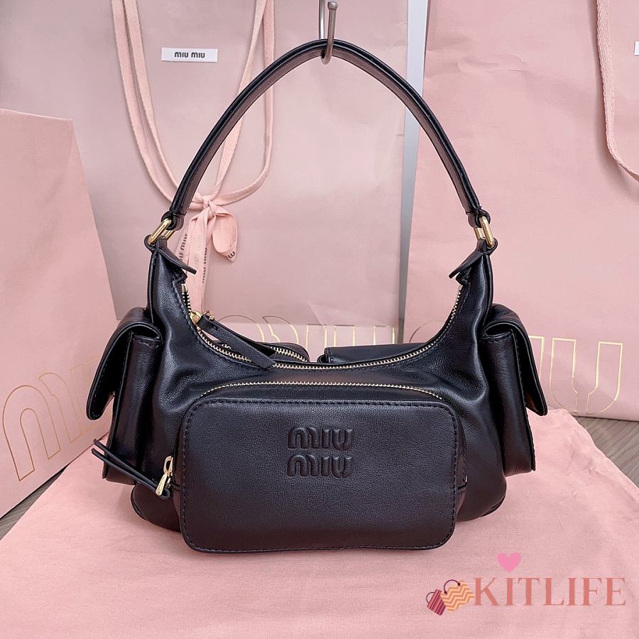 Kitlife Miu Miu Nappa Pocket Bag Black 5BC146 21x12x6cm