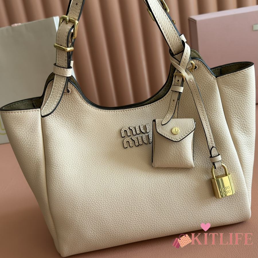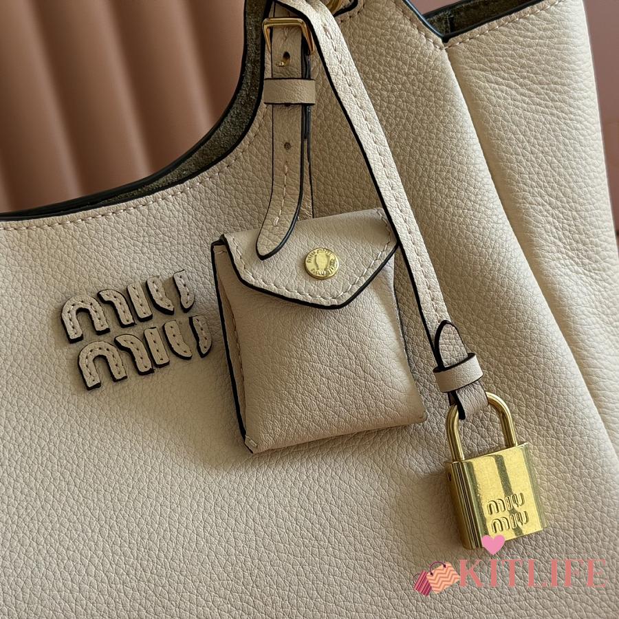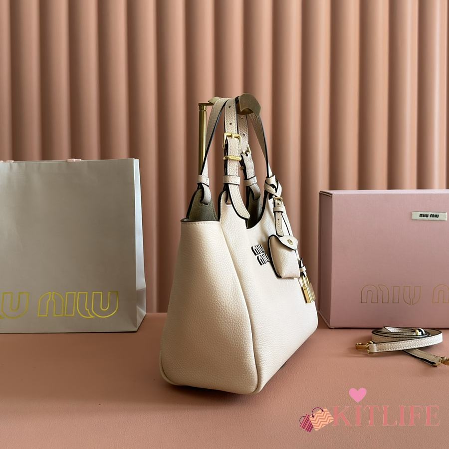 Kitlife Miu Miu Off-White Leather Handbag 5ba304 25.5x20x13cm