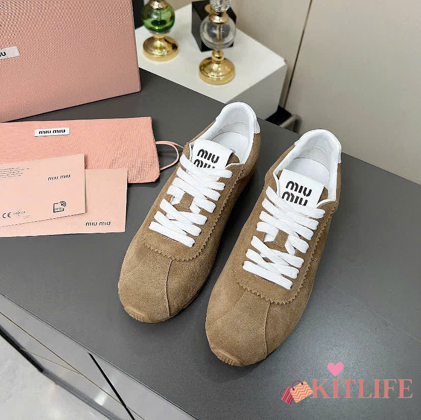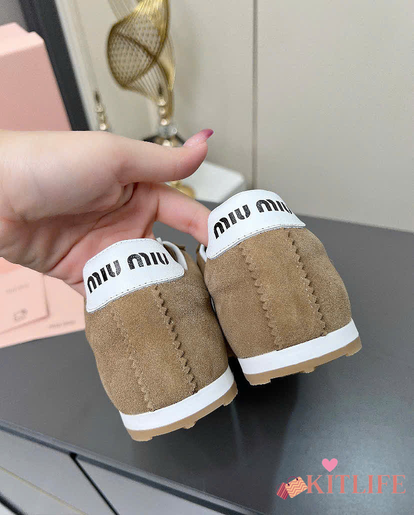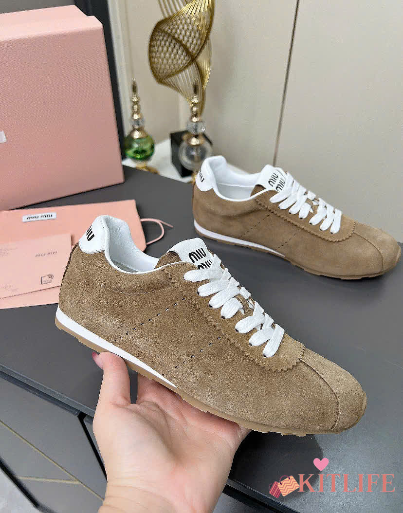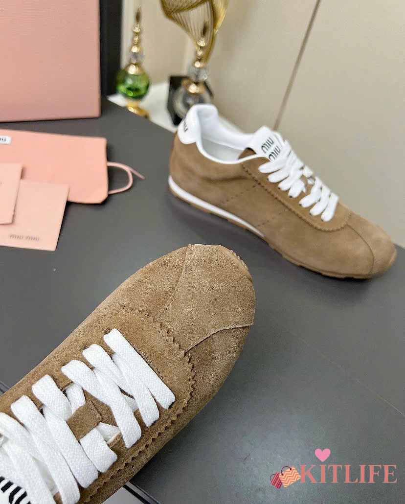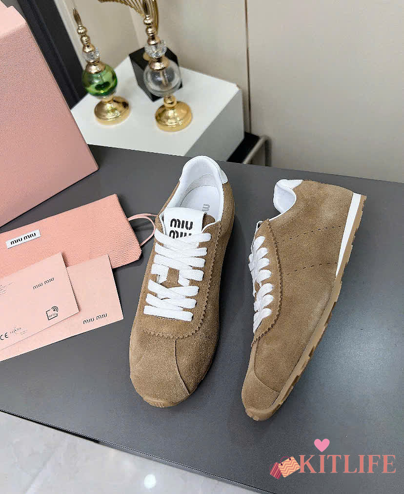 Kitlife Miu Miu Plume Beige Suede Sneakers