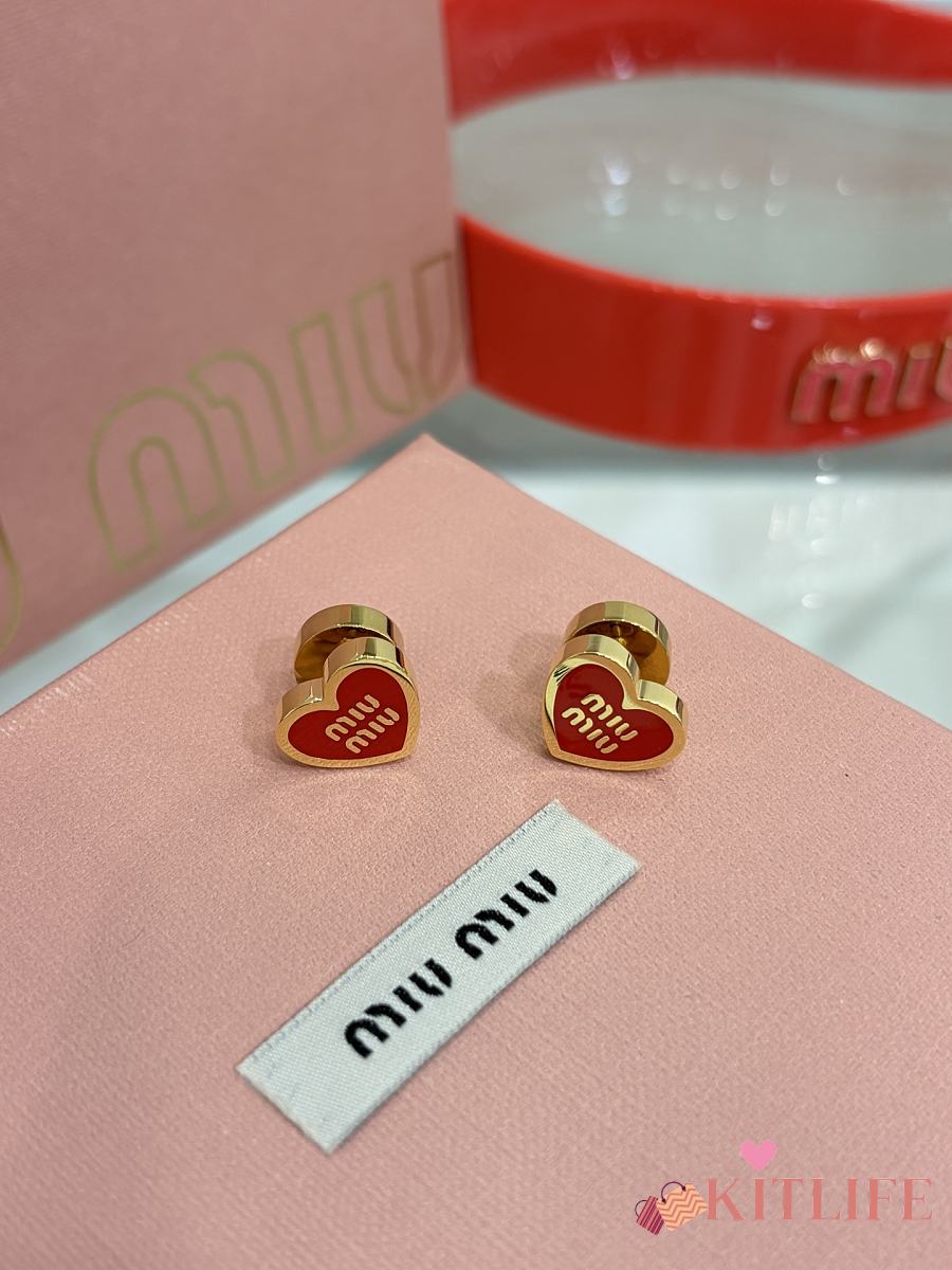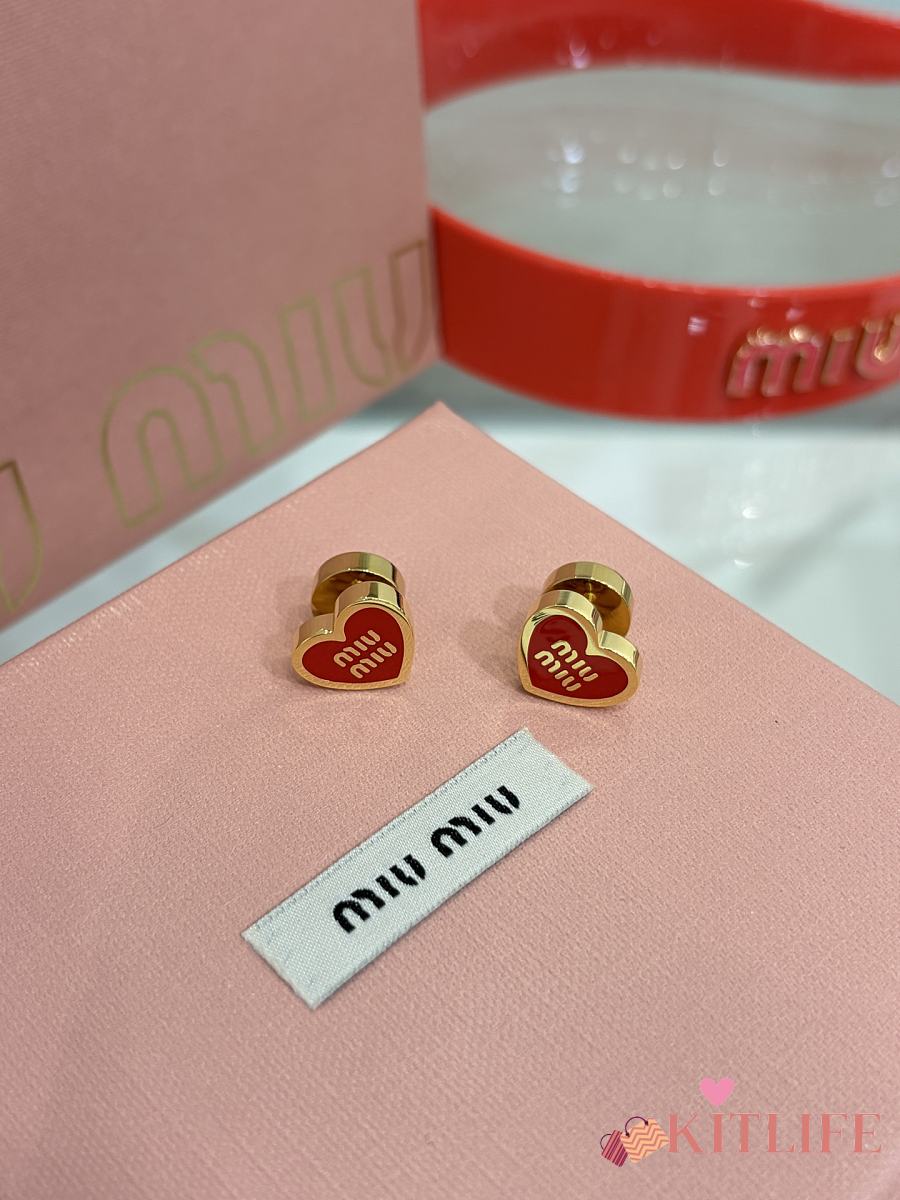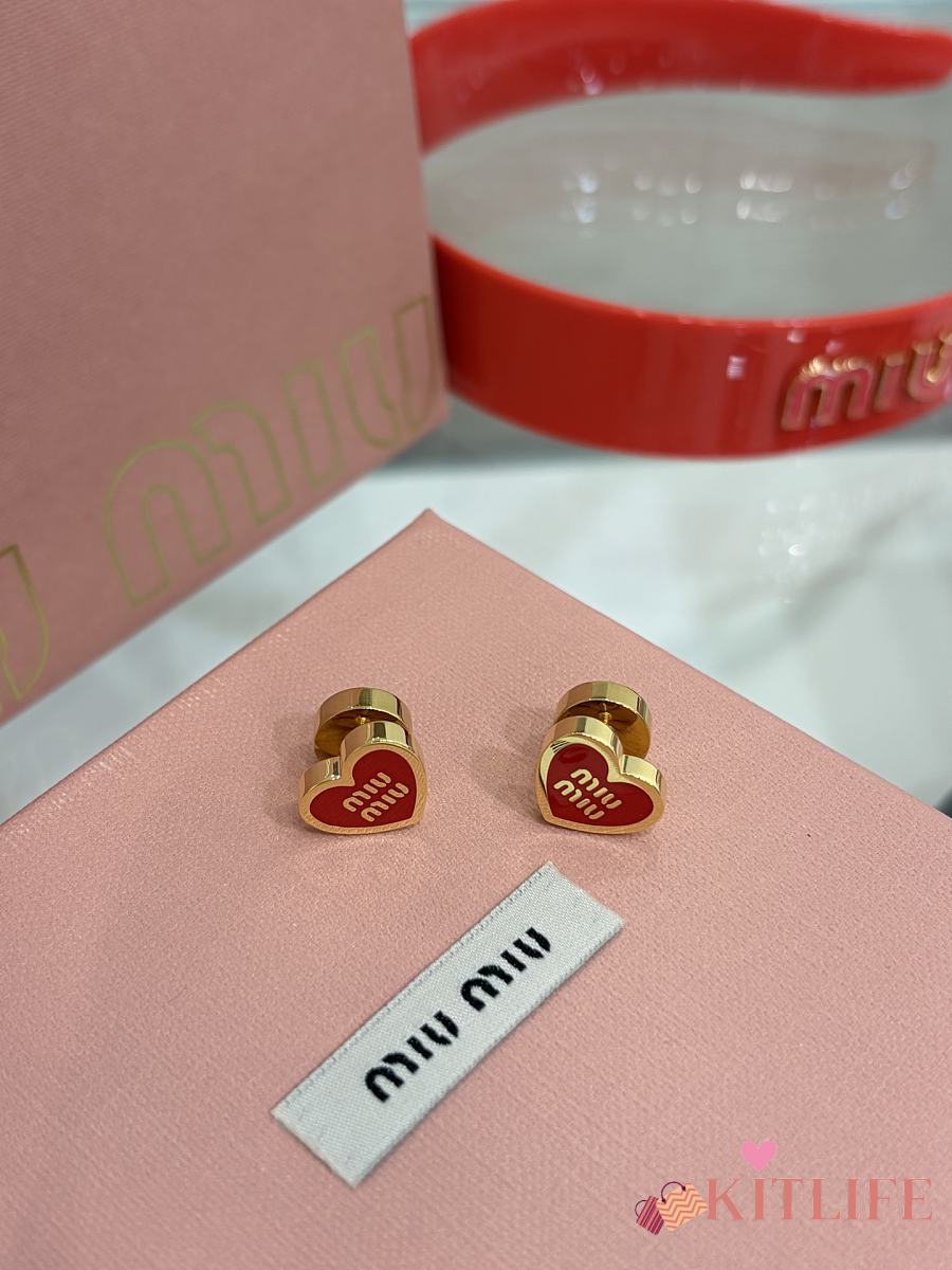 Kitlife Miu Miu Red Enamel Letter Metal Heart Earrings