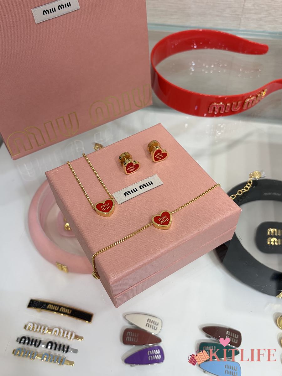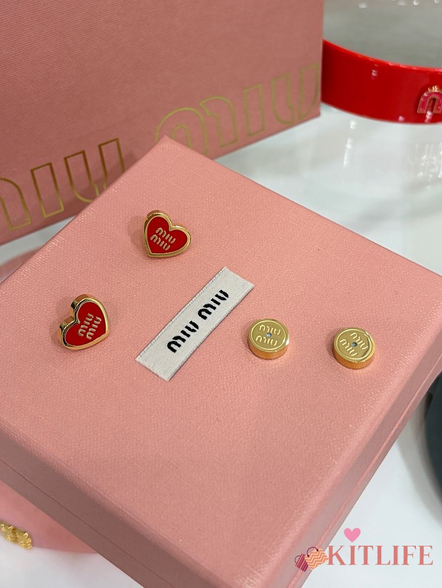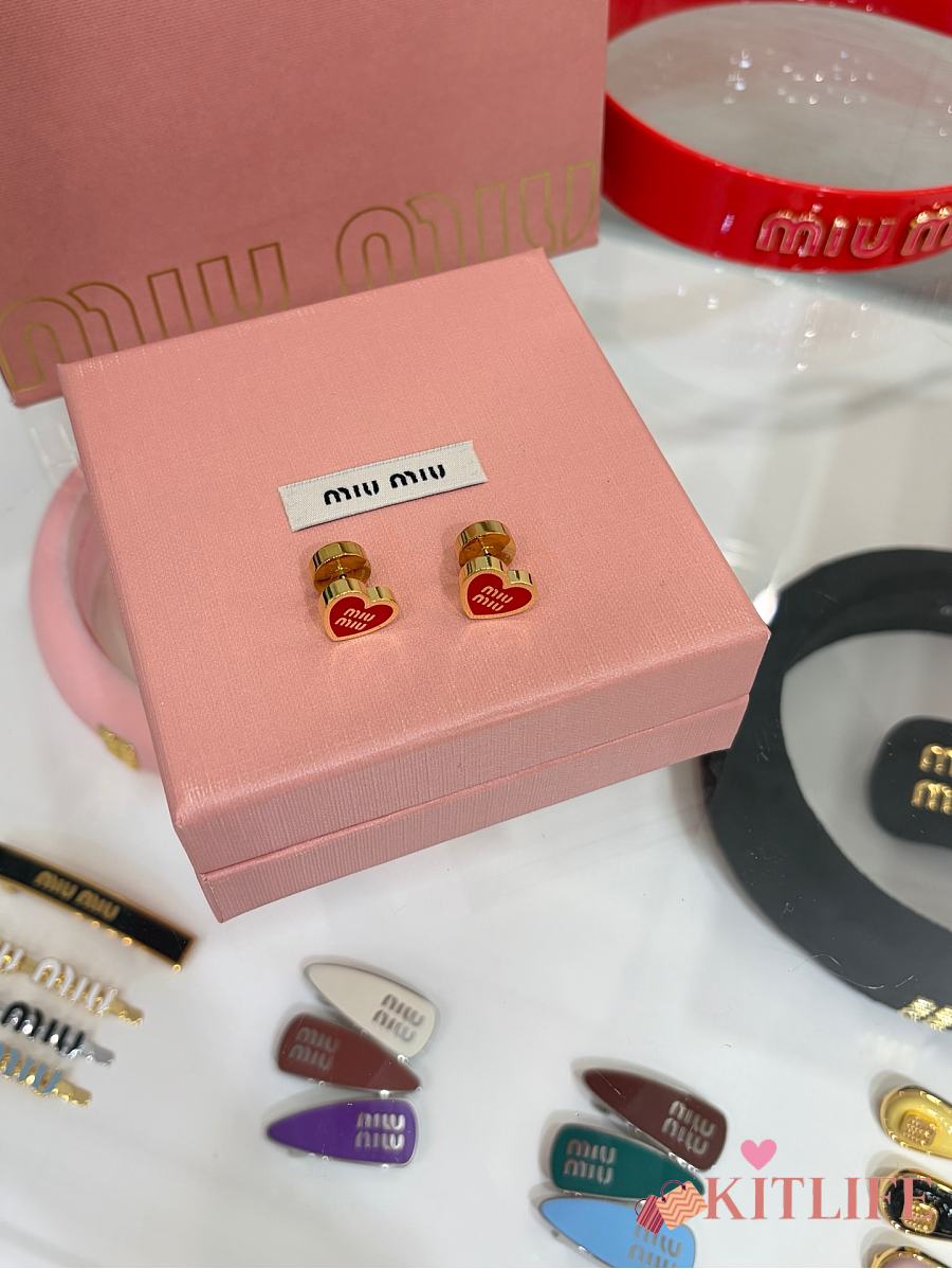 Kitlife Miu Miu Red Enamel Letter Metal Heart Earrings