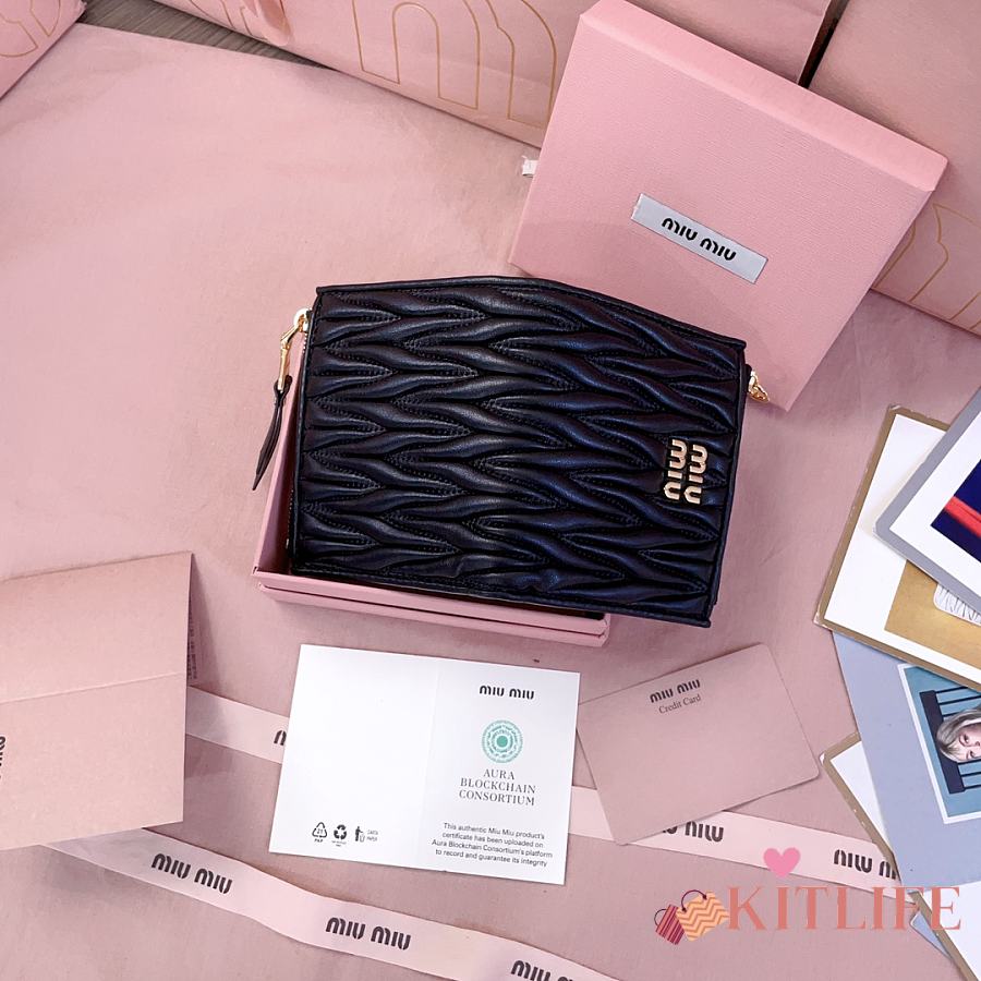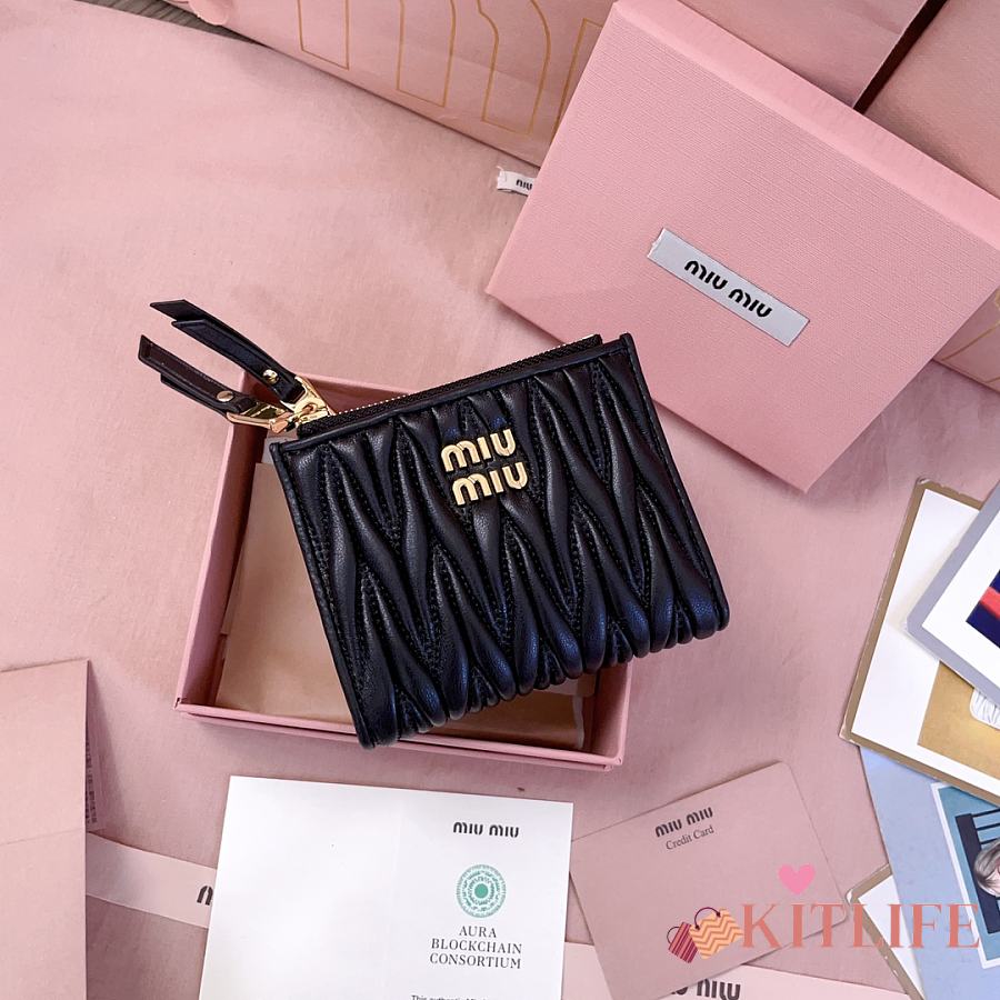Kitlife Miu Miu Two-fold Small Wallet Black 11.5x8cm