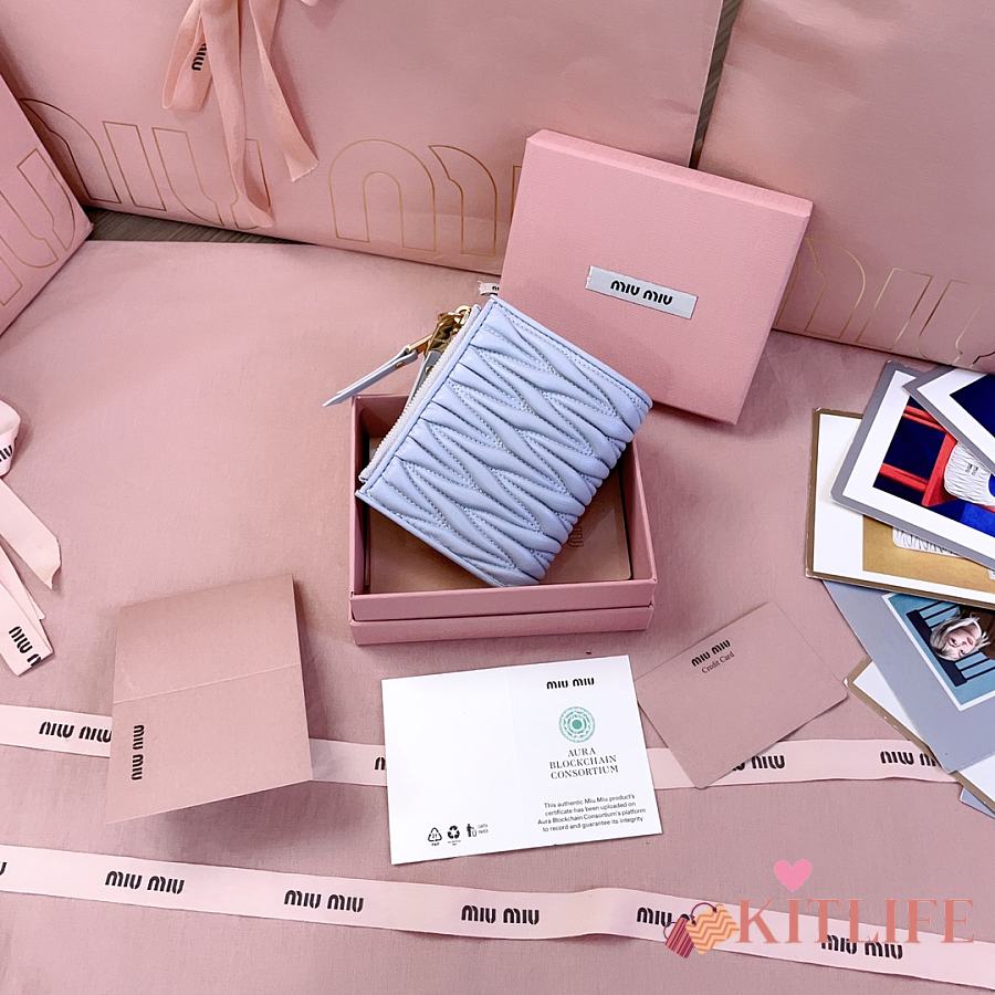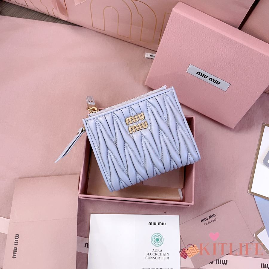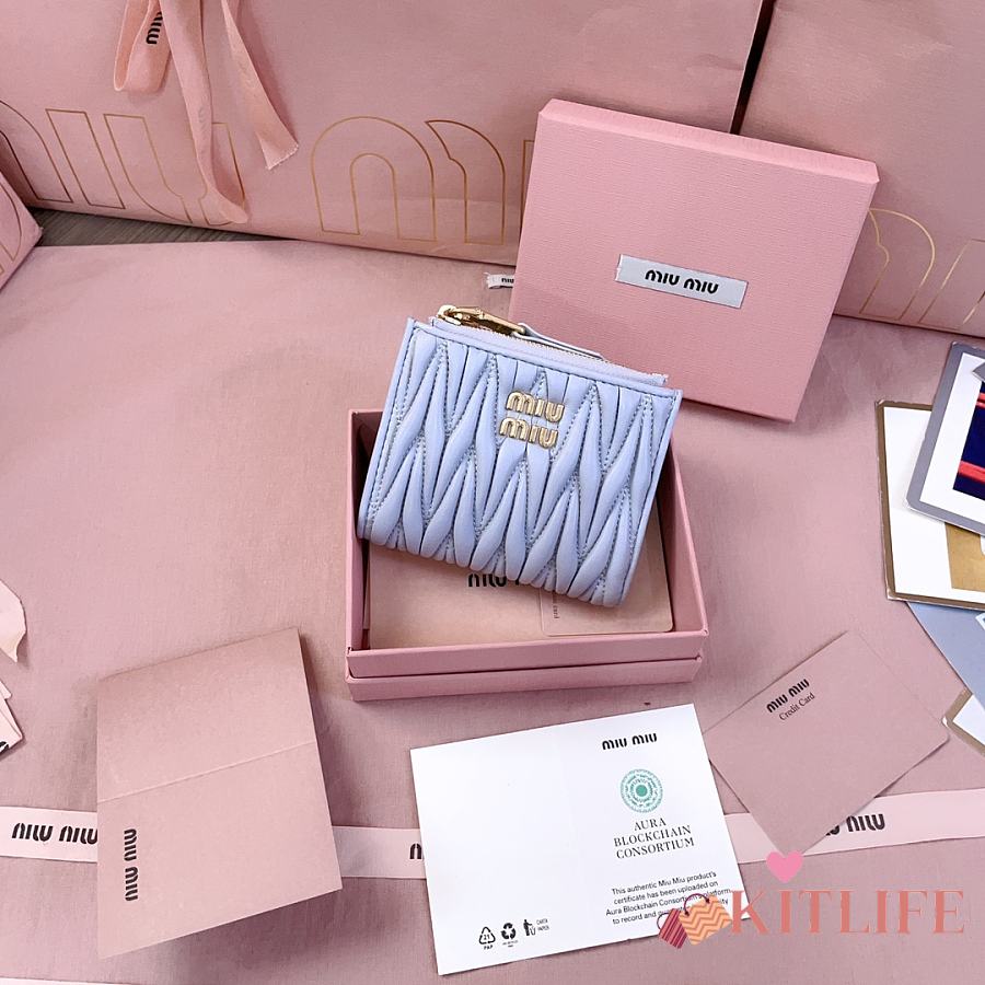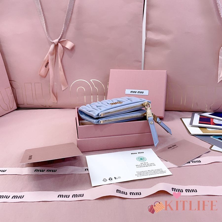 Kitlife Miu Miu Two-fold Small Wallet Blue 11.5x8cm