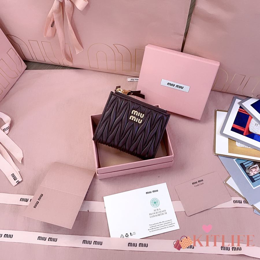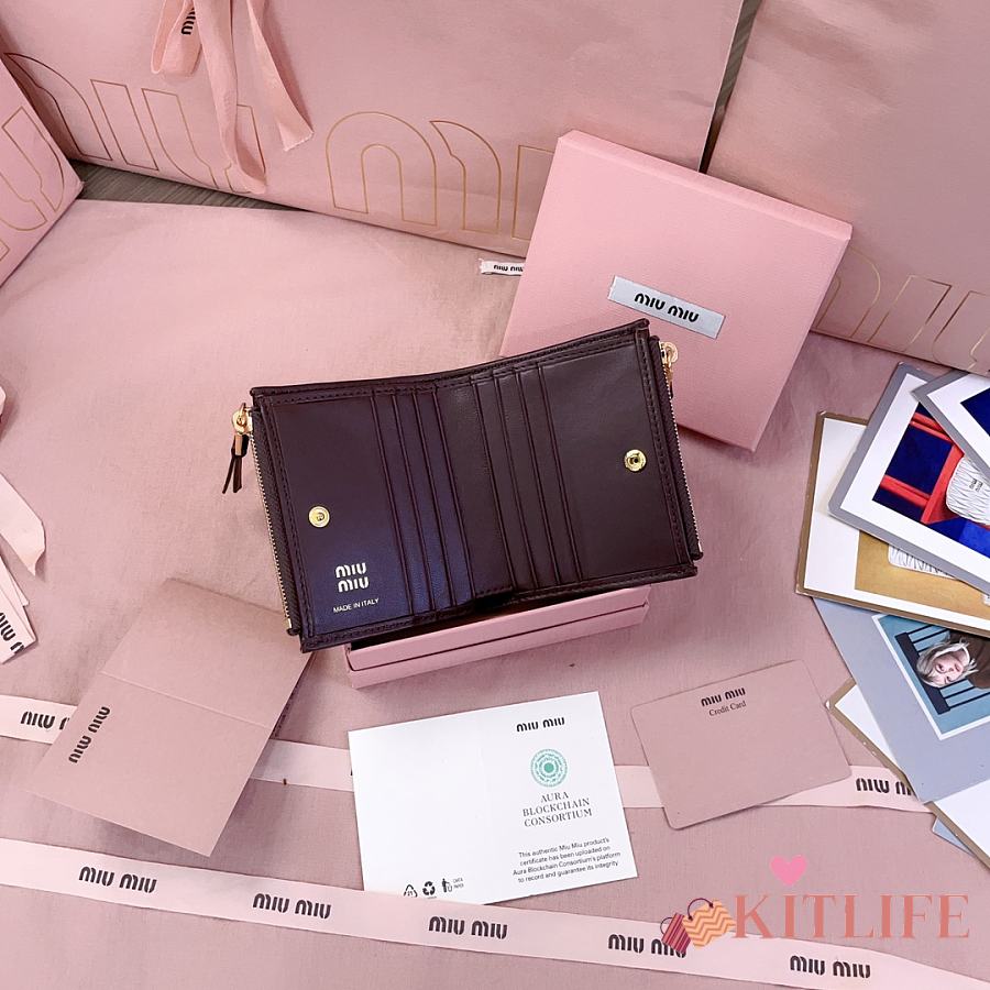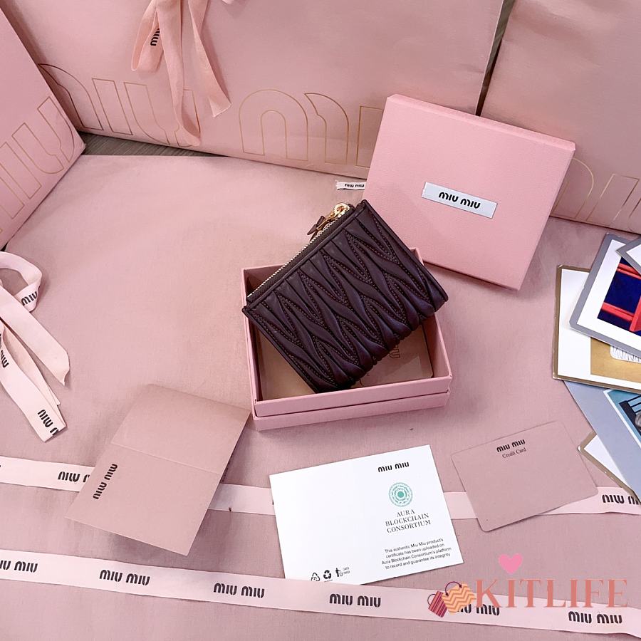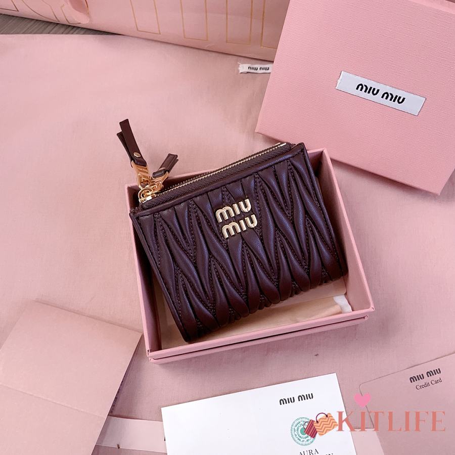 Kitlife Miu Miu Two-fold Small Wallet Dark Brown 11.5x8cm