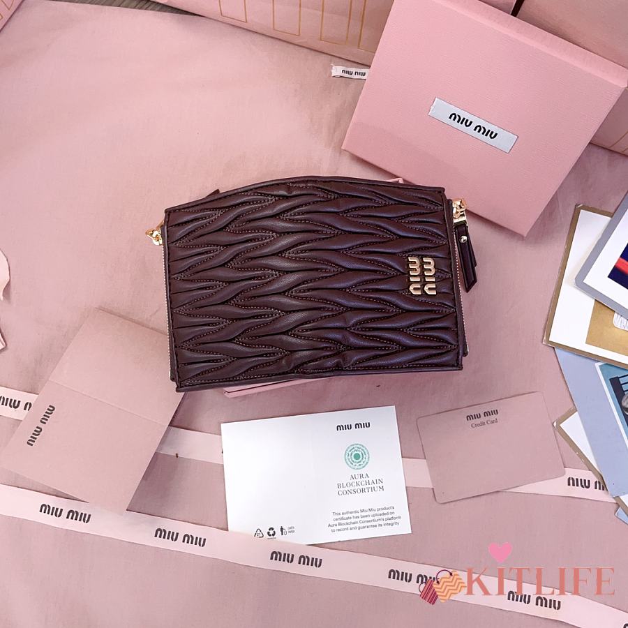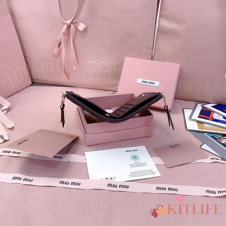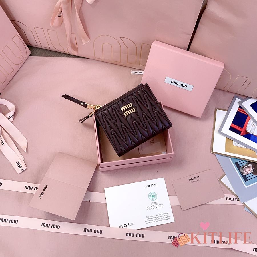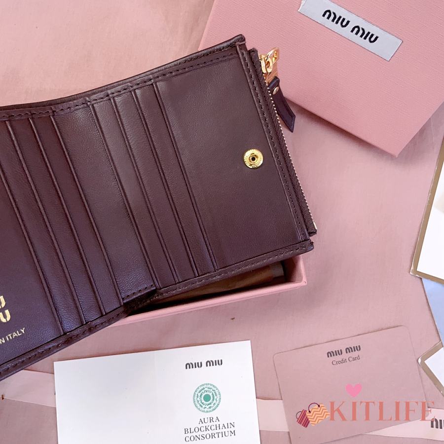 Kitlife Miu Miu Two-fold Small Wallet Dark Brown 11.5x8cm
