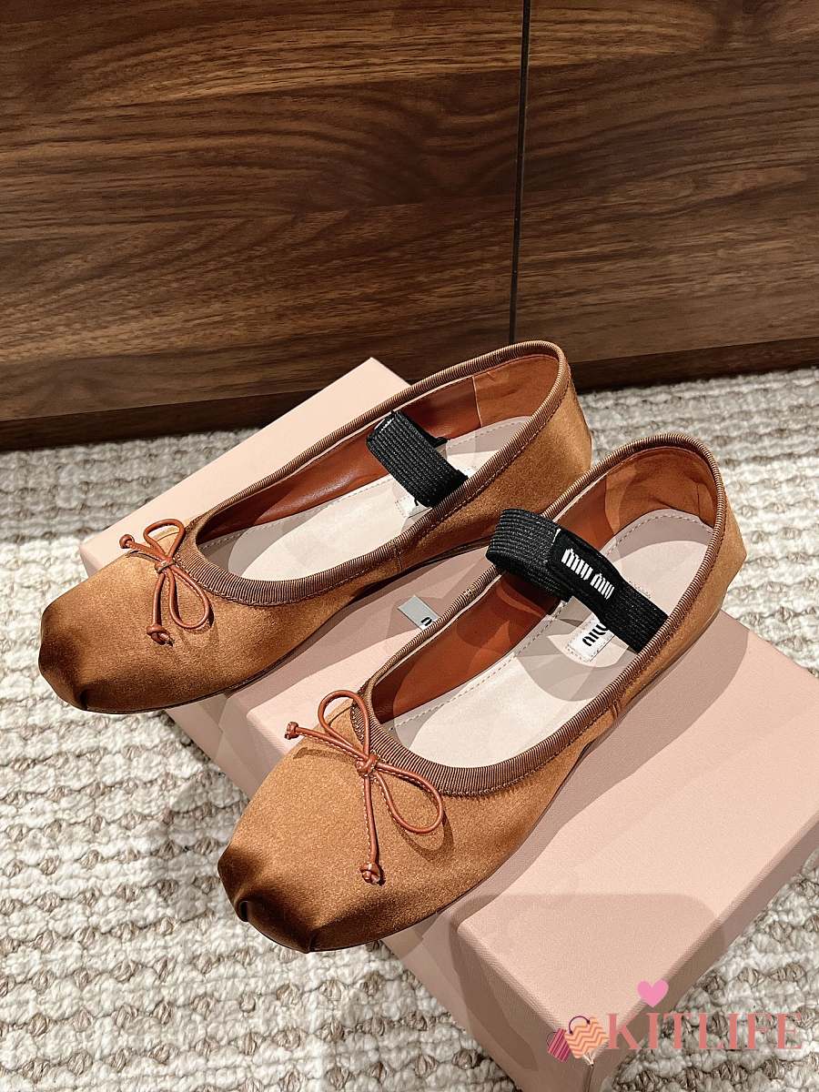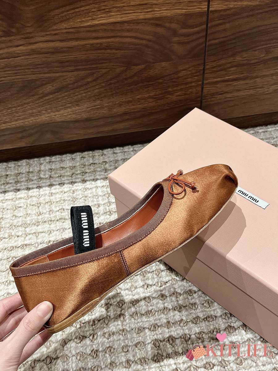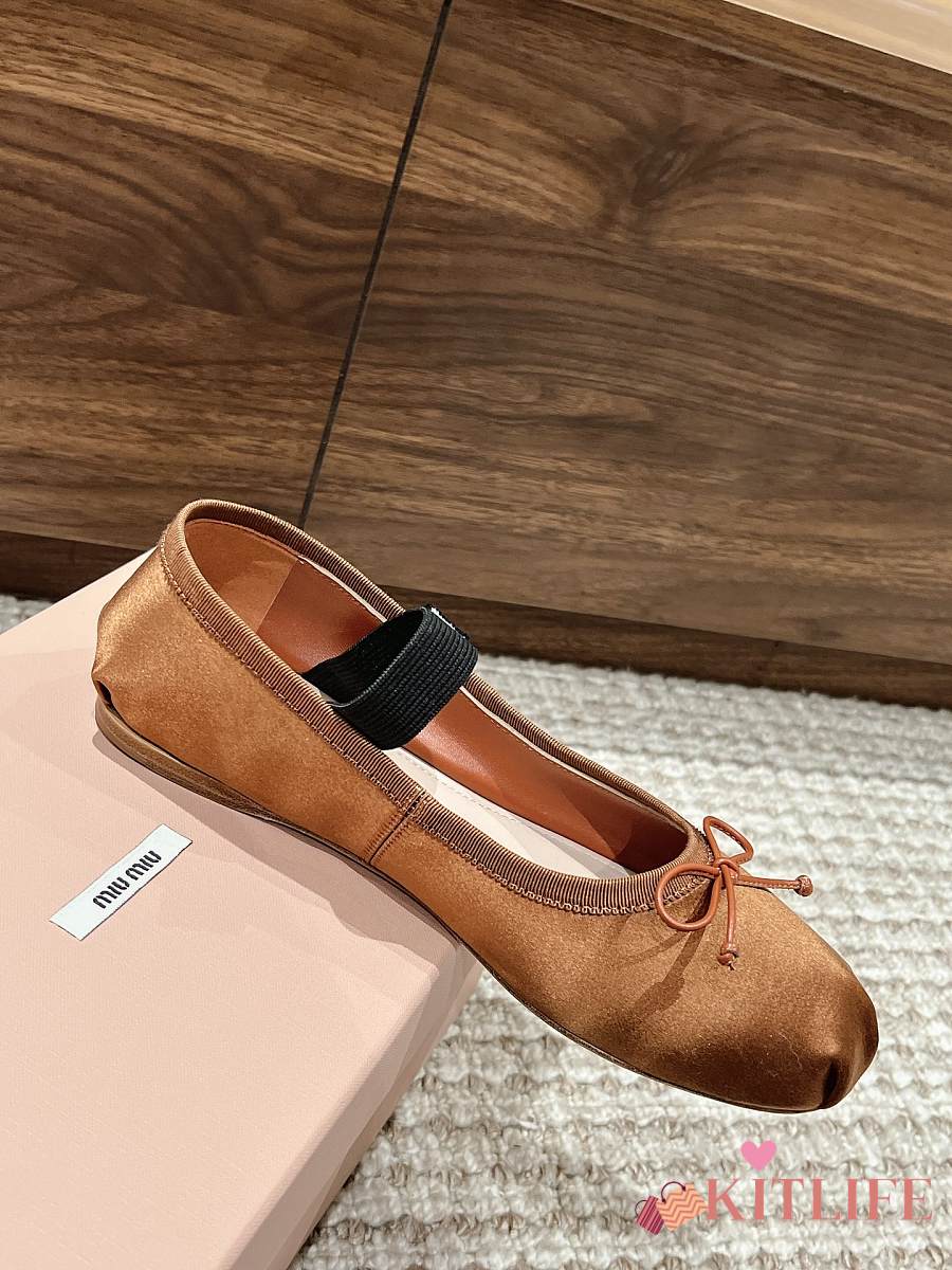 Kitlife Miu Miu Women's Brown Satin Ballerina Strap Flats