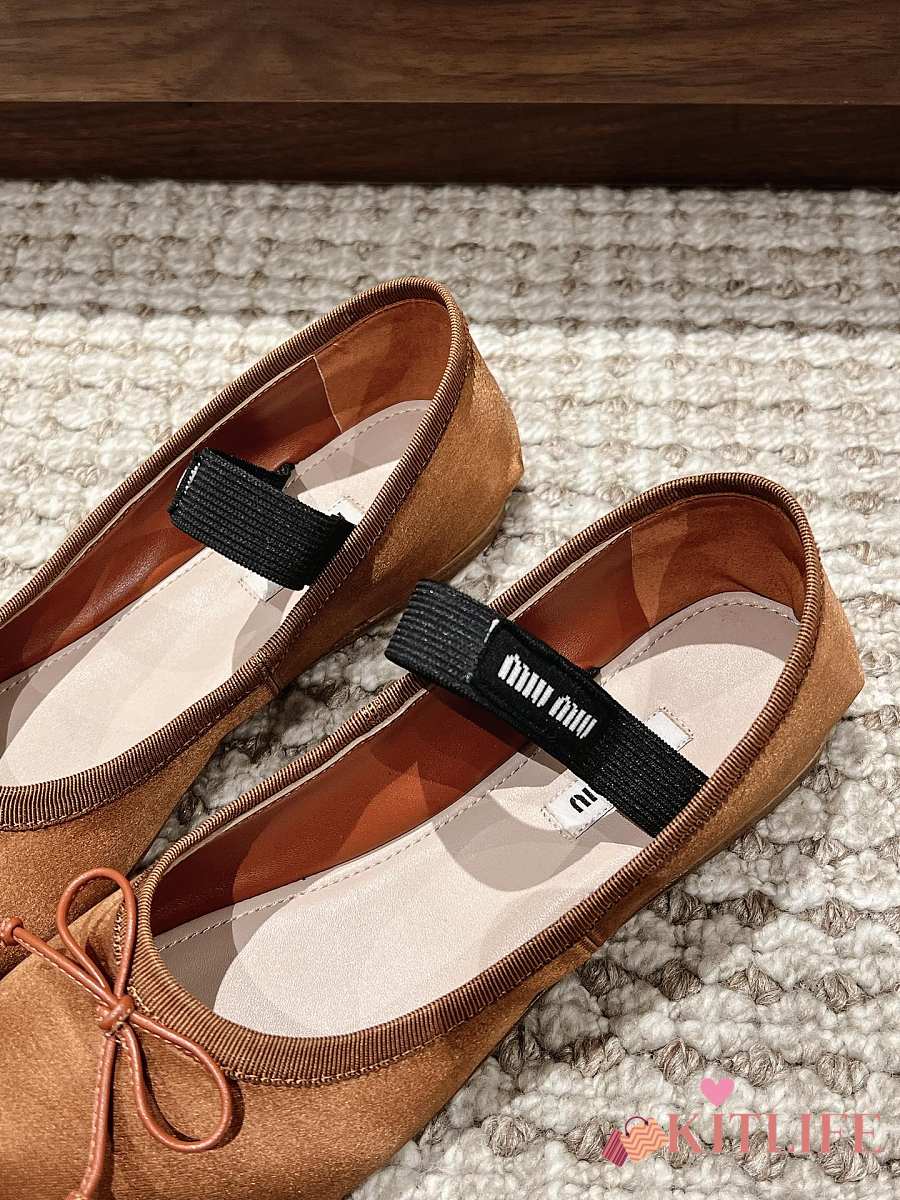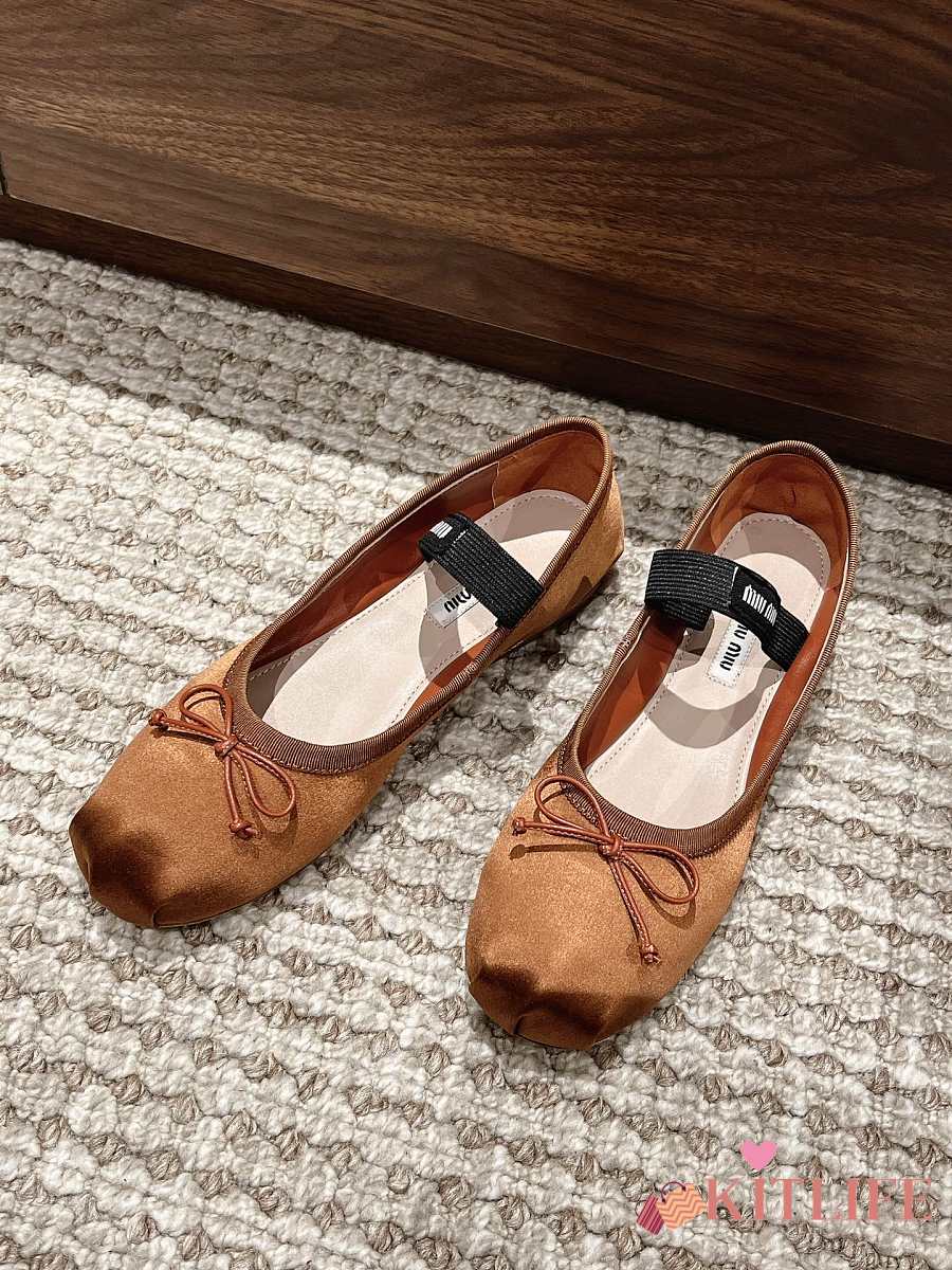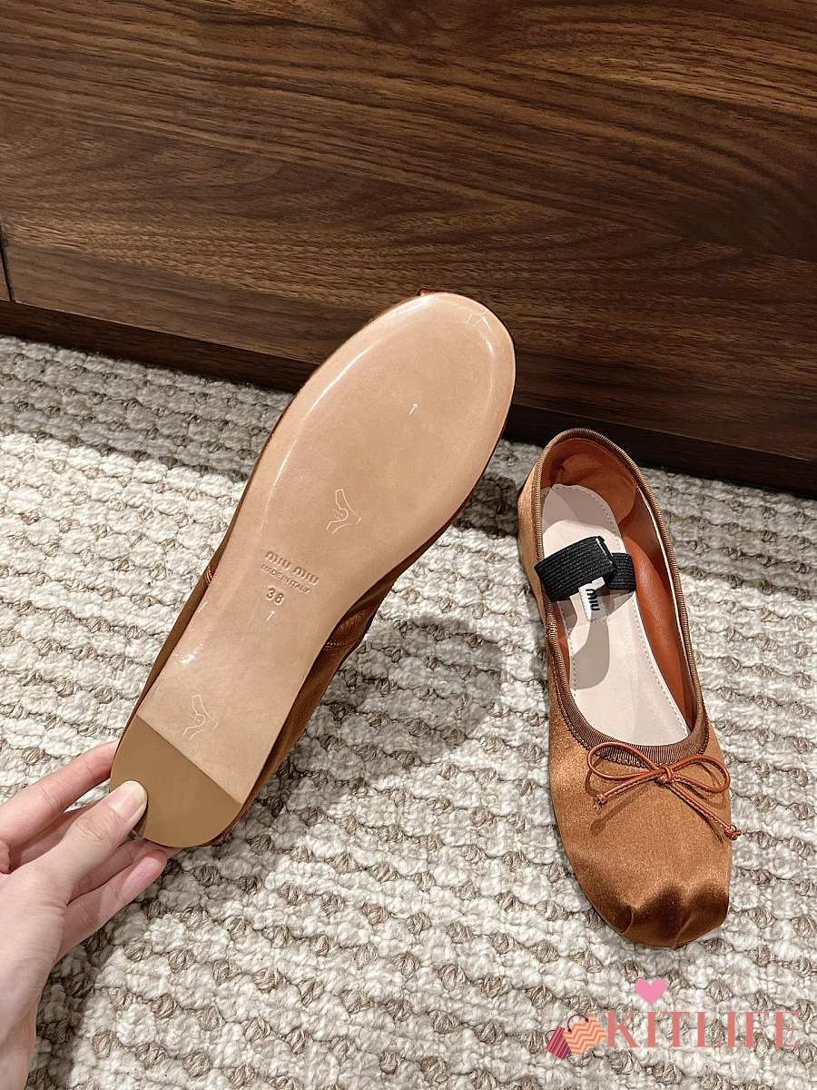 Kitlife Miu Miu Women's Brown Satin Ballerina Strap Flats