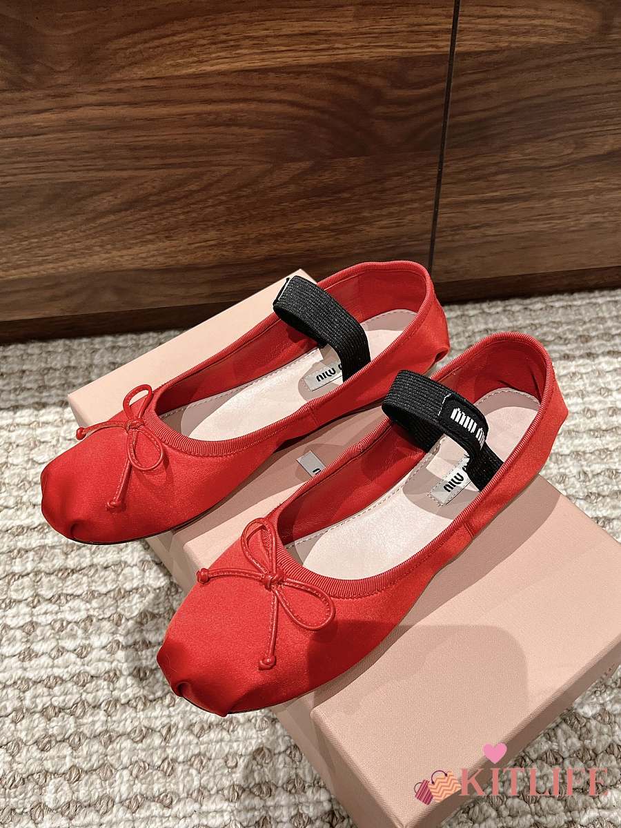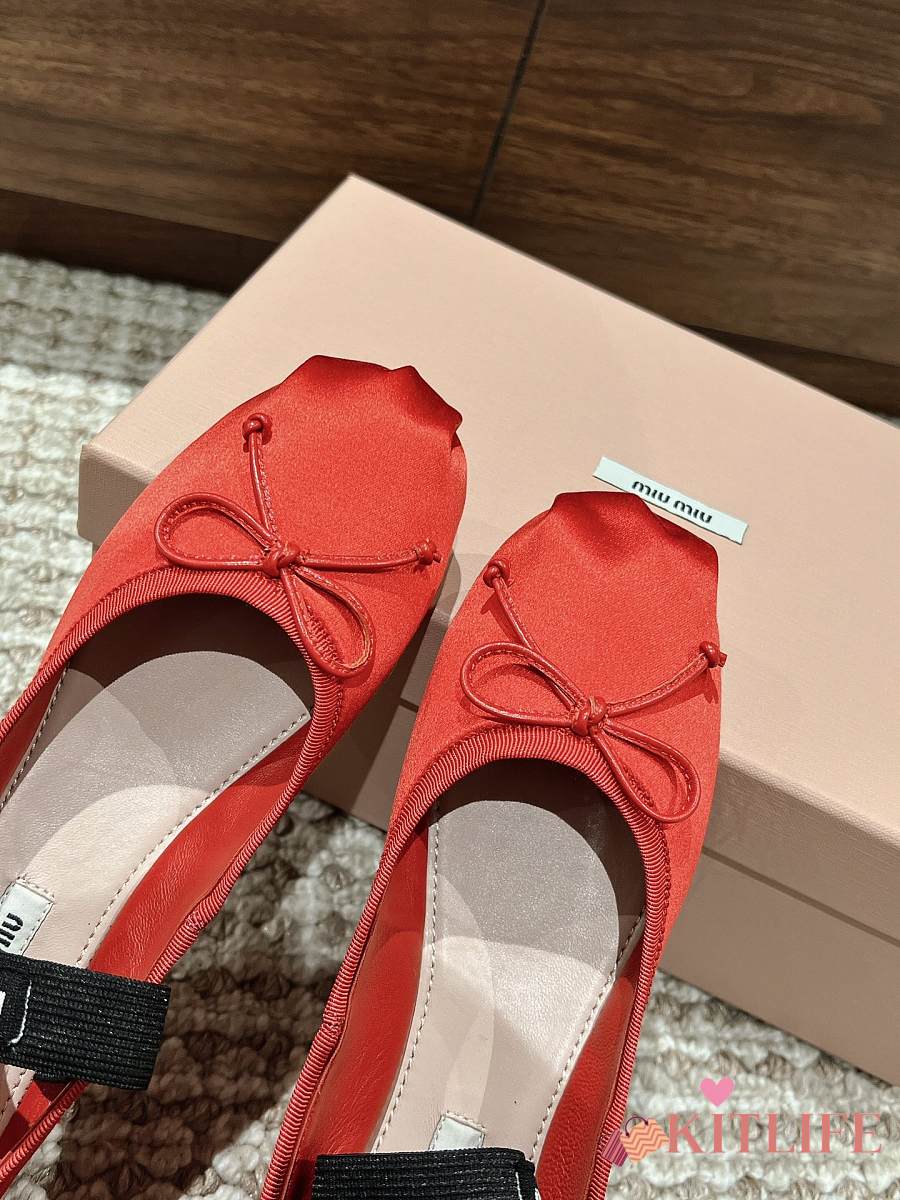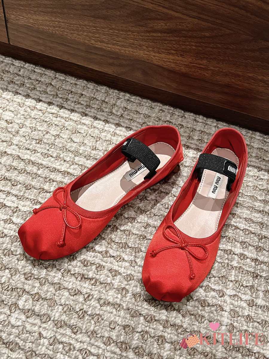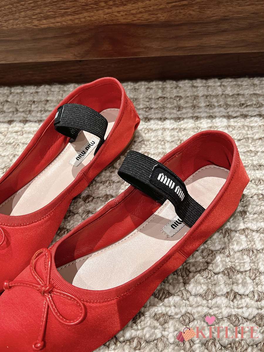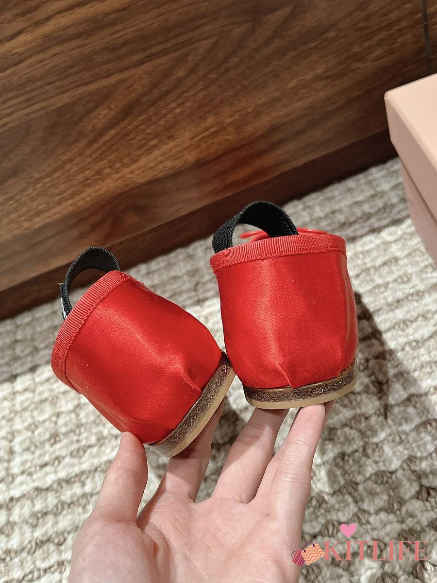 Kitlife Miu Miu Women's Red Satin Ballerina Strap Flats