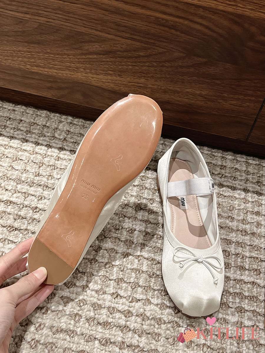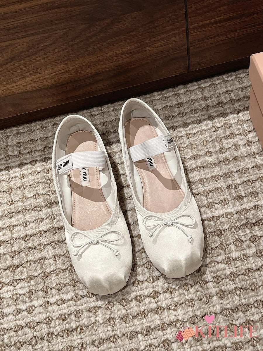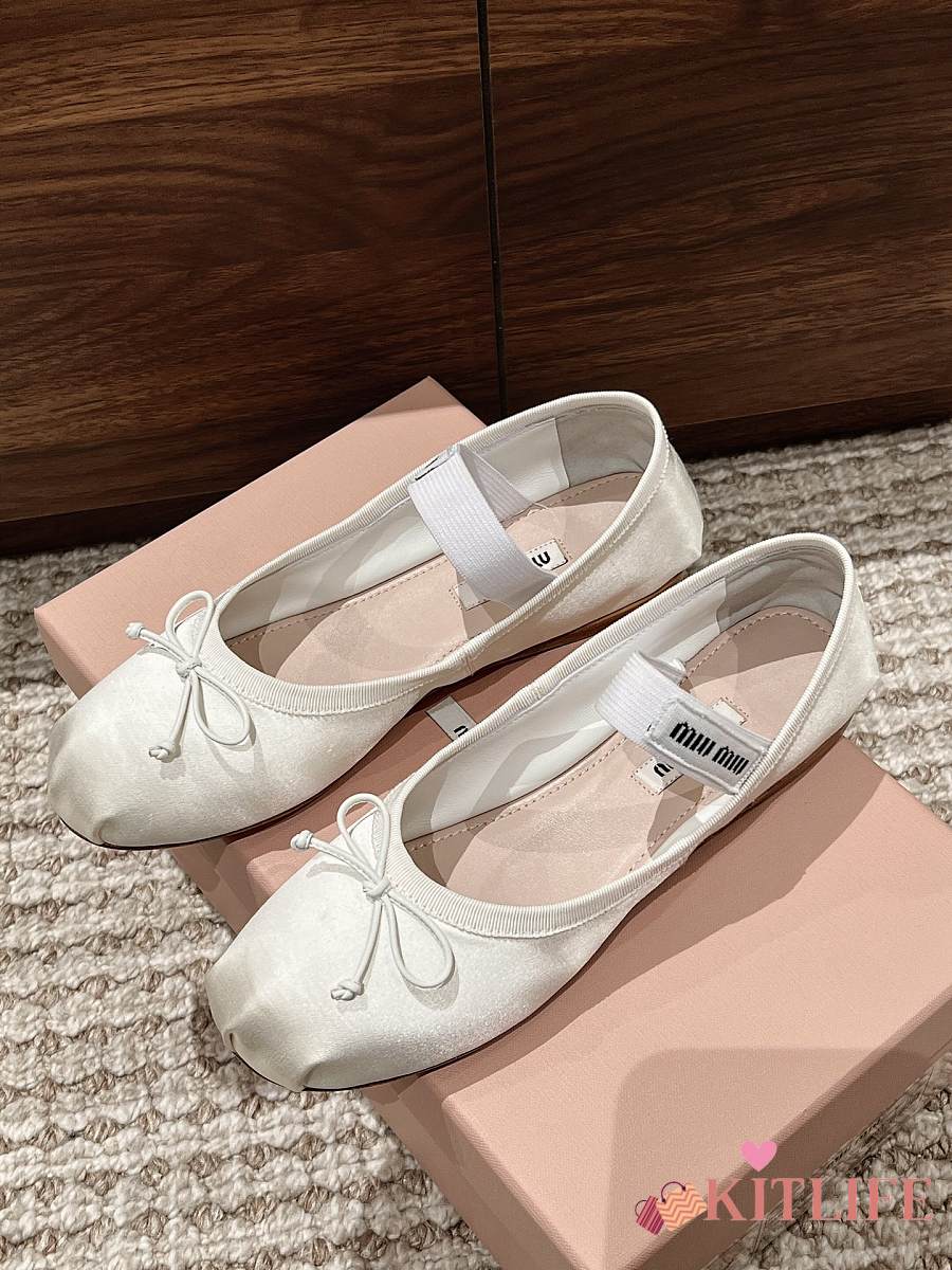 Kitlife Miu Miu Women's White Satin Ballerina Strap Flats
