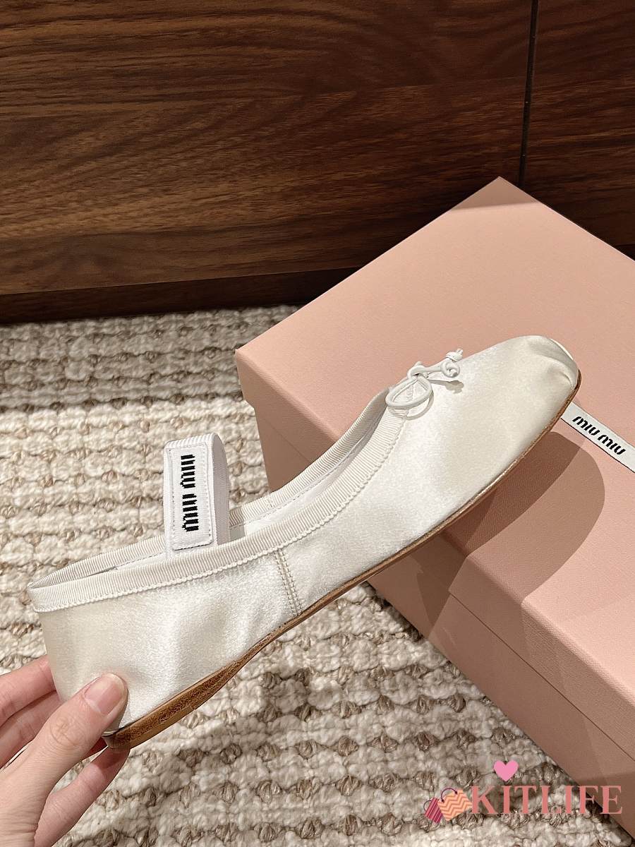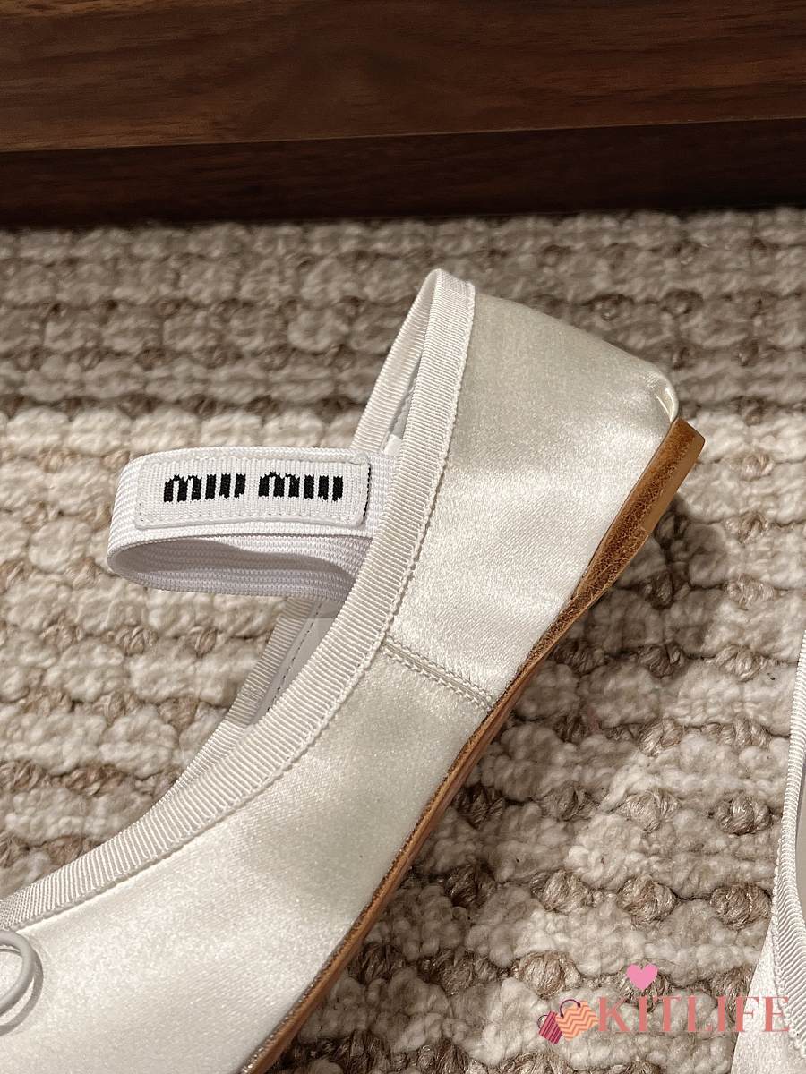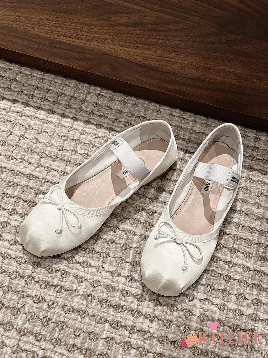 Kitlife Miu Miu Women's White Satin Ballerina Strap Flats