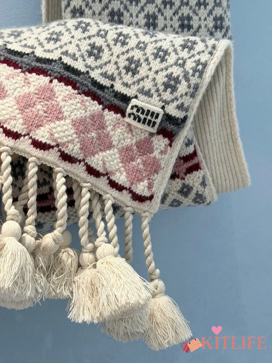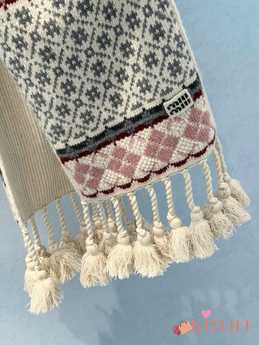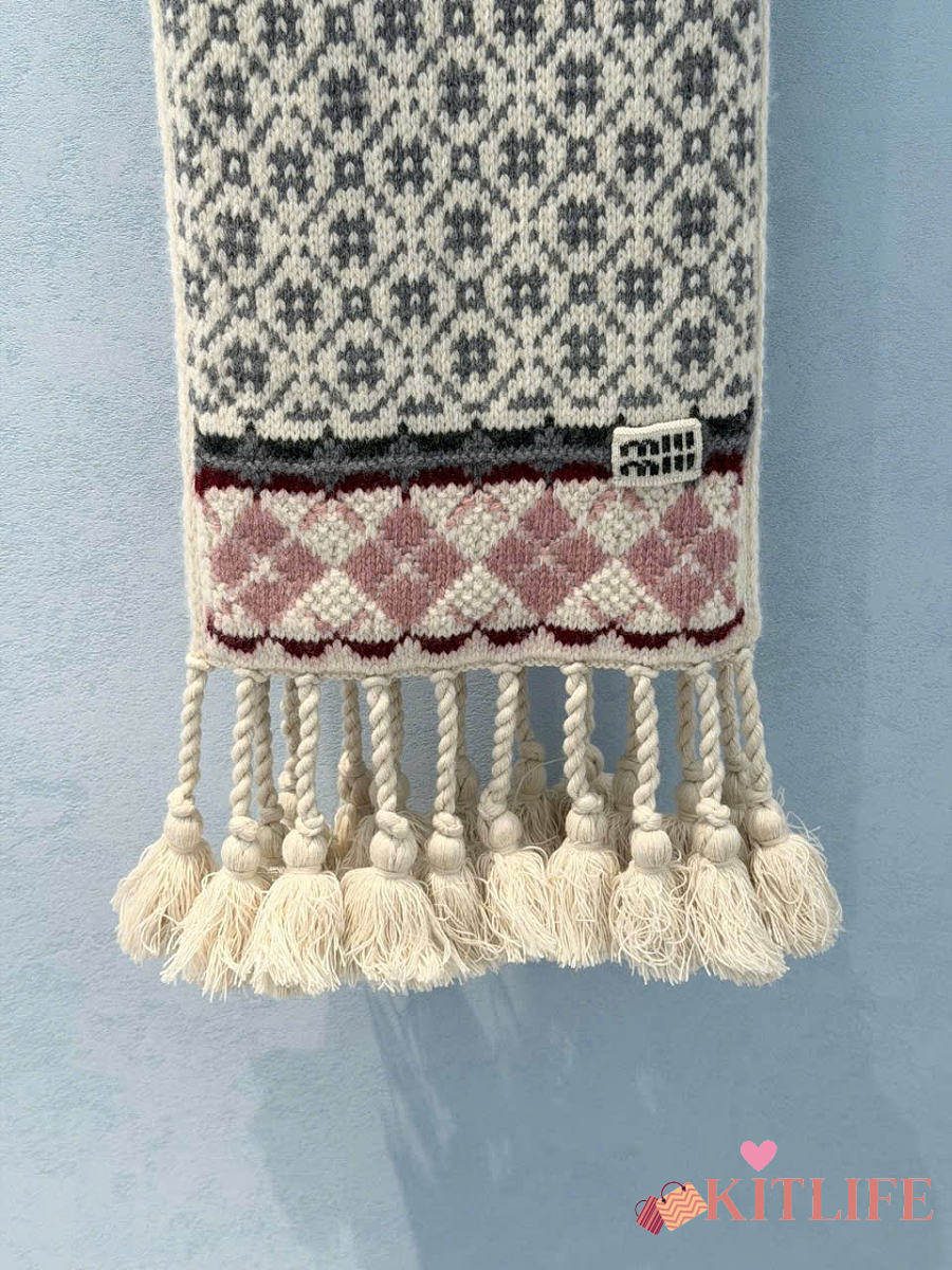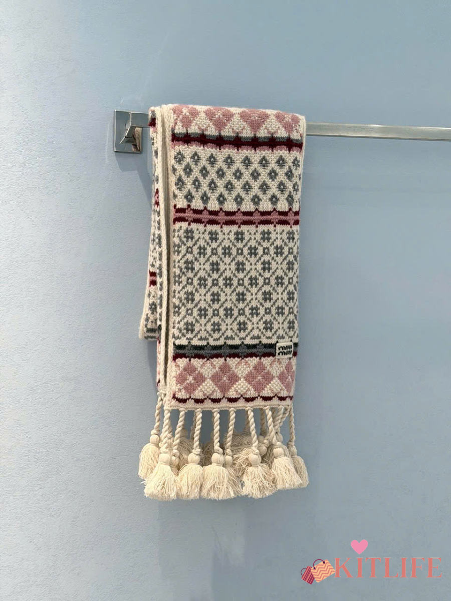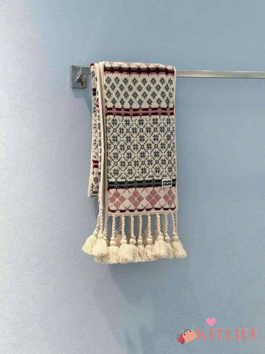 Kitlife Miu Miu Wool And Cashmere Scarf Talc/Pink 160x22cm