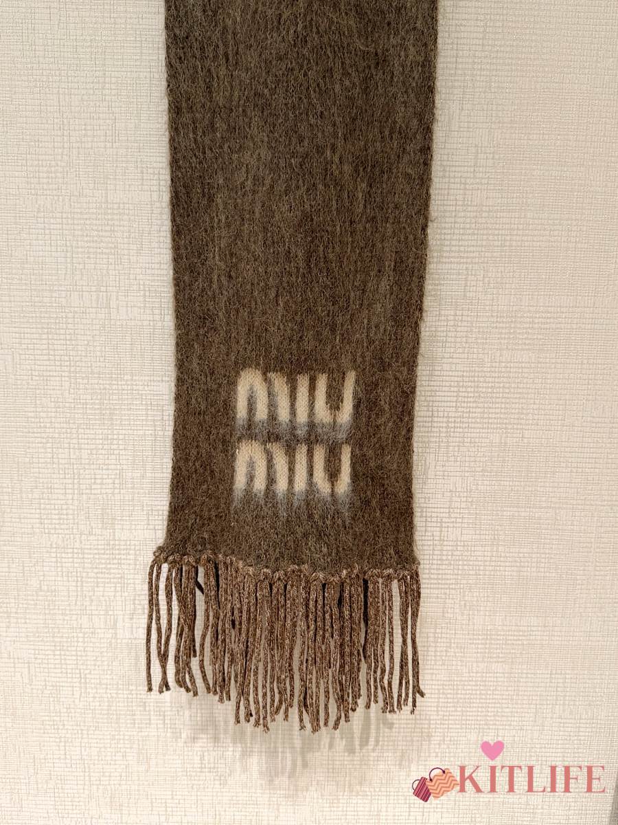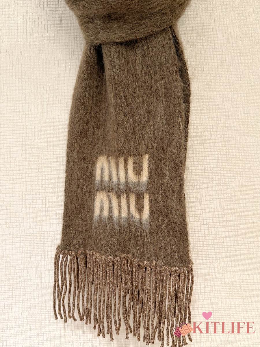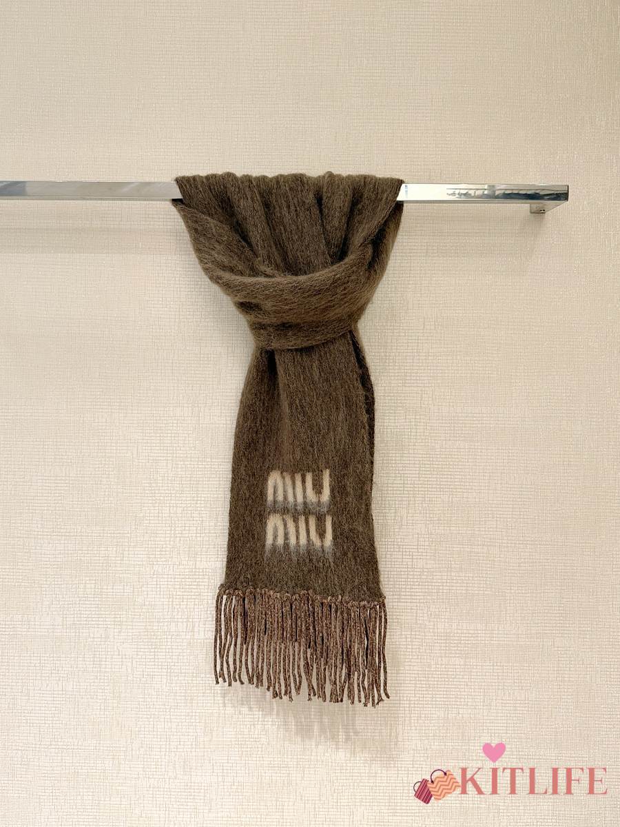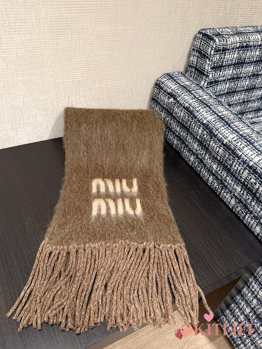 Kitlife Miu Miu Wool and Mohair Scarf Brown 185x23cm