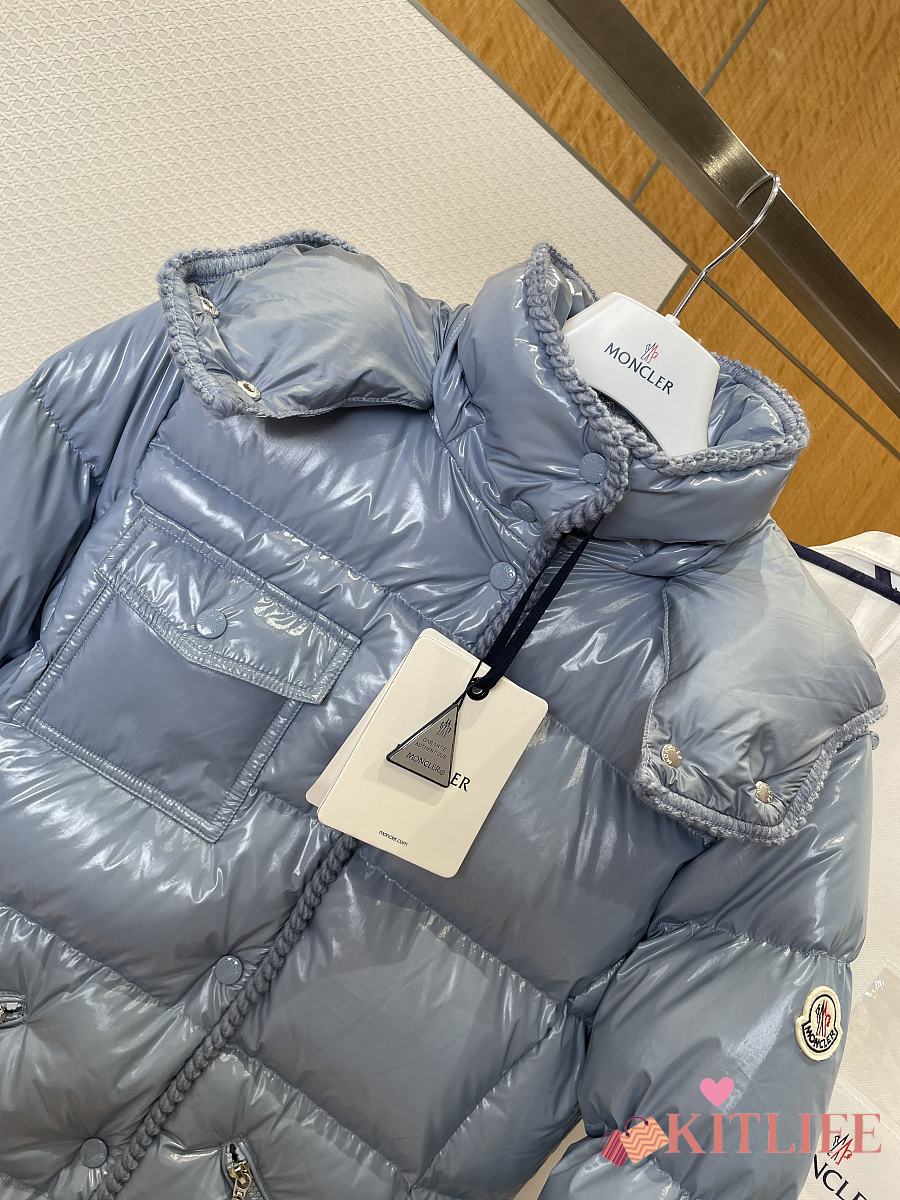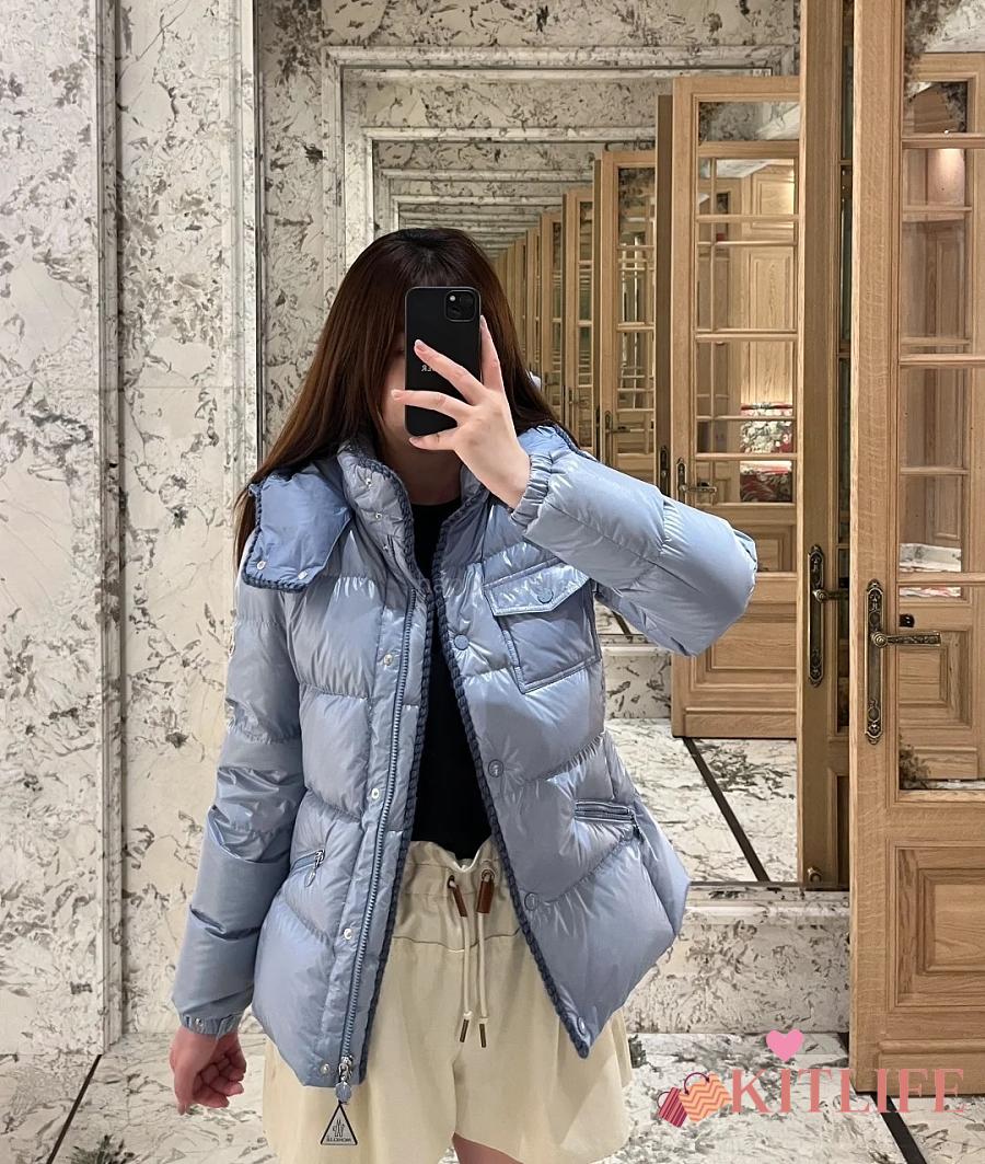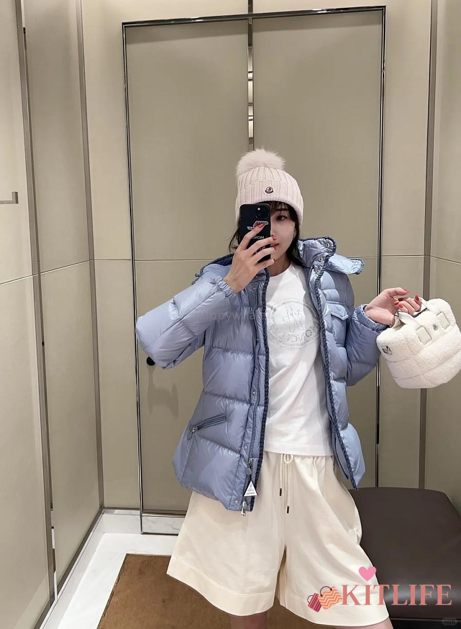 Kitlife Moncler Glareins Braided Trim Hooded Short Down Jacket Blue