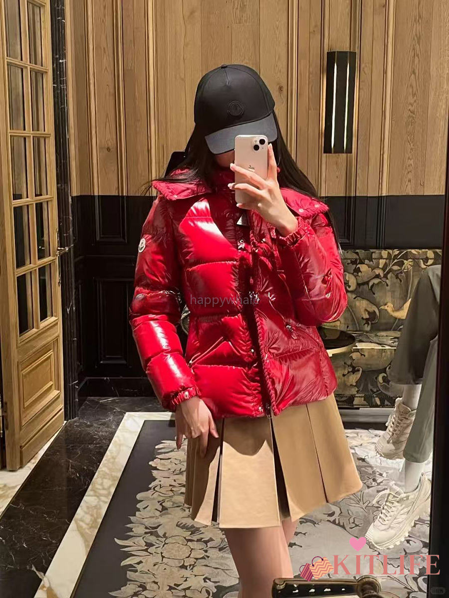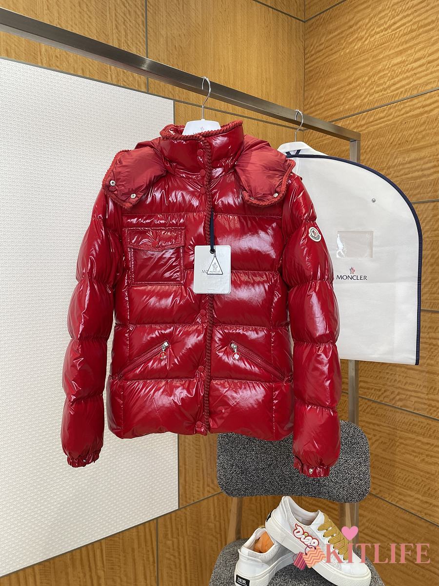 Kitlife Moncler Glareins Braided Trim Hooded Short Down Jacket Red