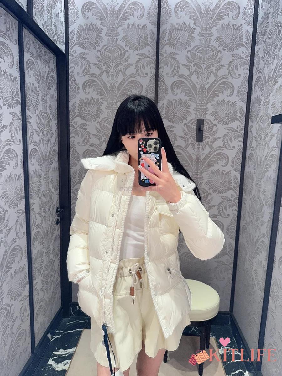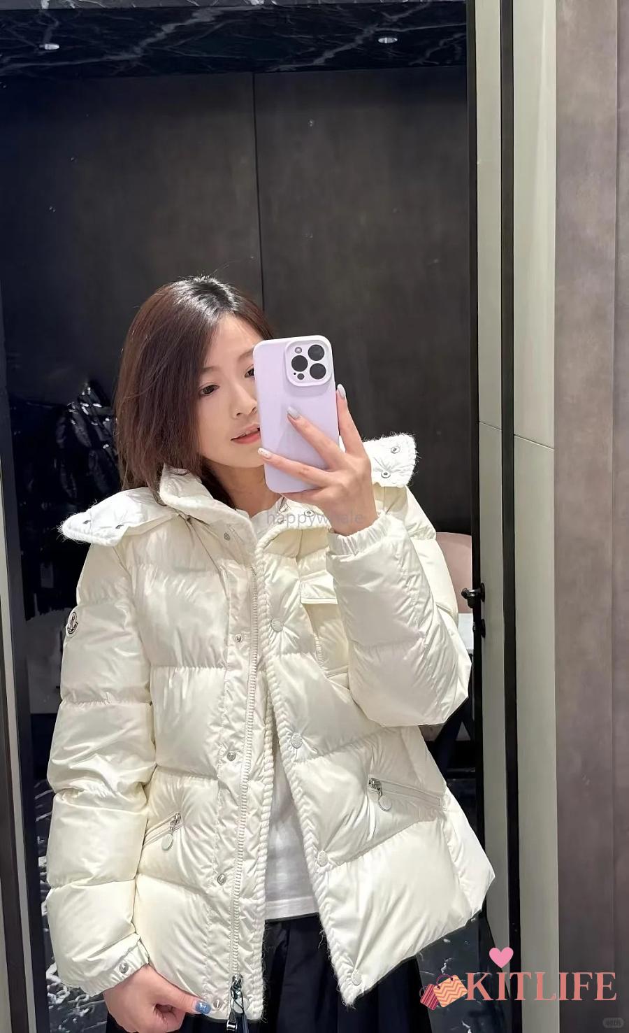 Kitlife Moncler Glareins Braided Trim Hooded Short Down Jacket White
