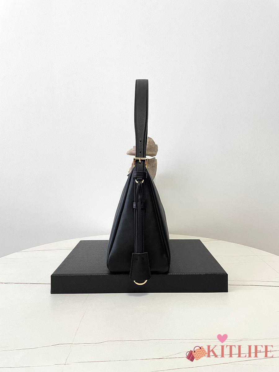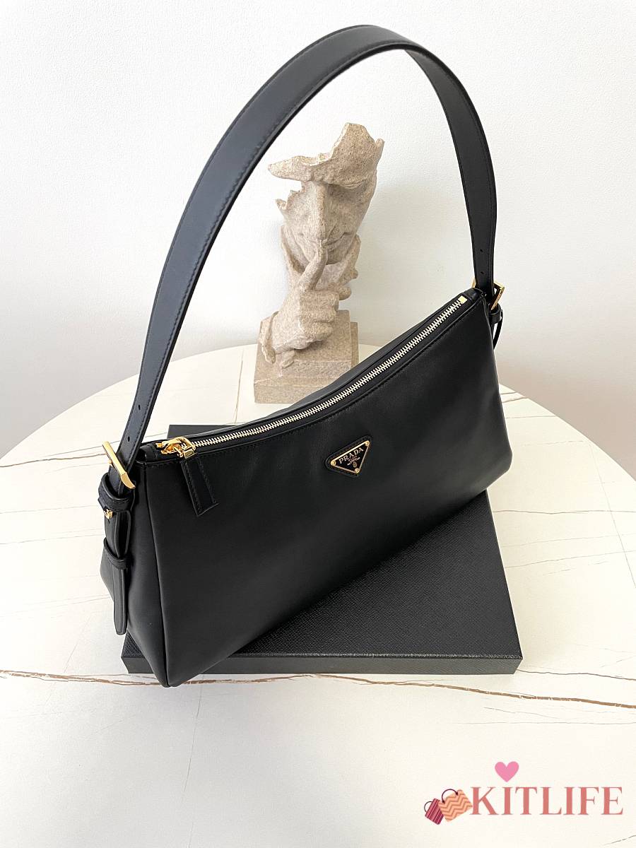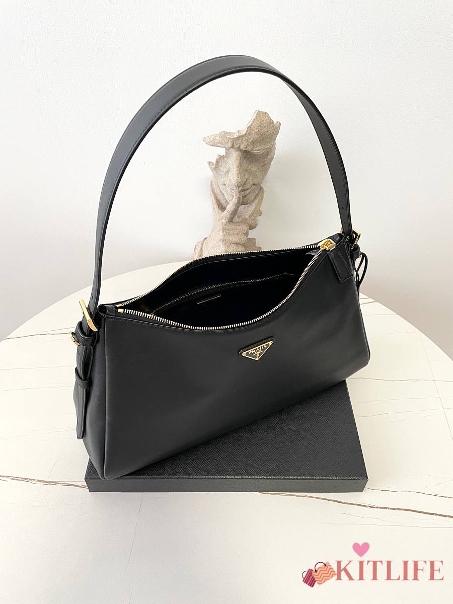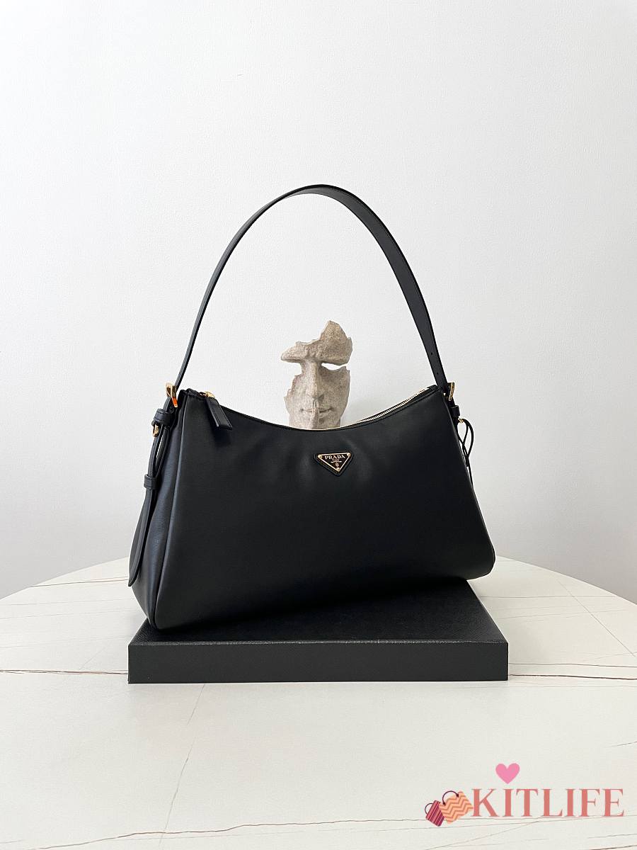 Kitlife Prada Aimée Large Black Leather Shoulder Bag 1BC228 39×23×12cm