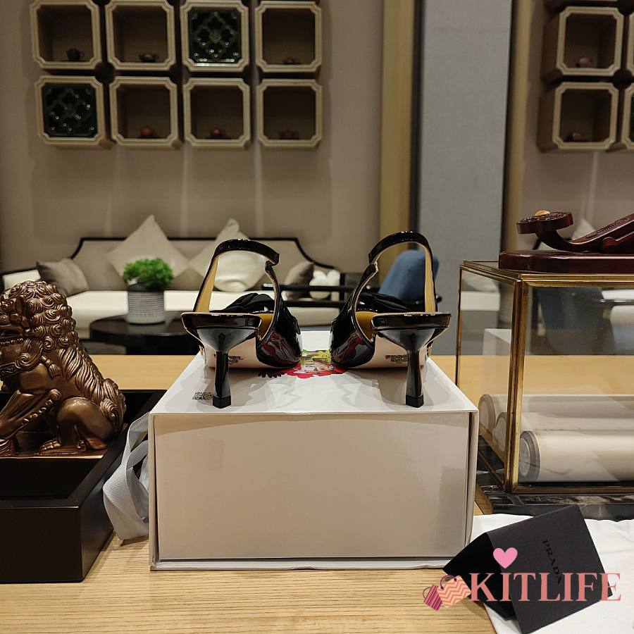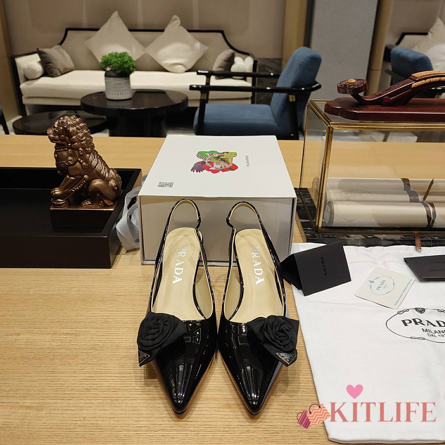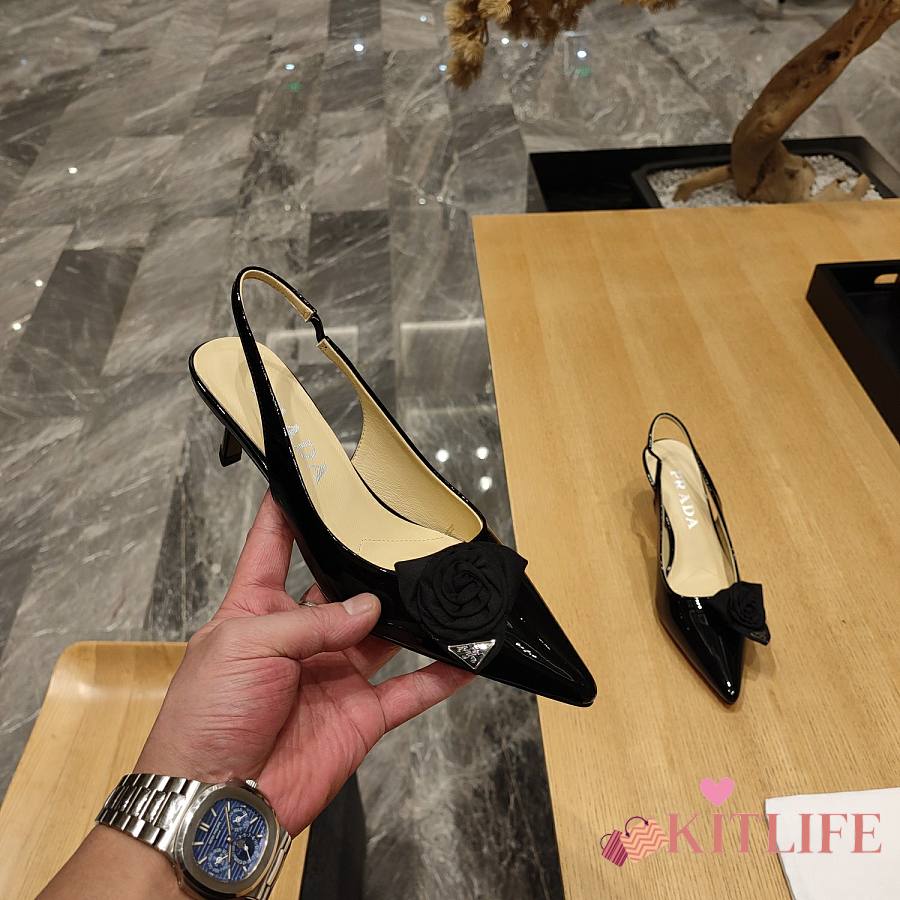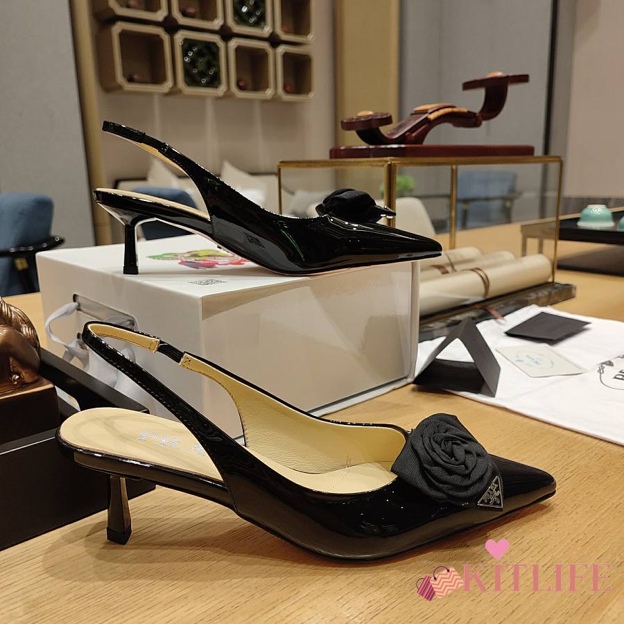 kitlife Prada Black 65mm Faux-flower Leather Pumps