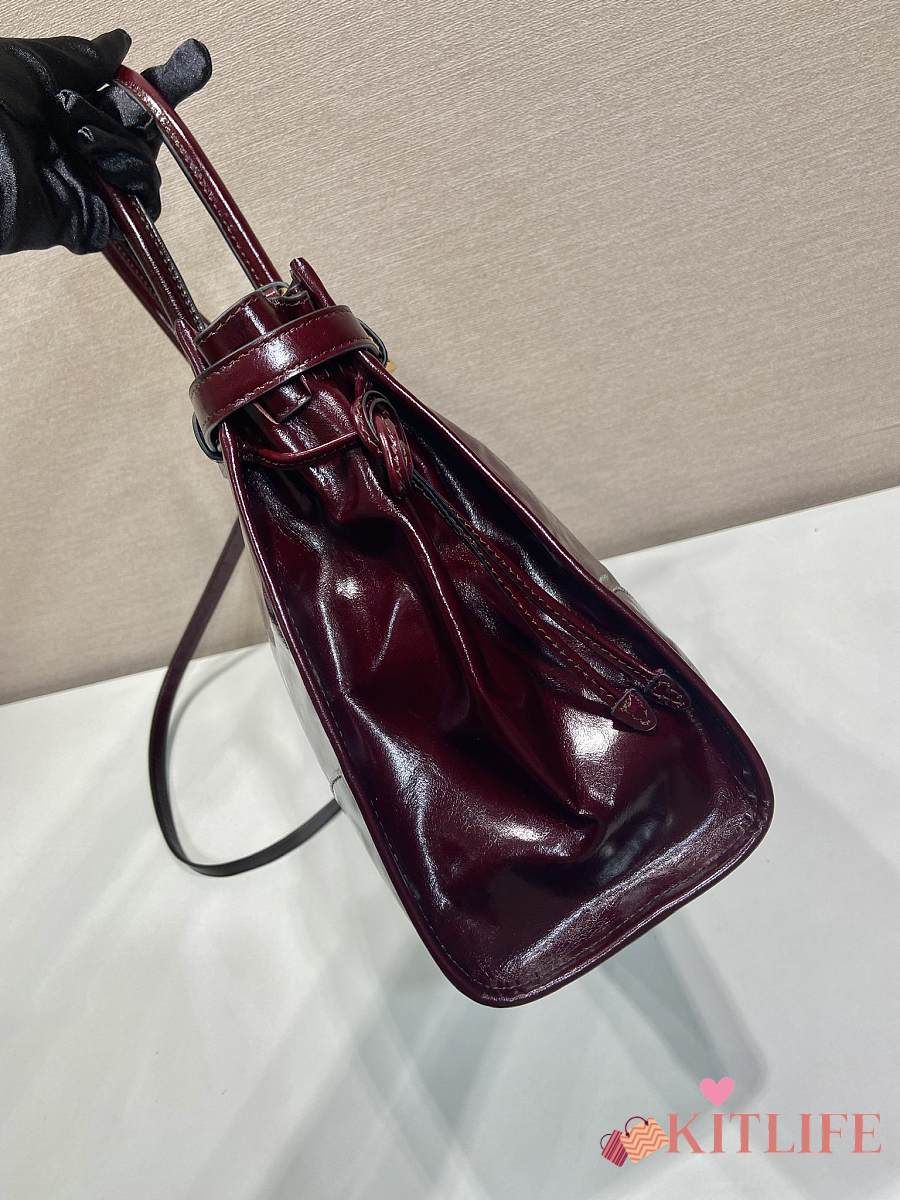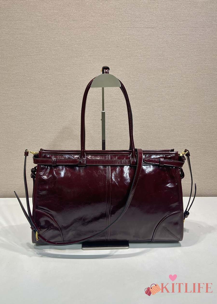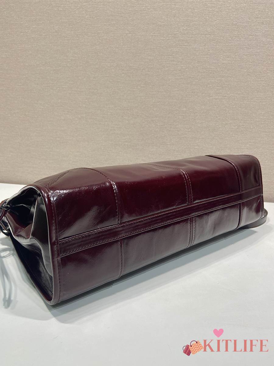 Kitlife Prada Bonnie Large Burgundy Leather Handbag 1BA433 38x30x12cm