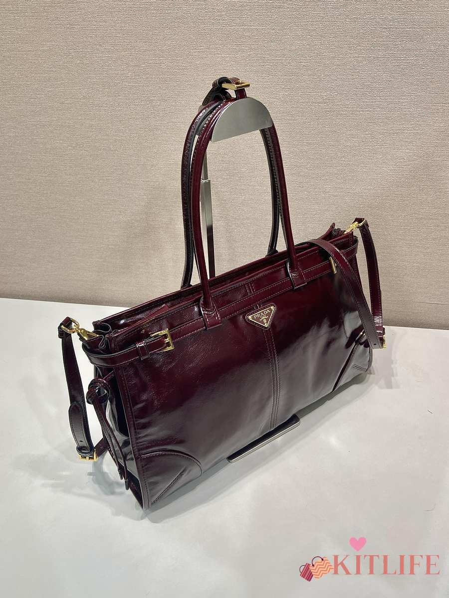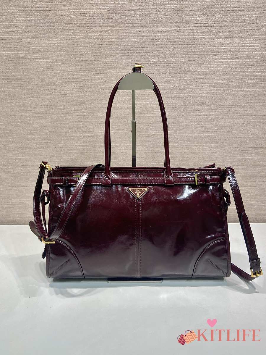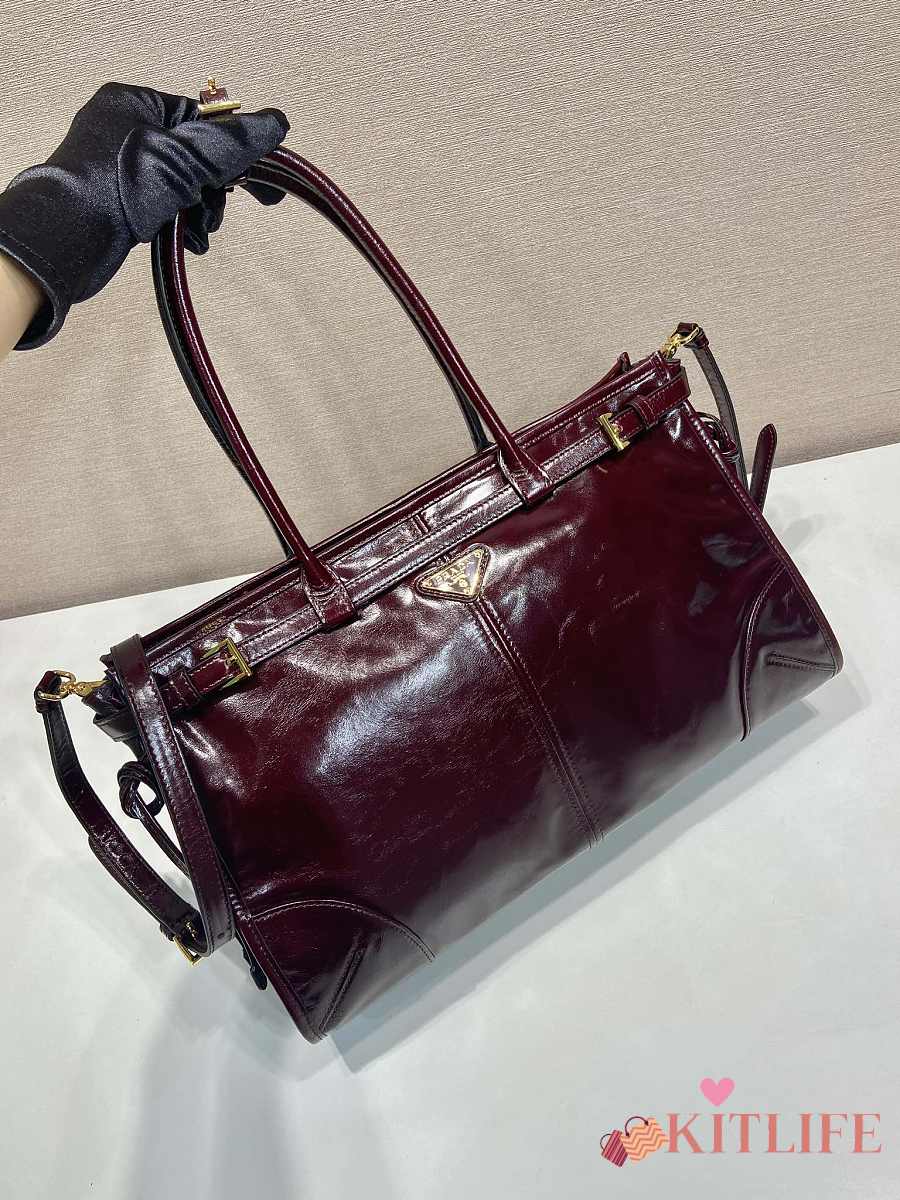 Kitlife Prada Bonnie Large Burgundy Leather Handbag 1BA433 38x30x12cm