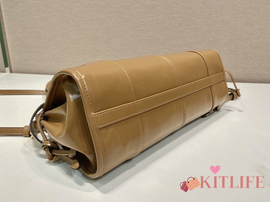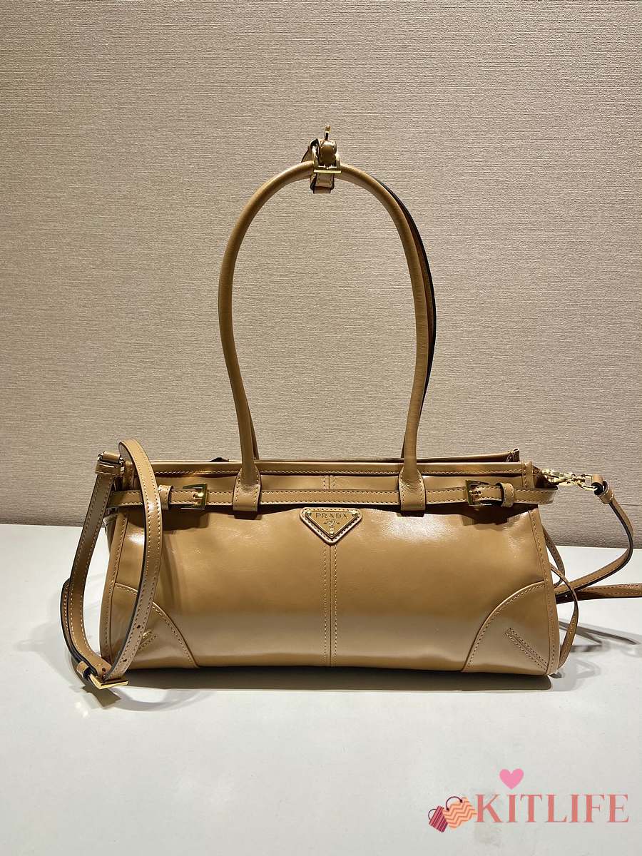 Kitlife Prada Bonnie Medium Beige Leather Handbag 1BA426 32x15.5x12cm