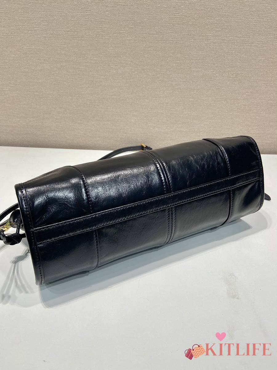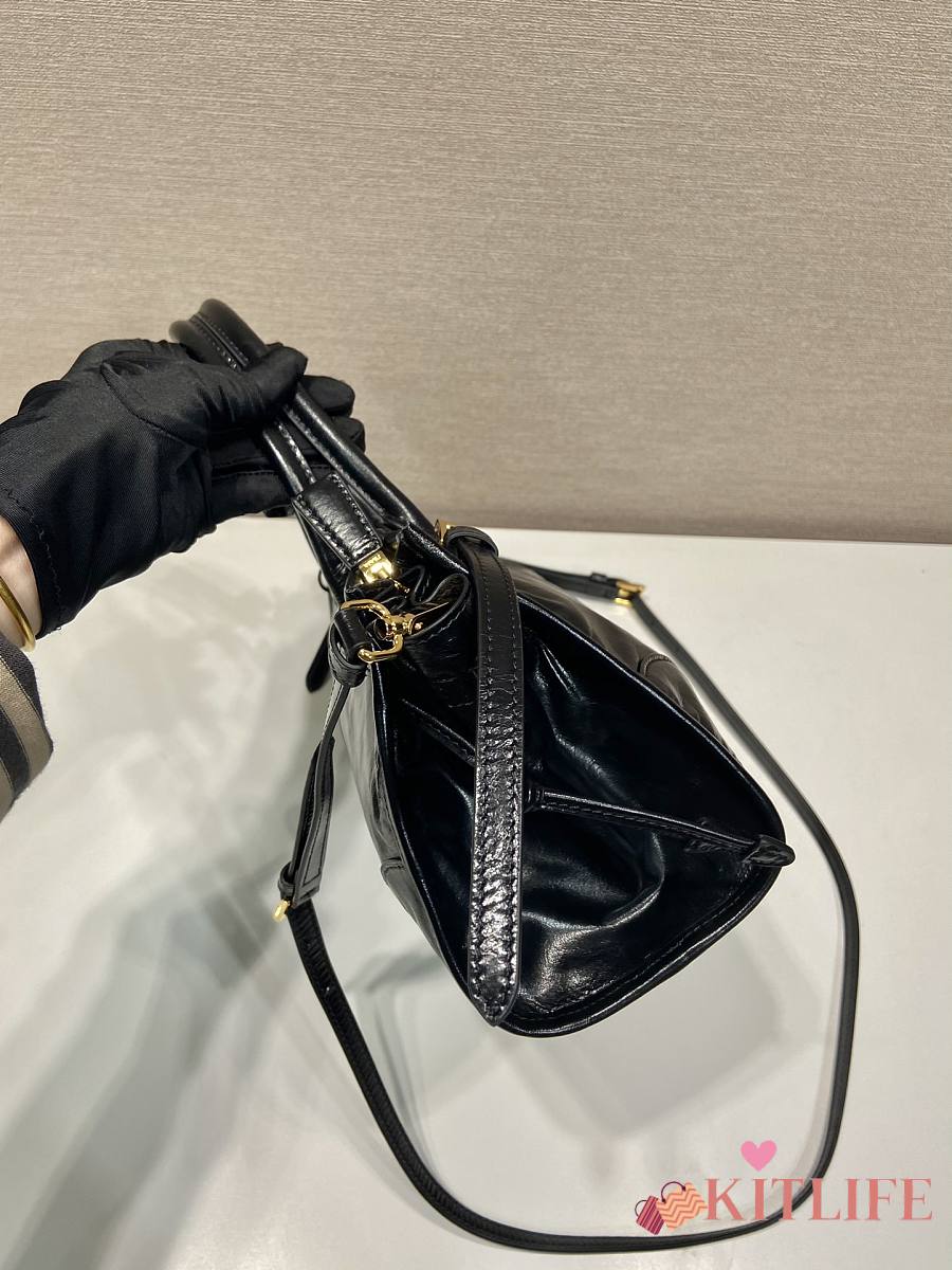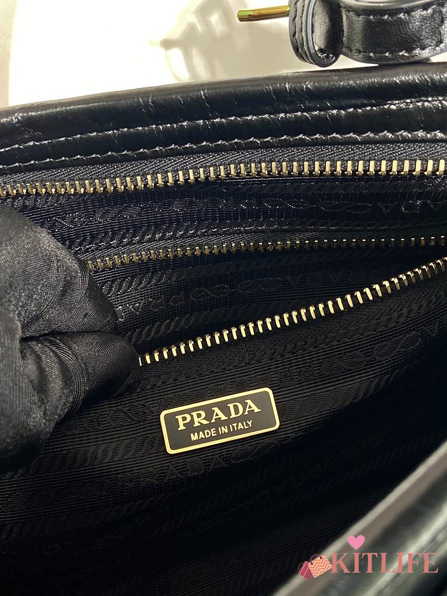 Kitlife Prada Bonnie Small Black Leather Shoulder Bag 1BA215 26x14x12cm