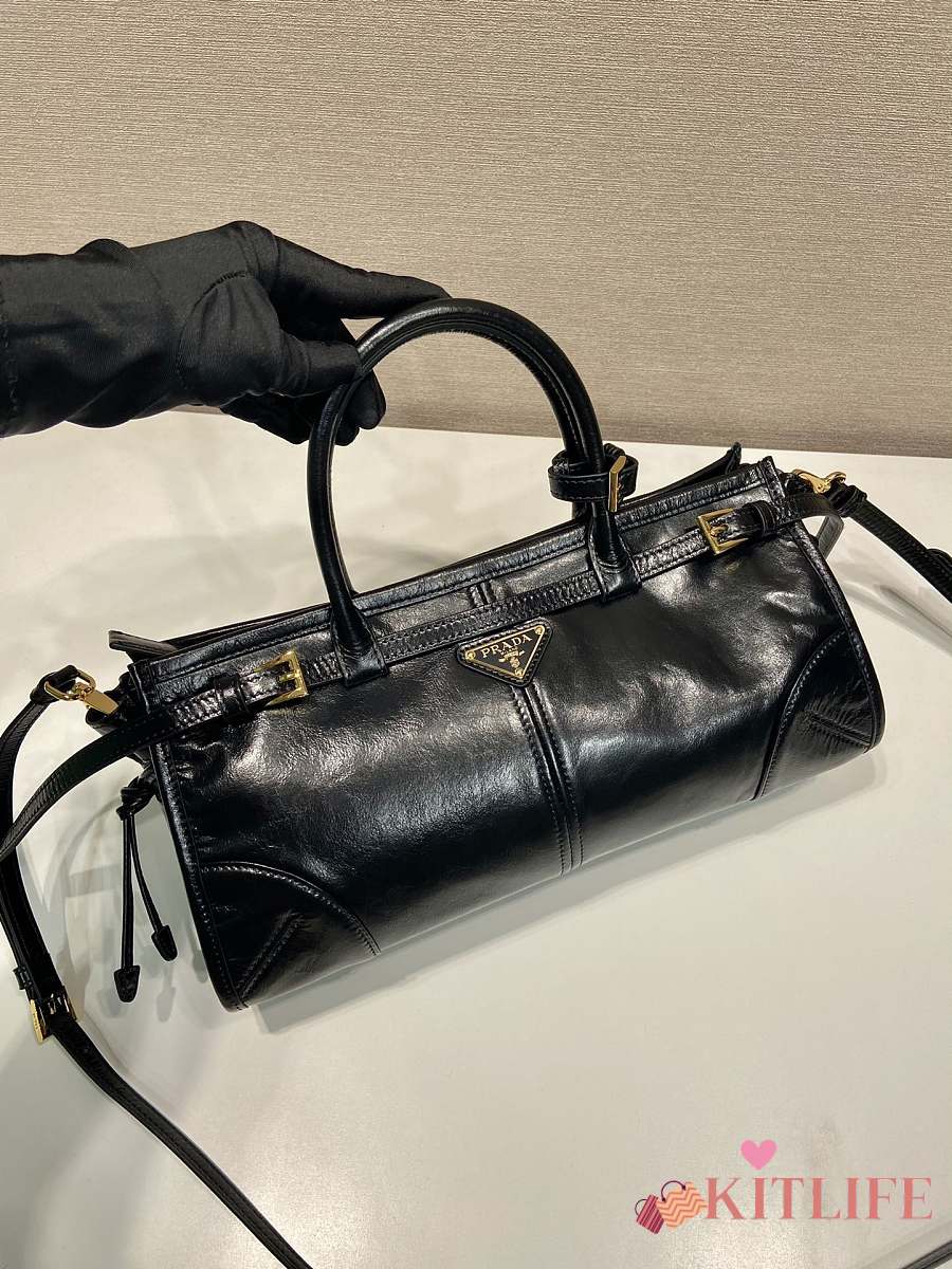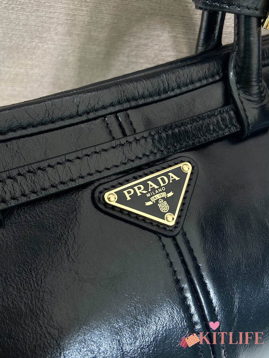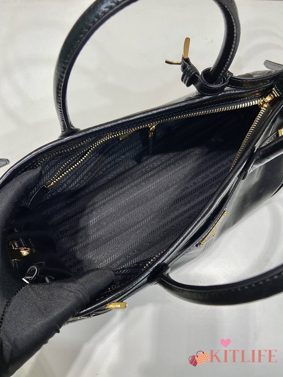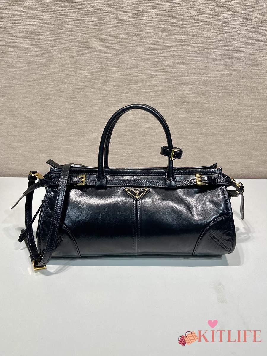 Kitlife Prada Bonnie Small Black Leather Shoulder Bag 1BA215 26x14x12cm