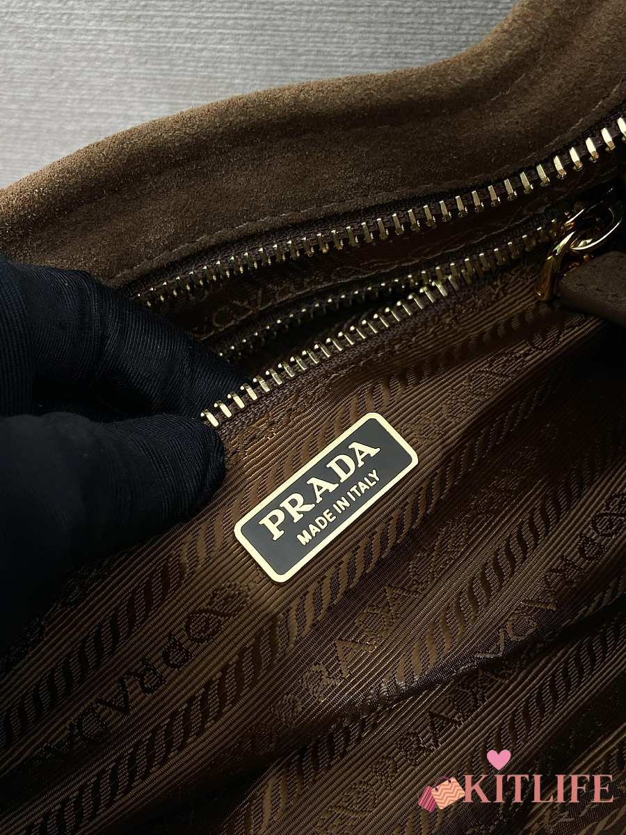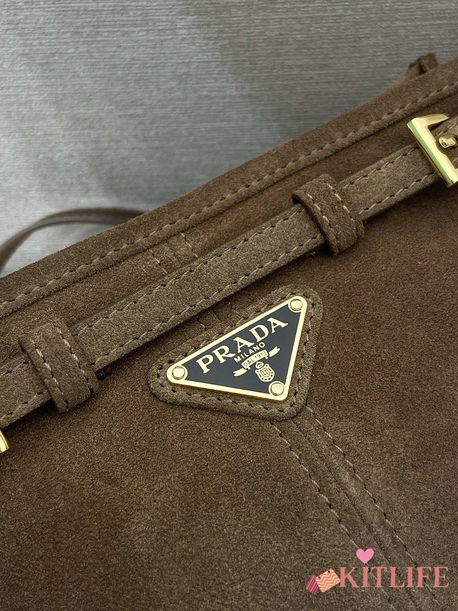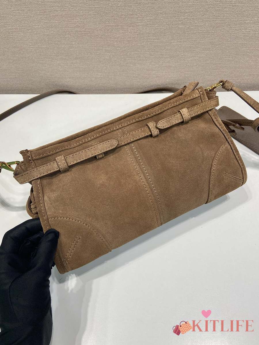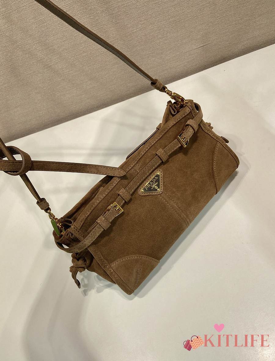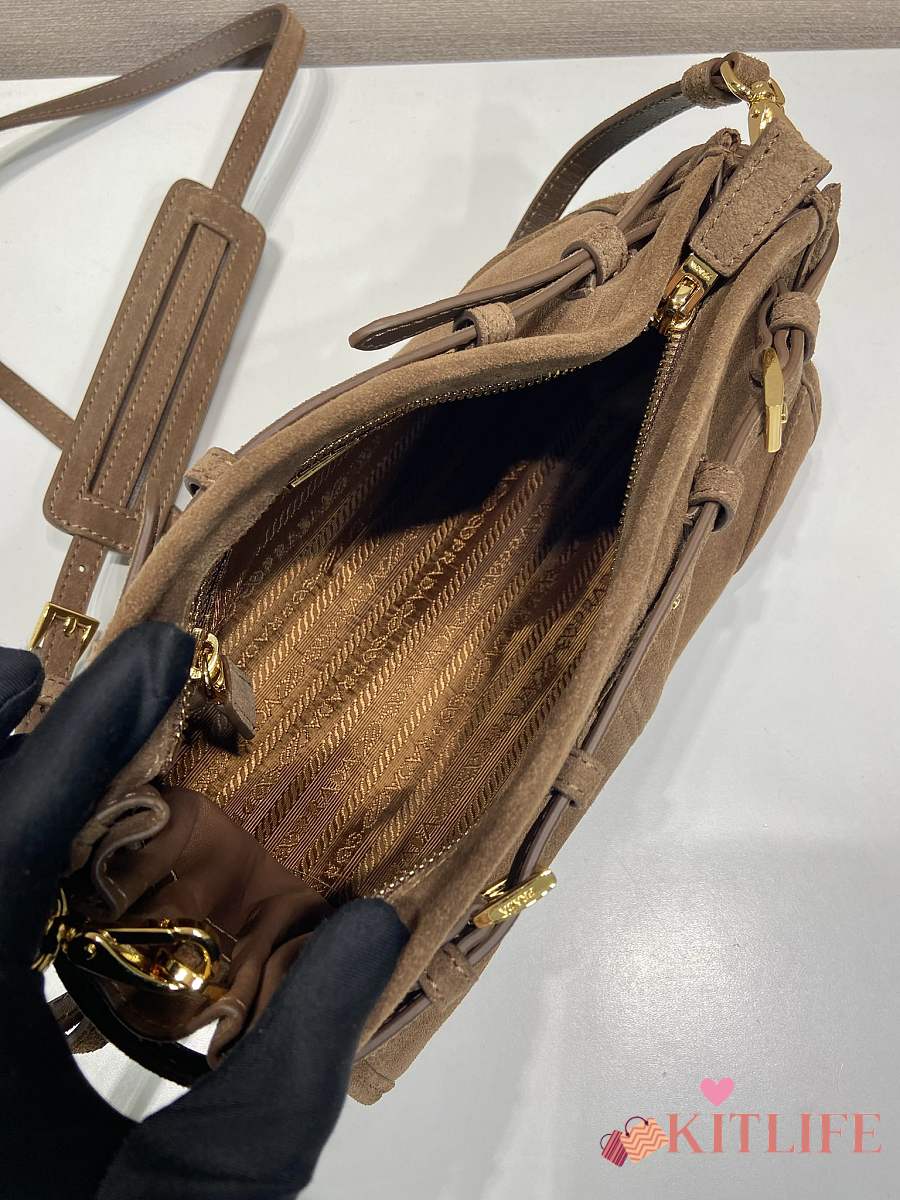 Kitlife Prada Bonnie Small Caramel Suede Bag 1BA215 26x14x12cm