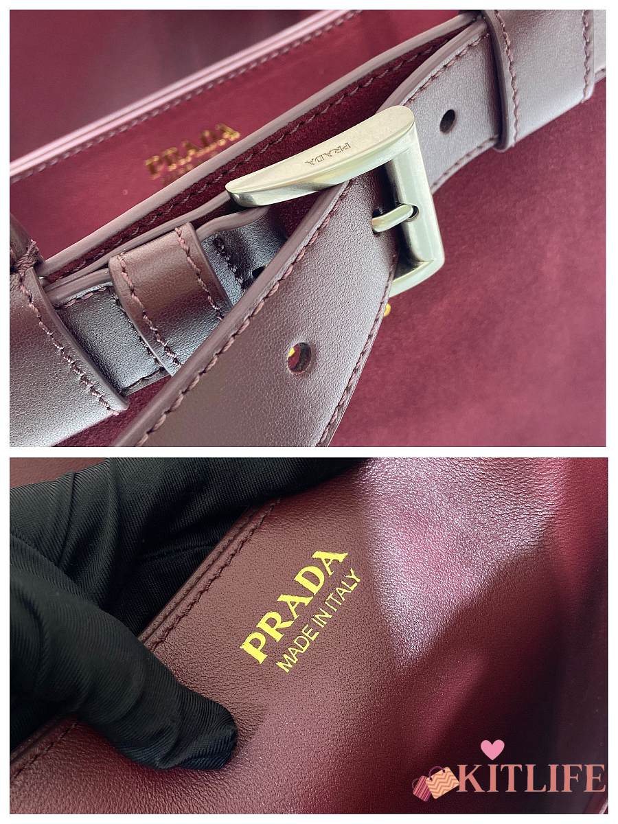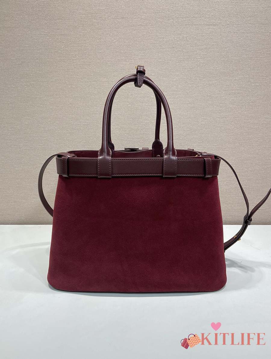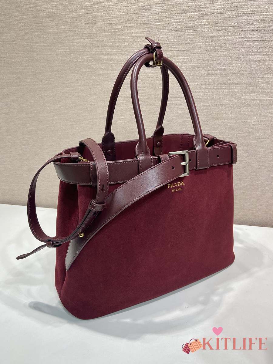 Kitlife Prada Buckle Large Burgundy Suede Handbag With Belt 1BA416 37.5x27.5x14cm