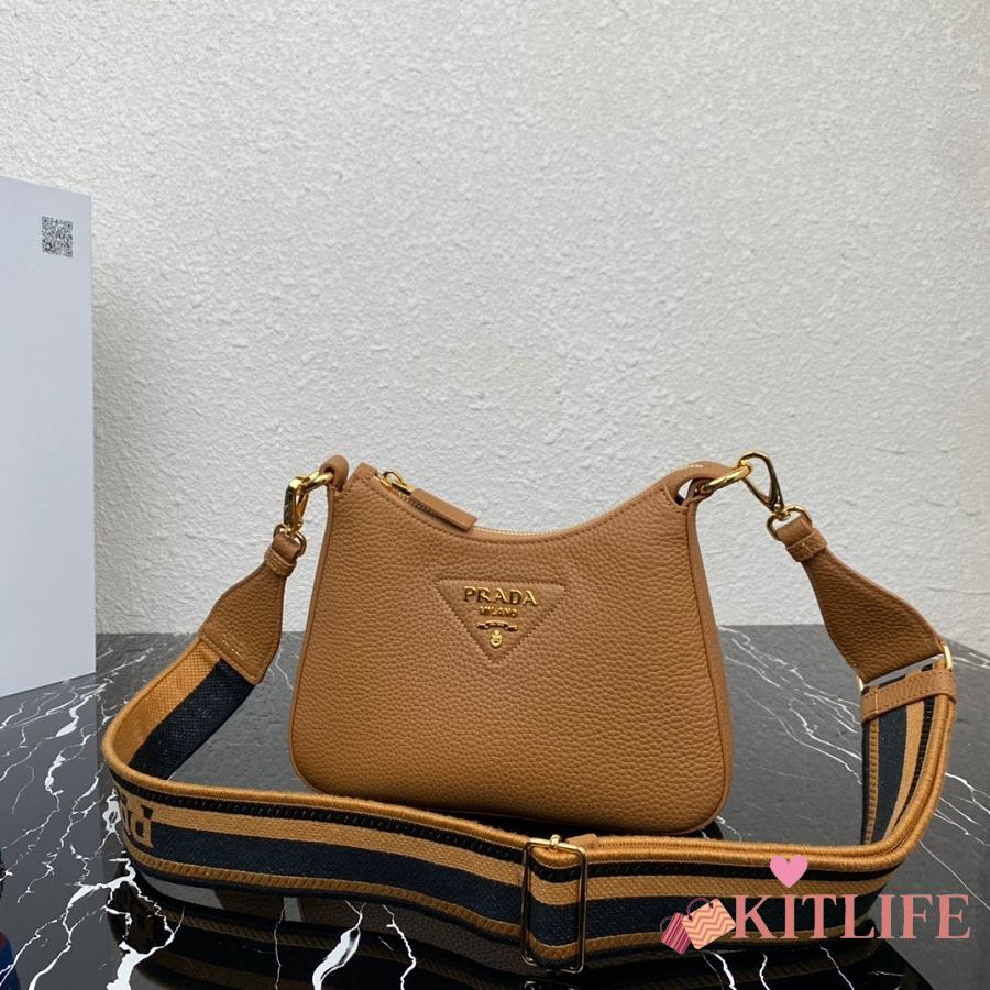 Kitlife Prada Crossbody Bag in Camel Leather 1BH193 24x18x6cm