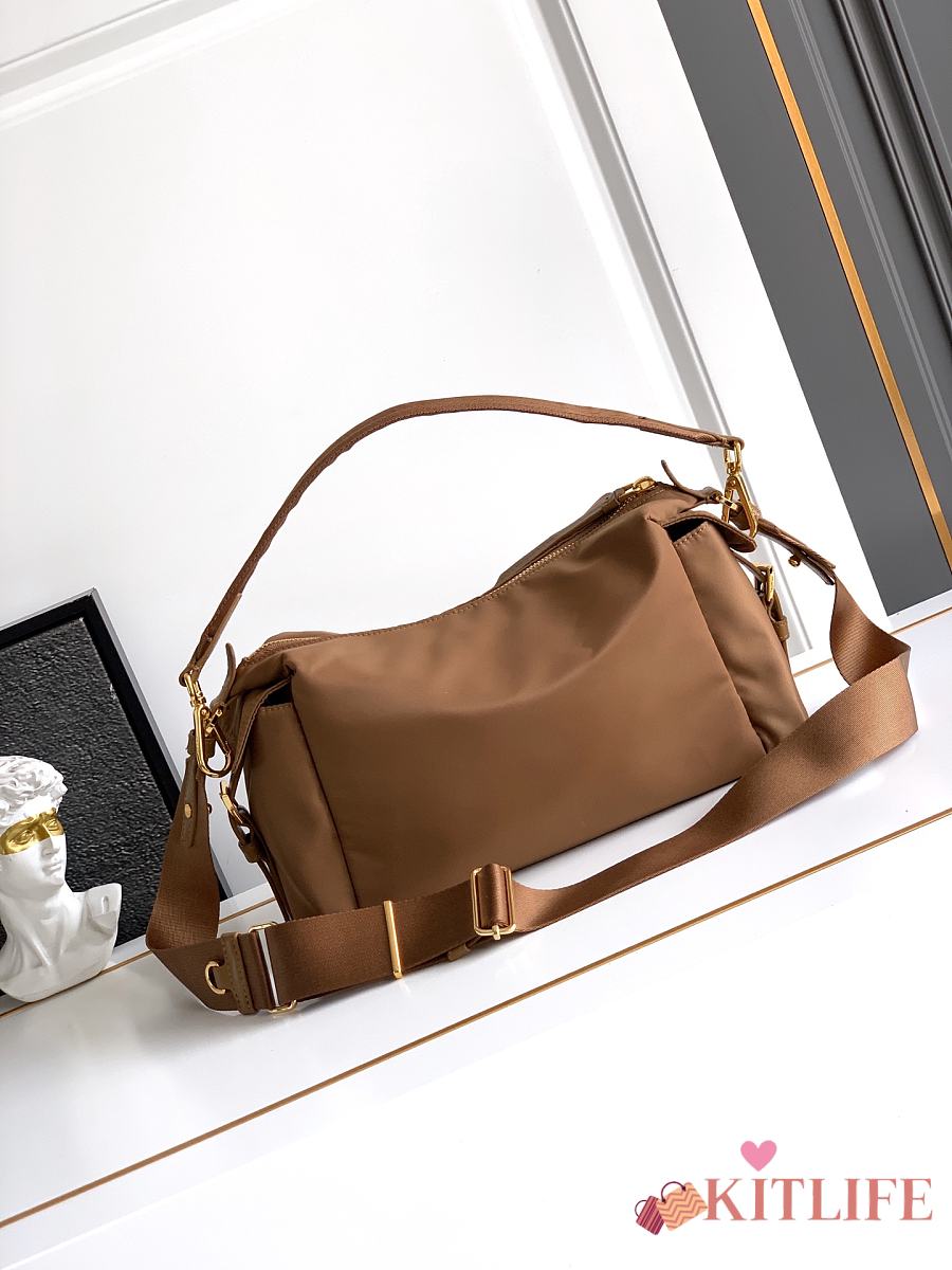 Kitlife Prada Explore large Re-Nylon and Leather Bag Brown 1BC264 32x22x11.5cm